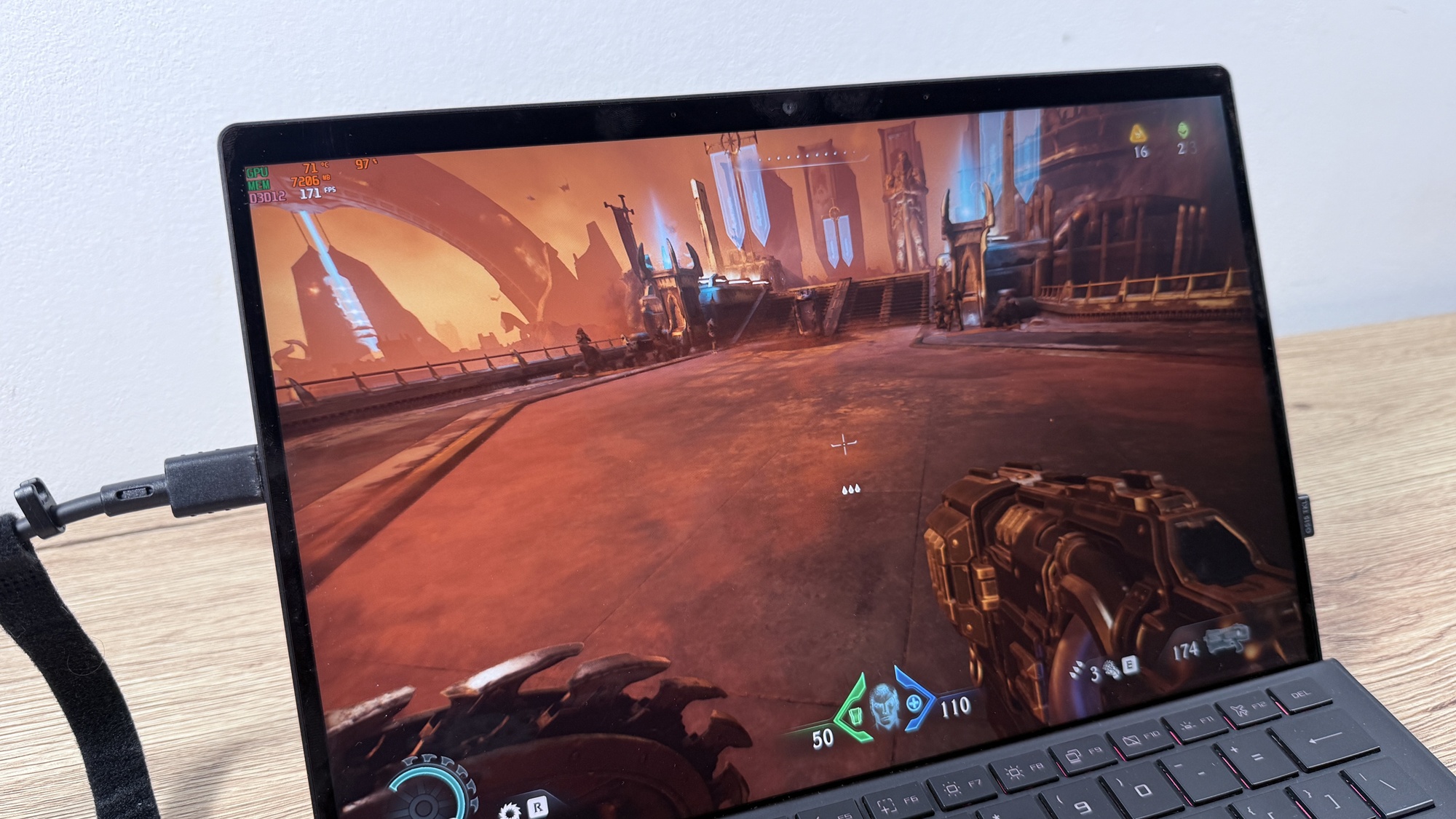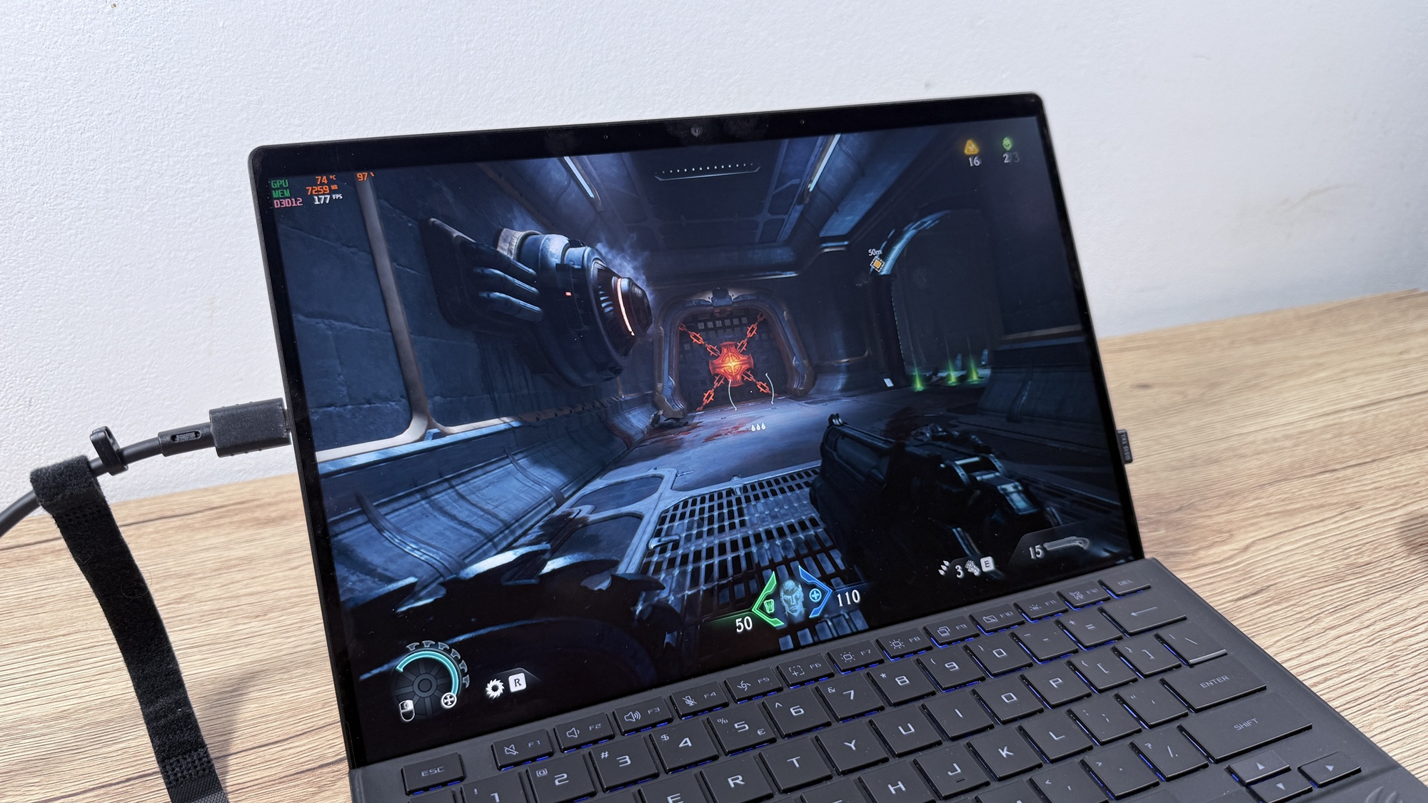Asta la rezoluție nativă (2560 x 1600 pixeli). Dacă alegem să optimizăm manual titlurile le putem juca la rezoluție Full HD, poate pe mid-high în 100+ FPS. Doom Eternal poate ajunge la peste 200-300 FPS-uri, dar nu e tocmai titlul pe care vrei să îl joci în așa fel, întrucât nu e un joc multiplayer sau competitiv. Jucătorii de CS Go / Fortnite / Overwatch 2, vor găsi cu siguranță „echilibrul” pentru a se bucura de o experiență smooth chiar și on-the-go.