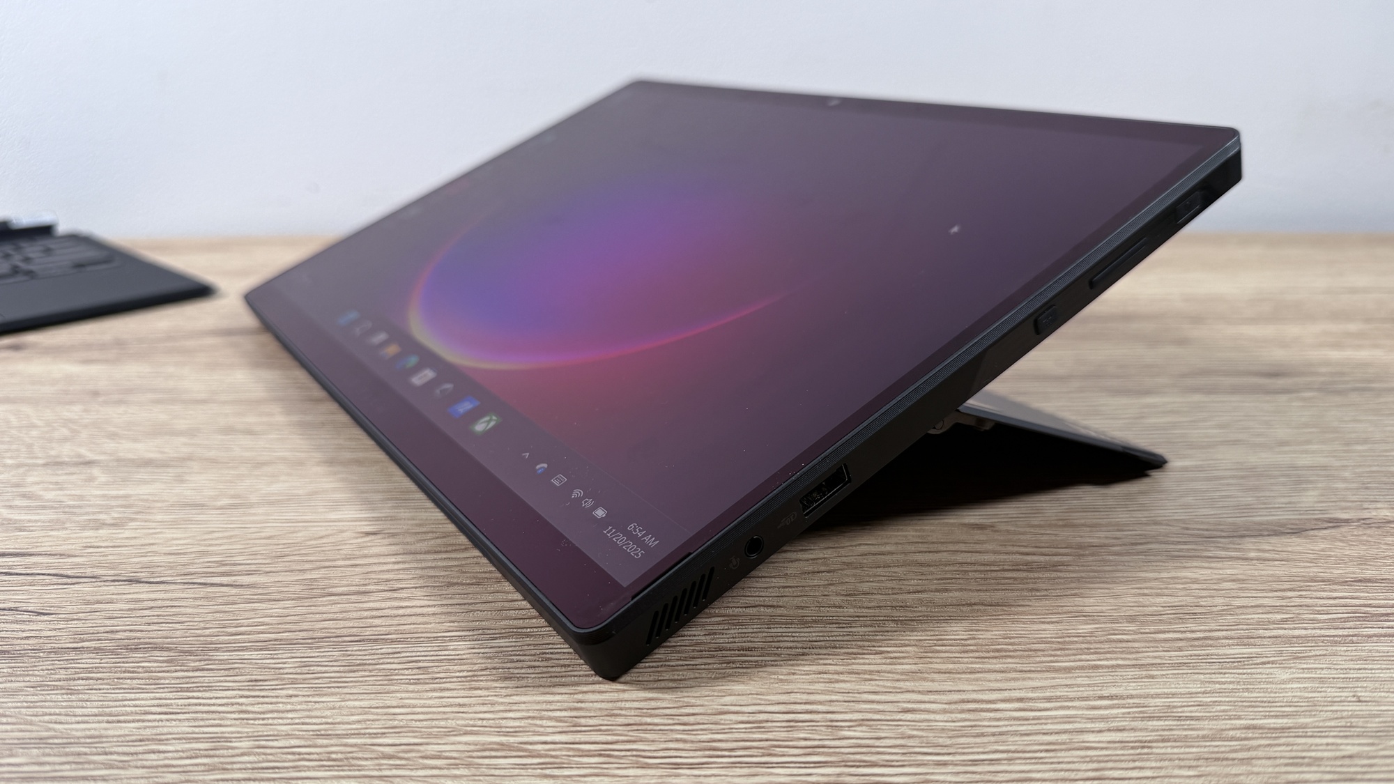 În plus, stand-ul face potrivit acest dispozitiv pentru vizionat orice tip de conținut. Dacă consumi TikTok / Reels sau YouTube Shorts, poți chiar lua „tableta” în mână și să o folosești vertical, dând swipe după swipe. În plus, îmi place mult faptul că îți permite să treci de la „mini PC de sufragerie” la tabletă multimedia sau chiar laptop de productivitate sau „consolă portabilă”, totul în câteva secunde.