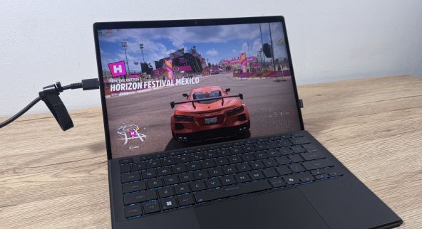Dacă te joci, trebuie să te gândești că ai în față un laptop de gaming comprimat într-o formă compactă și neașteptată. Dacă îl folosești în modul „Turbo”, atunci când performanța crește, parcă nu îți vine să crezi că rulezi asemenea jocuri folosind grafica integrată.