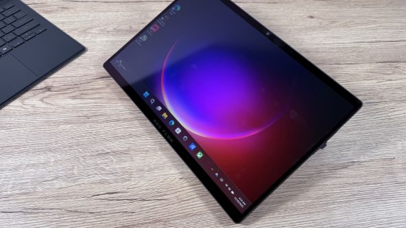În momentul unboxing-ului, pe când nu știam clar ce specificații are ROG Flow Z13, aș fi zis că panoul e un AMOLED veritabil. Totuși, vorbim despre un ecran ROG Nebula Display (cu tehnologie IPS), de 13.4 inch în diagonală, rezoluție QHD (2560 x 1600 pixeli). Ecranul e tactil, oferă refresh rate de 180Hz și un timp de răspuns de 3ms.