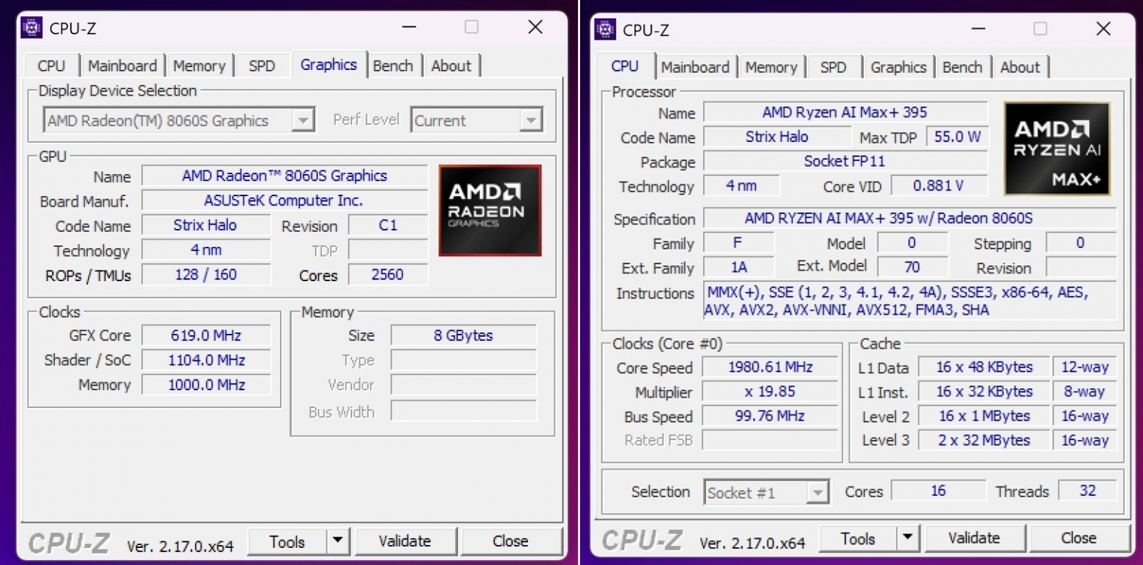 - Procesor: AMD Ryzen AI MAX 395, 12 nuclee, 24 fire de execuție, frecvență de bază 3.2GHz (până la 5.0GHz), 76MB cache, NPU AMD XDNA până la 50 TOPS