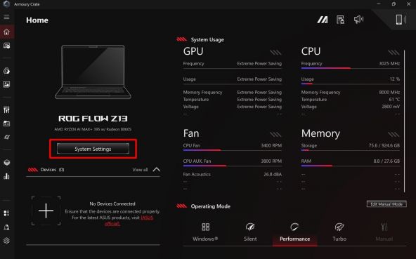 AMD a nimerit formula perfectă: grafică integrată care se comportă ca un GPU entry-midrange dedicat. Cum face asta? Păi, pare că acest device poate aloca o parte din memoria RAM pentru a servi ca substituent de memorie video. Inițial nu înțelegeam cum funcționează treaba asta, dar Dave2D a explicat foarte bine aici. Memoria video se alocă automat, dar putem seta și manual din Armoury Crate, software-ul special al celor de la ASUS.