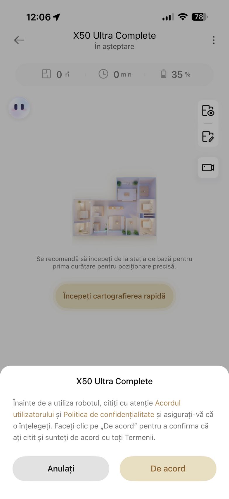 Aspiratorul se înțelege bine cu comenzile vocale, doar în limba engleză momentan. Se poate conecta la Alexa, dar merge și cu Siri sau Google Home, dacă ești în ecosistemul Apple sau Google. Mi-a fost de ajutor și widget-ul pus pe ecranul telefonului și astfel nu am mai stat de fiecare dată să intru în aplicație. Un alt plus este acela că X50 Ultra Complete are suport Matter, deci se integrează ușor cu alte dispozitive din casă, indiferent de brand.