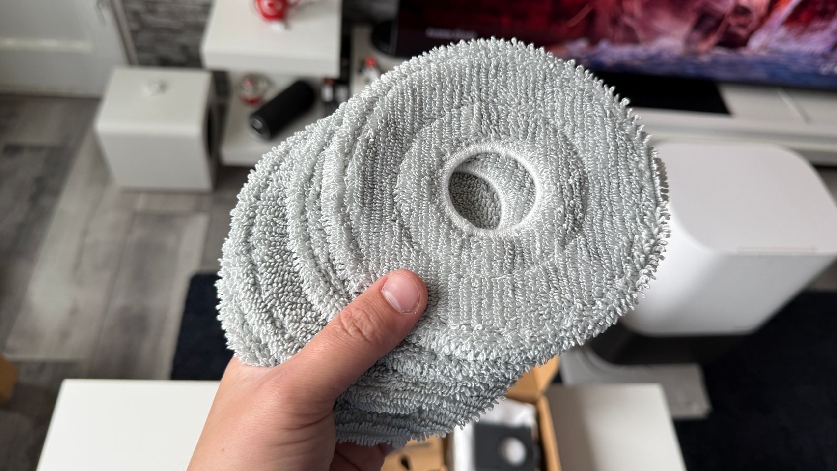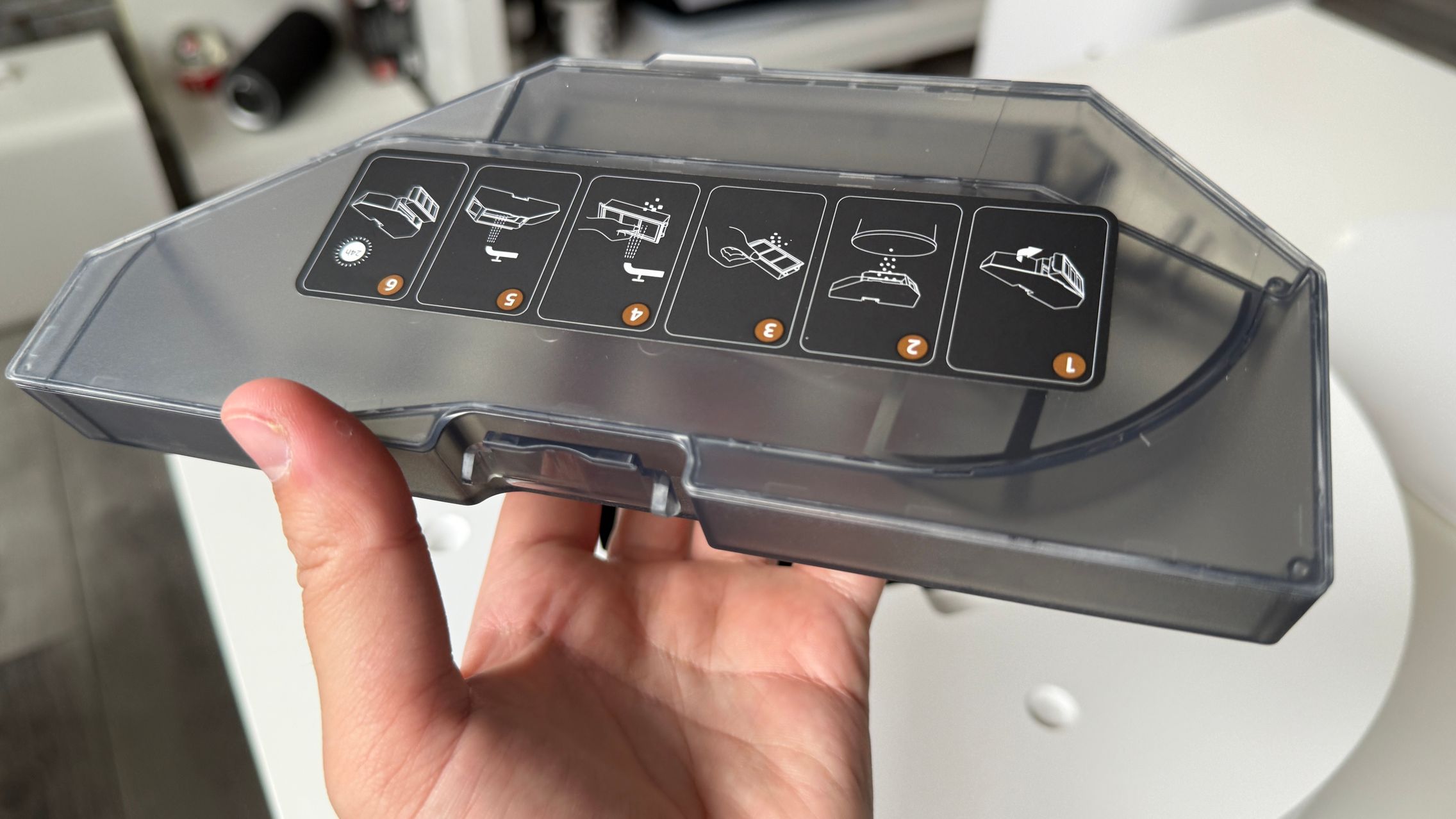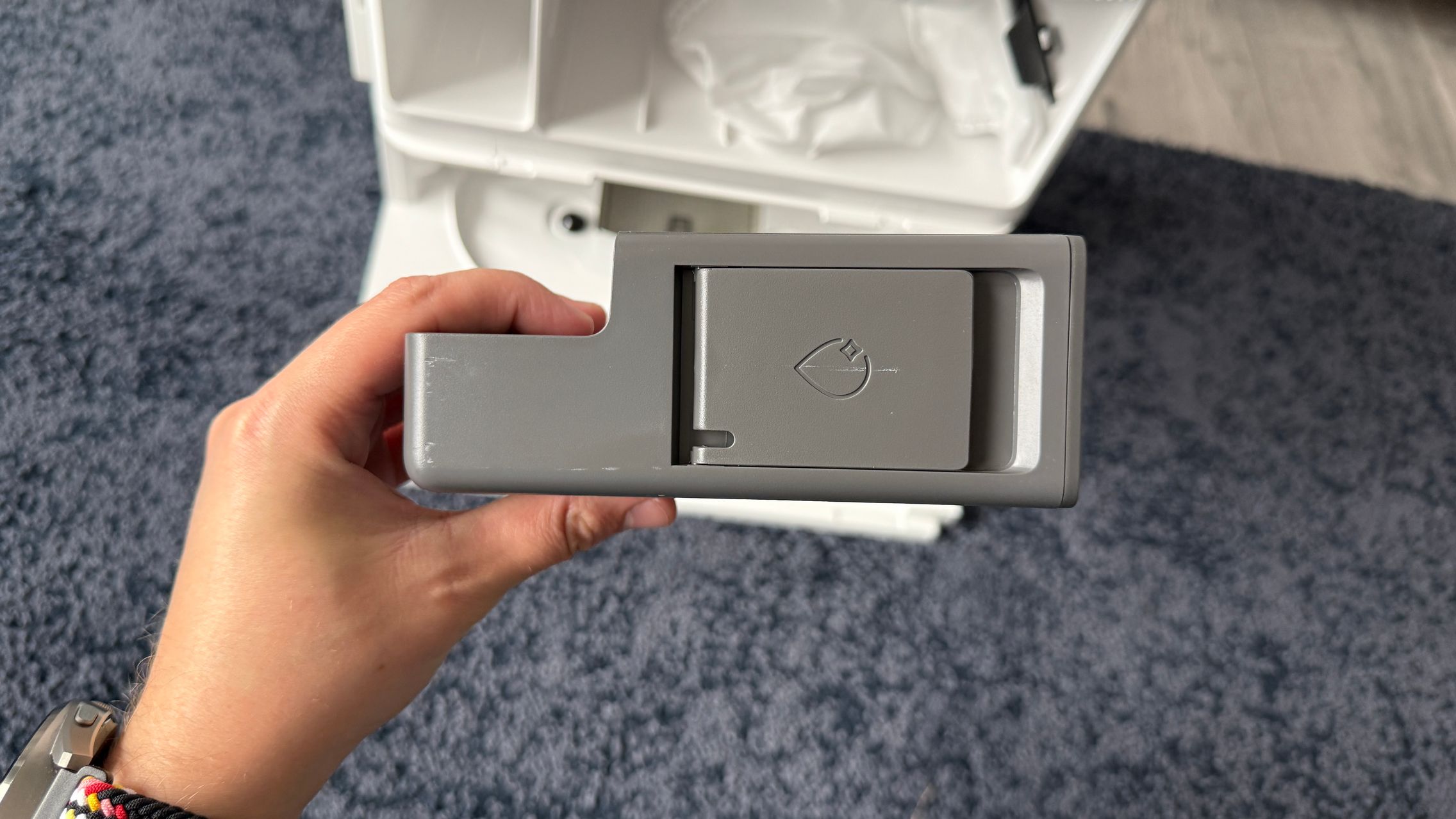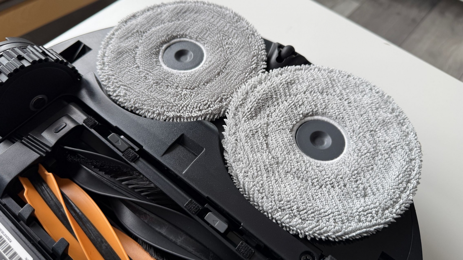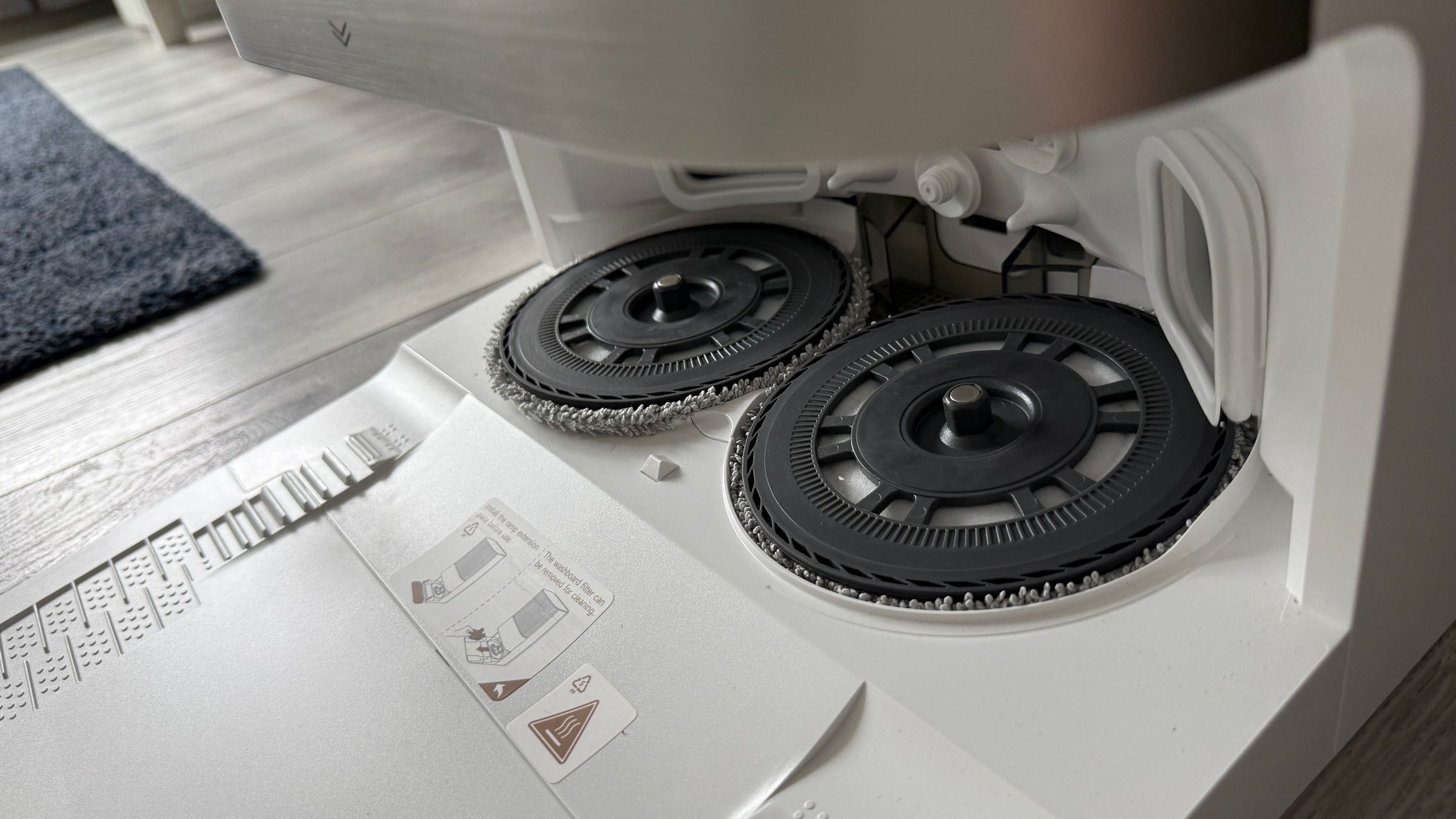 Ce mi-a mai plăcut e cum spală mopurile singur. Folosește apă fierbinte la 80°C, le usucă cu aer cald și mai are și un sistem care detectează cât de murdare sunt. Nu a fost nevoie să pun eu mâna pe mop, să detașez pad-urile mop și nici să stau să le spăl manual. El face tot, inclusiv adaugă detergent automat din rezervor când e nevoie.
