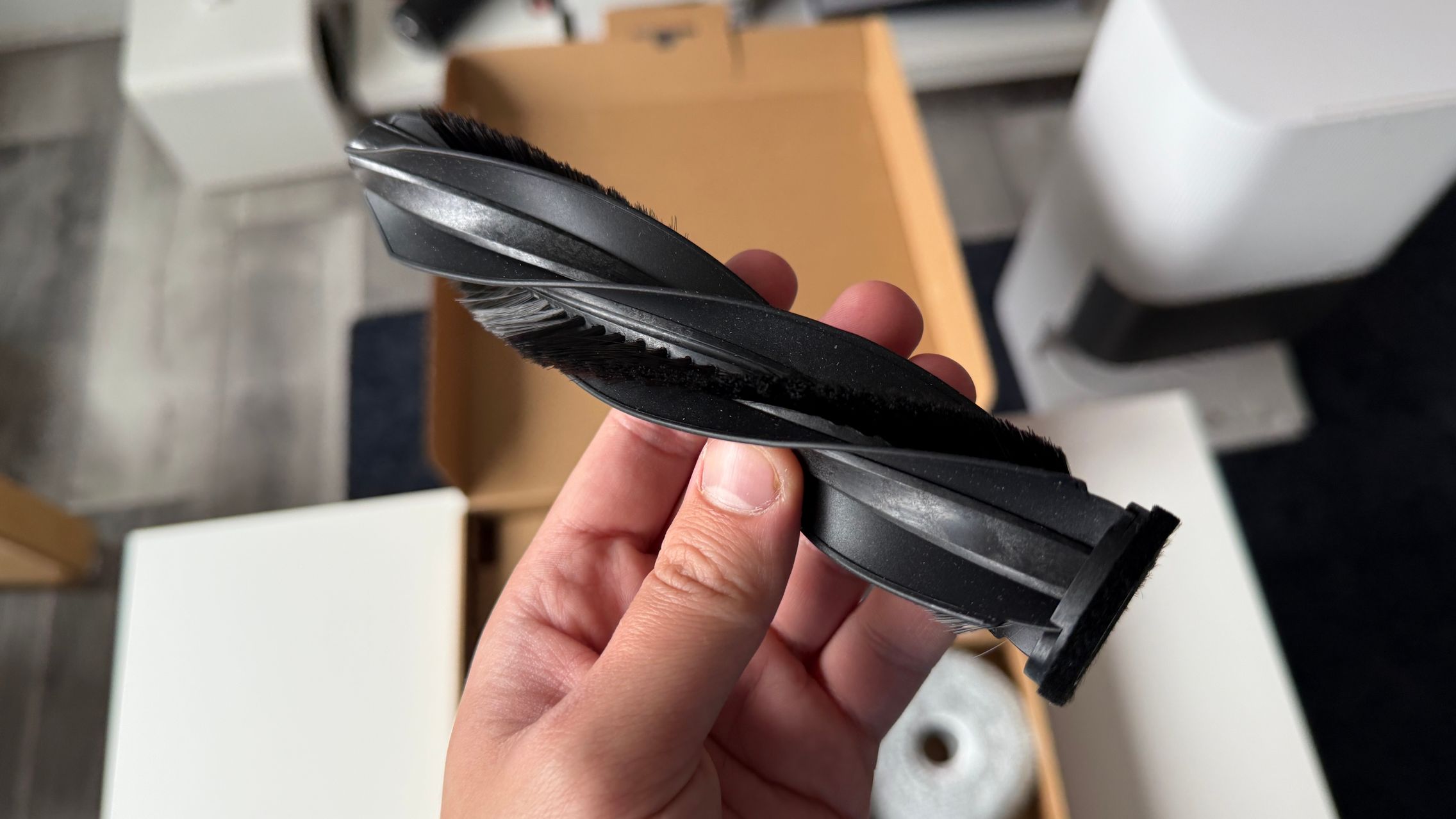 Pentru aspirare pune la treabă 20.000 Pa și am văzut cât de capabil este mai ales pe covorul meu din living care este un magnet de firimituri și praf. Dacă ai animale de companie o să te încânte faptul că are o perie principală cu design special anti-încurcare (păr până la 30 cm lungime). Nici nu trebuie curățată manual, pentru că părul este tras spre gura de aspirare cu ușurință. Am descoperit și o perie laterală care se extinde pentru a ajunge în colțuri. La fel cum face și mopul la spălare.