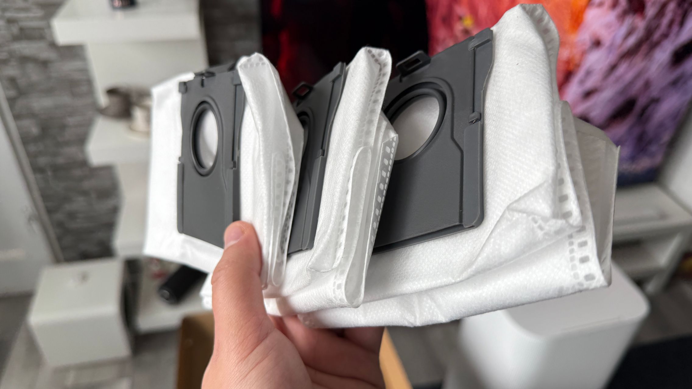 Aspiratorul detectează și petele, „vede” dacă pe mopuri e murdărie lichidă, solidă sau mix, și ajustează spălarea. Legat de interacțiune, mai am multe zeci de zile la dispoziție până când voi fi nevoit să golesc sacul de praf (golire la 100 de zile).