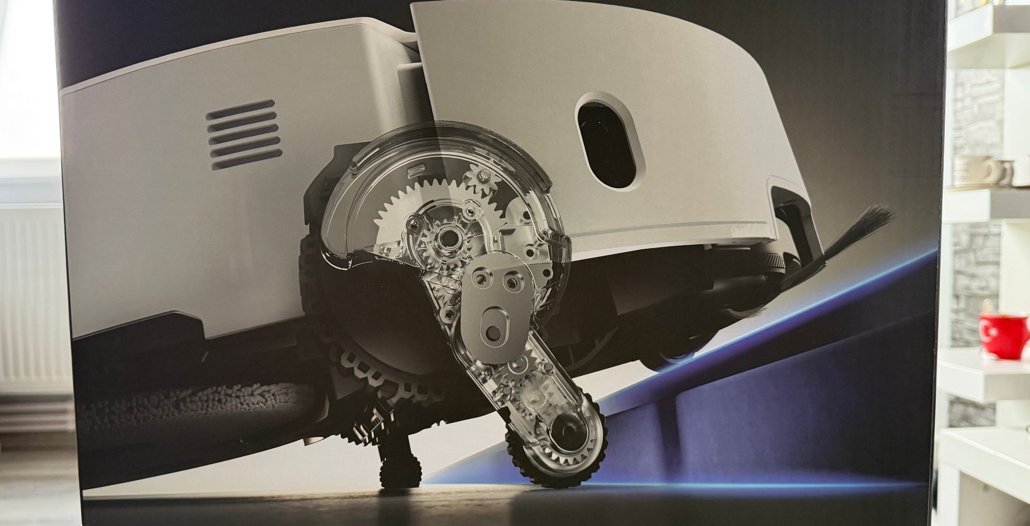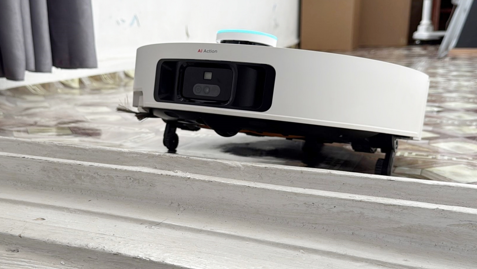 A trecut peste gresie, covoare și parchet ca un Jeep 4x4 și nu a sughițat nici atunci când l-am pus să urce pe balcon, peste un prag abrupt, un Vârf Everest din apartamentul meu. E un loc în care nici un alt aspirator robot nu a mai pășit, iar de acum înainte cu un astfel de dispozitiv pot să am și balconul aspirat și spălat la precizie de colțuri, fără să mai fiu eu nevoit să fac asta manual din când în când. La baie nu a trecut testul, dar cine știe, poate generația viitoare va aduce picioare și mai mari.