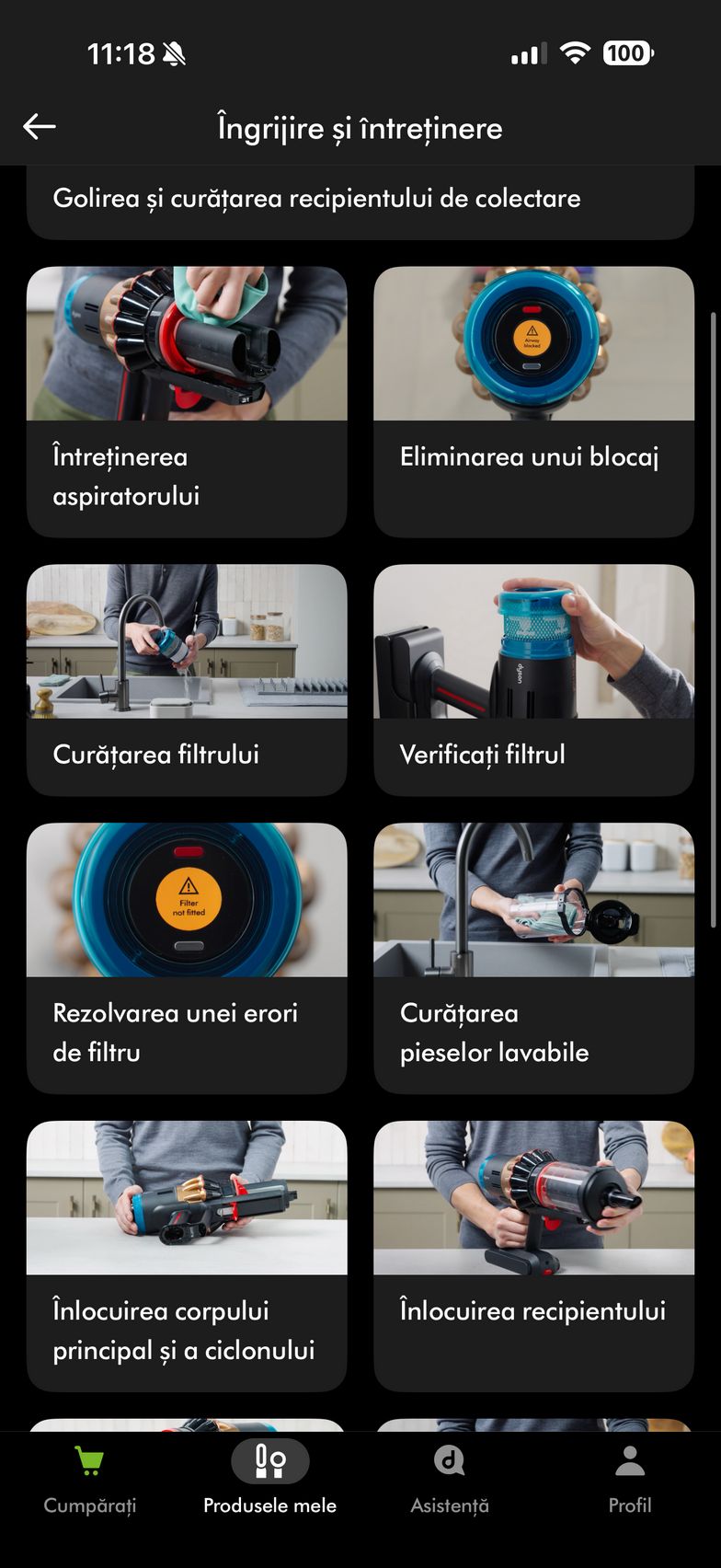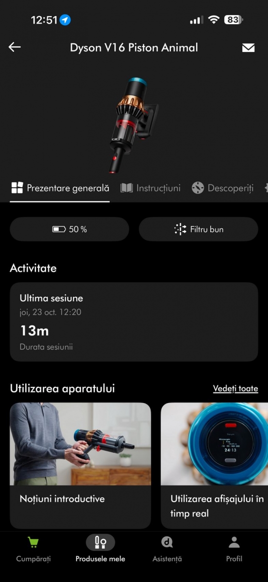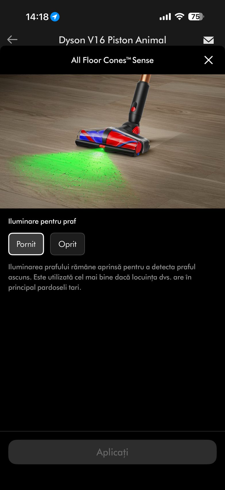 Şi dacă tot am ajuns la zona smart, exista şi aplicaţia MyDyson pentru Android şi iOS, cu care poţi controla nivelul de umezire al rolelor, direct de pe telefon. Vei adapta umezeala, hidratarea lor în funcţie de pete şi murdărie.