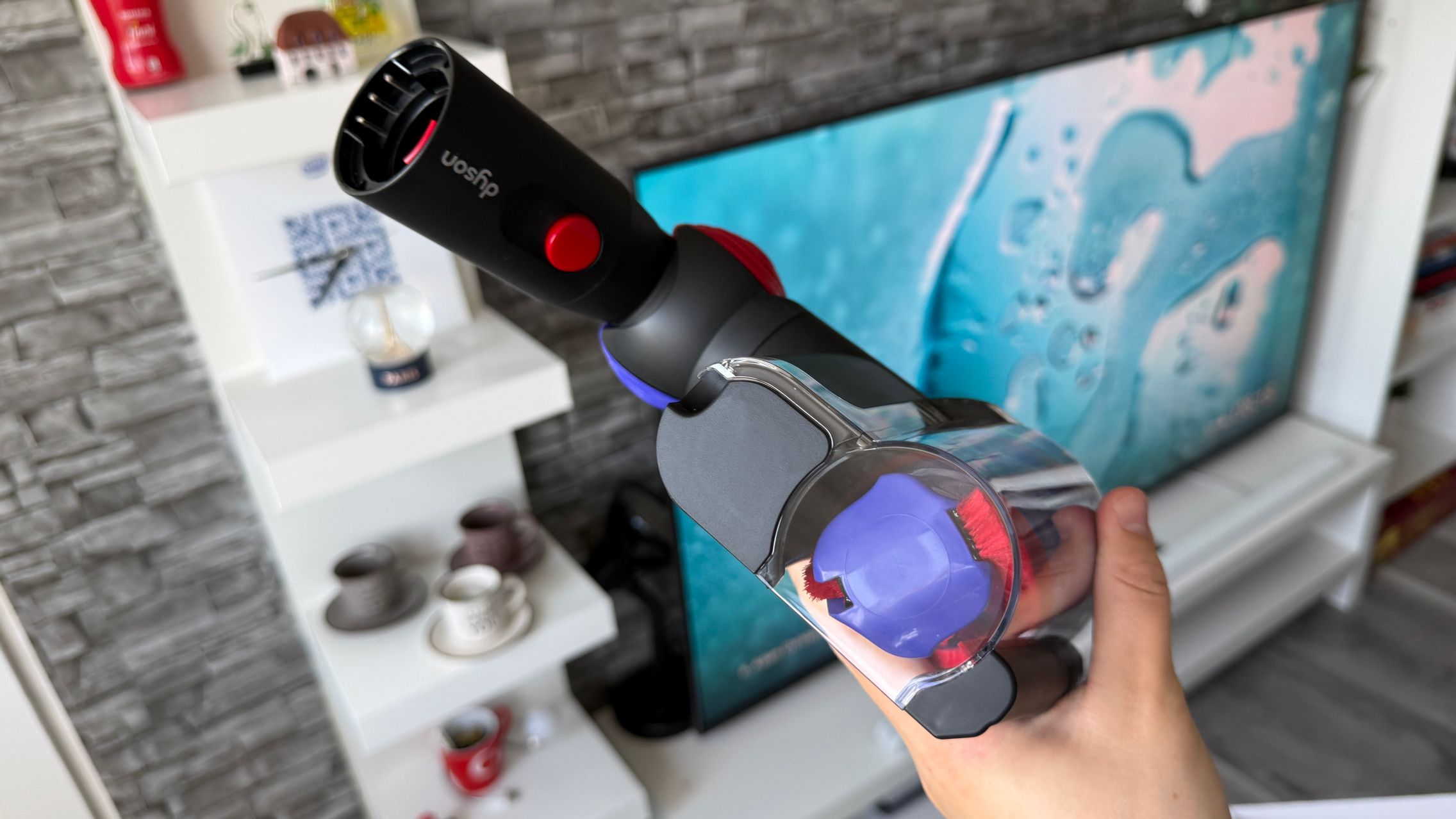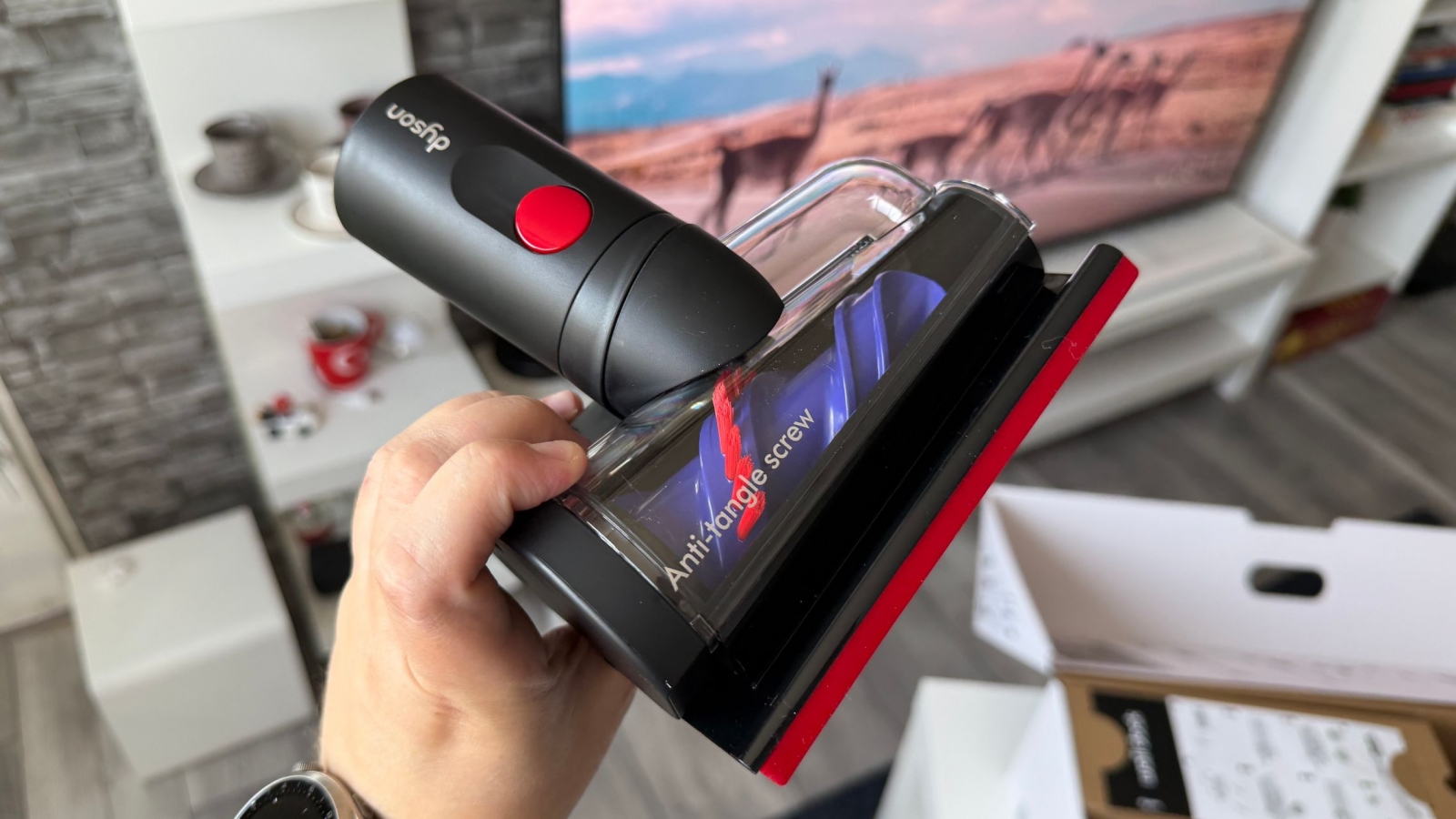 Ai scăpat şi de trăgaci, e uşor de golit şi laserul verde e minunat pentru a depista murdăria ascunsă în zone izolate. Iar legat de treaba cu părul încâlcit, încurcat şi omniprezent: ca și cum ai avea două role care lucrează împreună ca o echipă de coafori pentru podea, descurcă firele de păr înainte ca ele să apuce să se lipească de perie. Aspiratorul este eficient, foarte ușor de utilizat și sunt plăcut impresionat de numărul de accesorii din pachet.