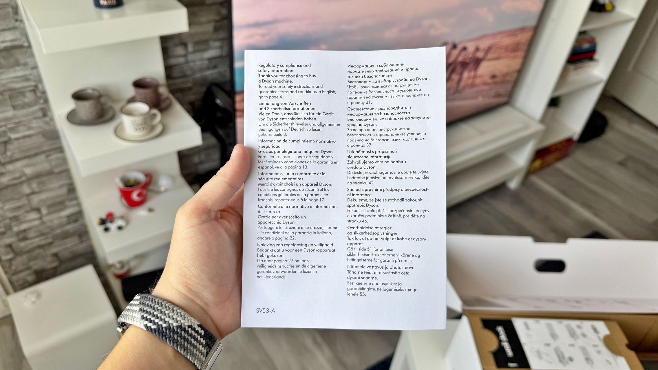Pachetul aspiratorului este format matryoshka, adică cutie în cutie. Vine protejat de o cutie din carton clasic la exterior, cu un mecanism de eliberare tip con în care se fixează totul. Doar am desfăcut scociul din acea zonă și apoi am eliberat cutia principală. Mă așteptam să găsesc un raft aici cu toate cele, doar că mai e o cutie, cea de prezentare, cea fancy pe care admiri aspiratorul cel nou. În cutia de aici găsești alte două cutii - una cu accesoriile standard și aspiratorul, alta cu accesoriul vedetă un Submarine 2.0 Wet Roller, o versiune nouă a capătului de curăţare umedă a pardoselilor dure şi mă refer la parchet laminat, gresie, piatră, marmură, linoleum.
