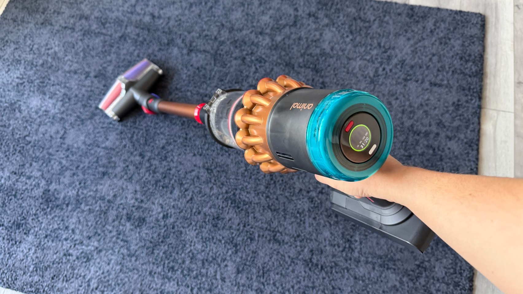 Puterea de aspirare este de 315 Air Watts, susţinută de un motor Hyperdymium de 900W. Şi pentru că e un Dyson, e şi smart: număra şi măsoară dimensiunea particulelor de praf, adaptând inteligent puterea de aspirare în funcţie de nivelul de praf din sufrageria mea mai frecventată, sau balconul mai prăfuit, mai puţin frecventat de mine. Sunt şi 5 straturi de filtre HEPA aici, aspiratorul având şi rol de a elimina alergenii, nu doar de a curăţa. Pe mine m-a şocat şi capacitatea de depozitare a acestui Dyson: va comprima mizeria acumulată în rezervor şi poate depozita până la 30 de zile de deşeuri.