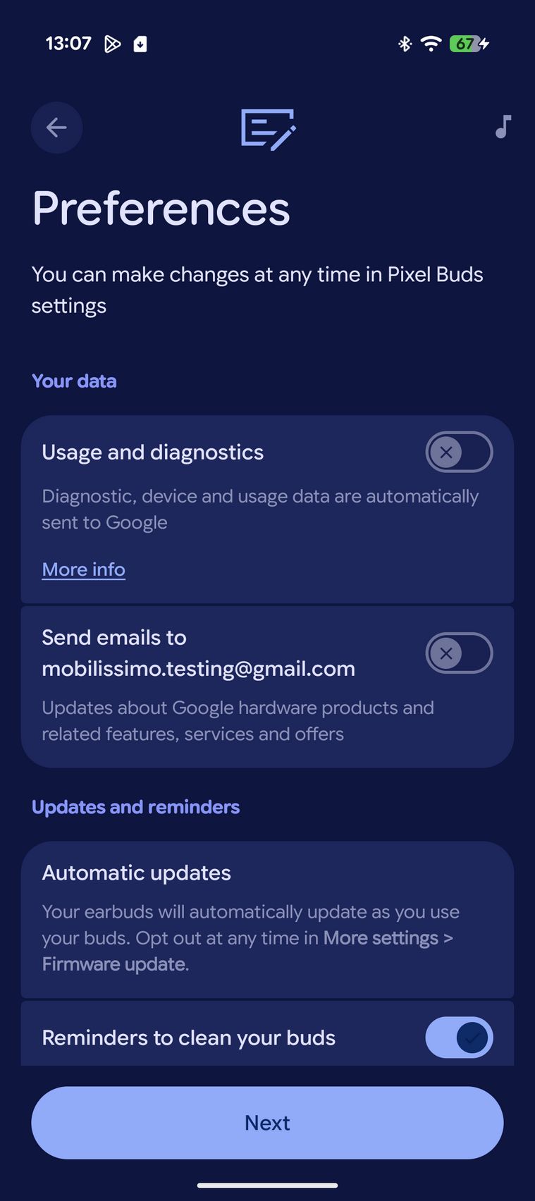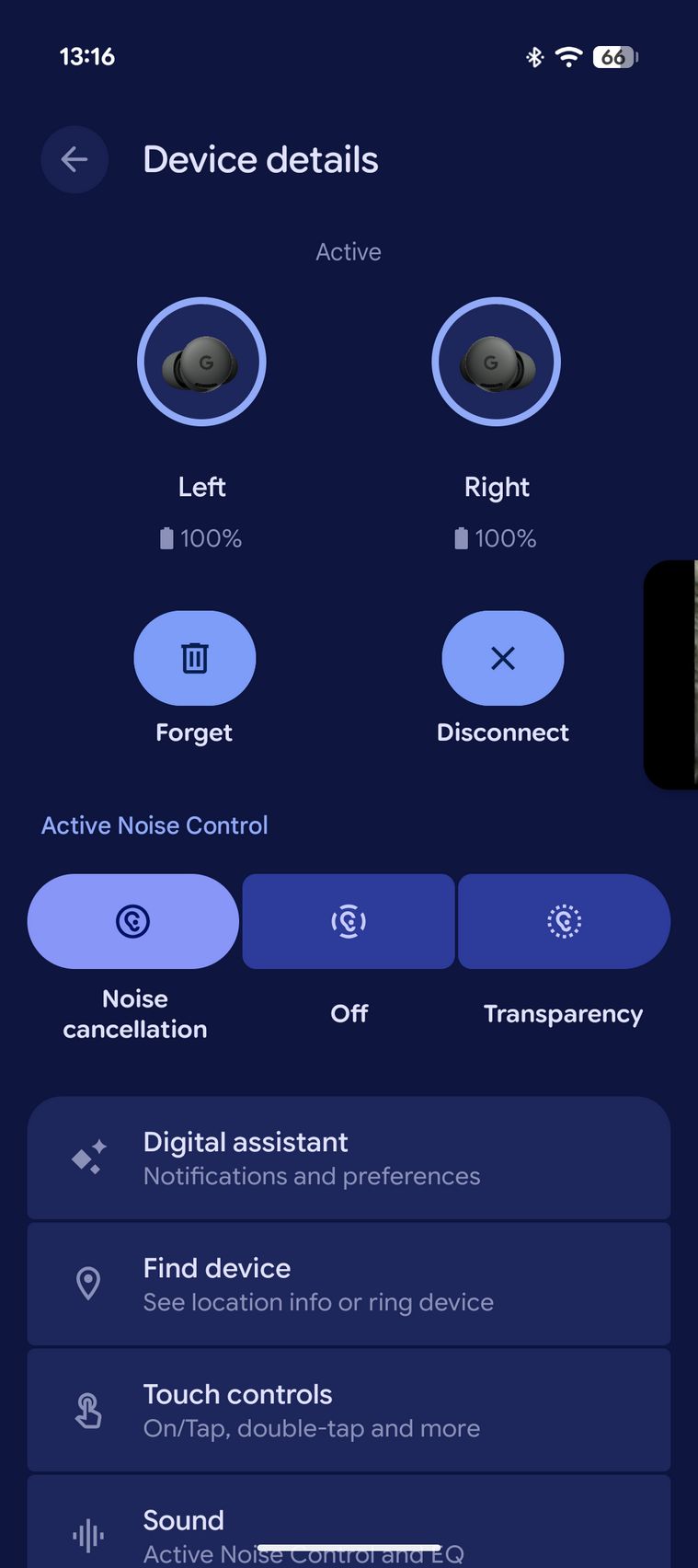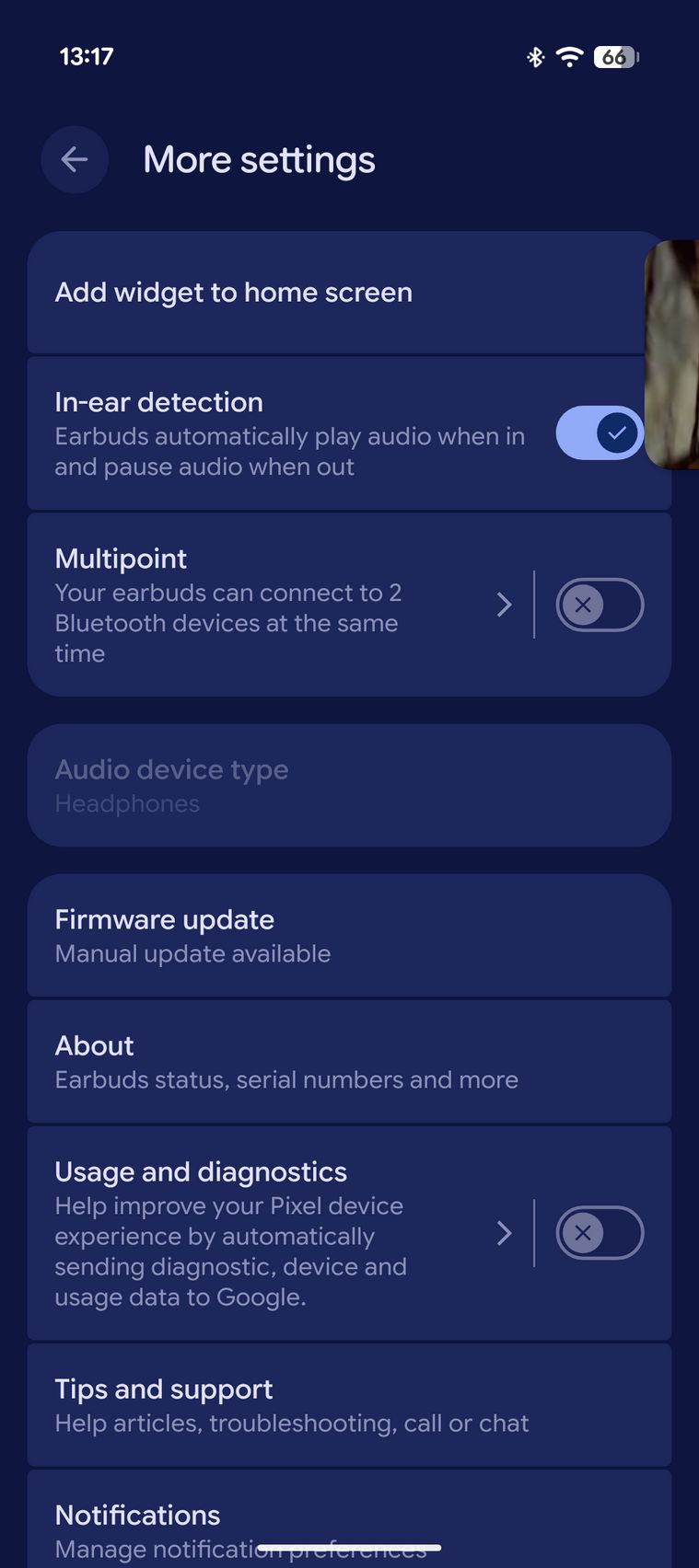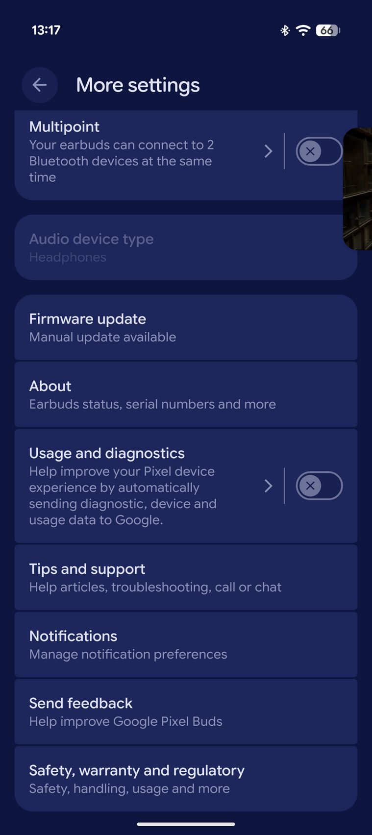 Foarte utilă zona de Wellness audio, ceva ce aș vrea să văd pe mai toate căștile. Este un layer de unde poți verifica expunerea la volum, plus nivelul curent de dB. Pixel Buds 2a vor da și notificări dacă se depășește limita de expunere zilnică, astfel că știi când e momentul să faci o pauză de la căști și muzică.