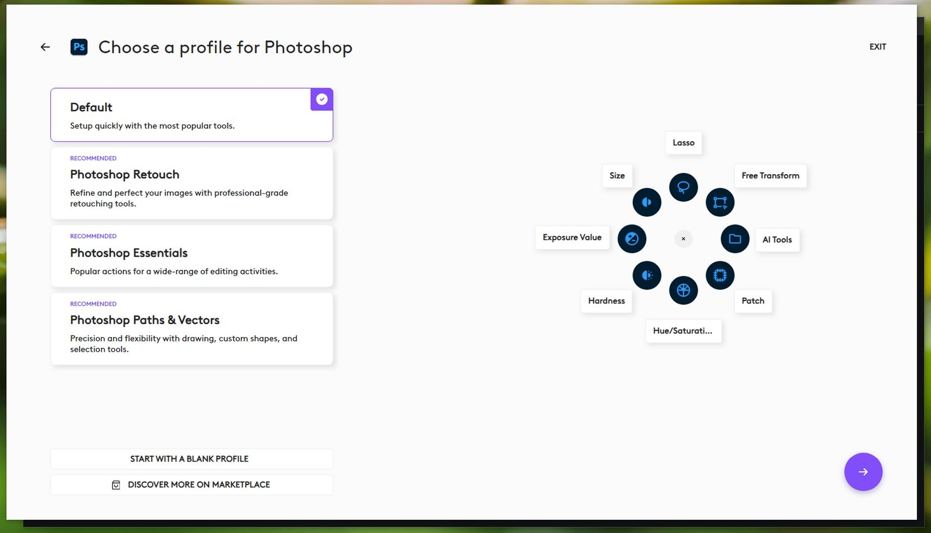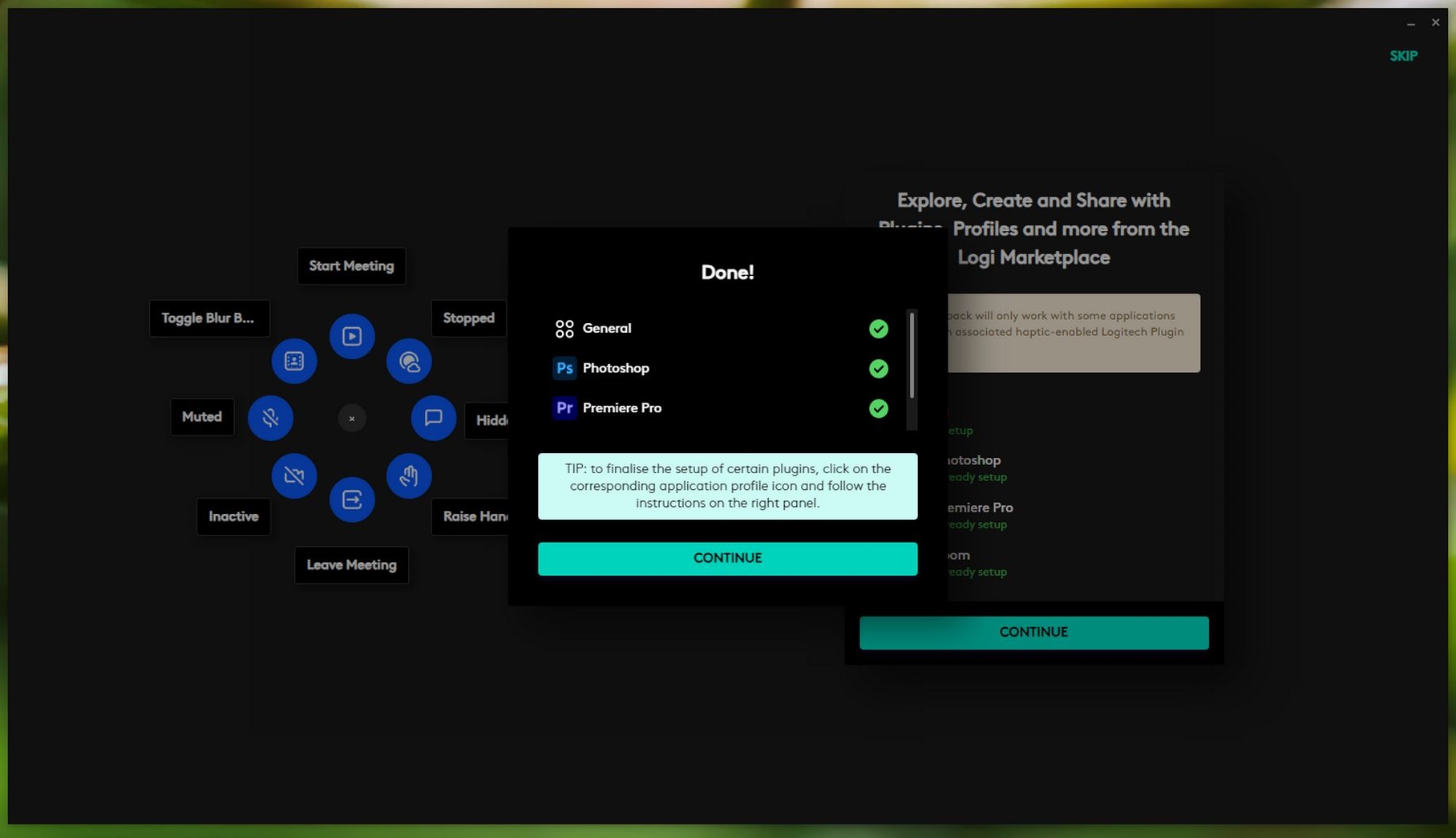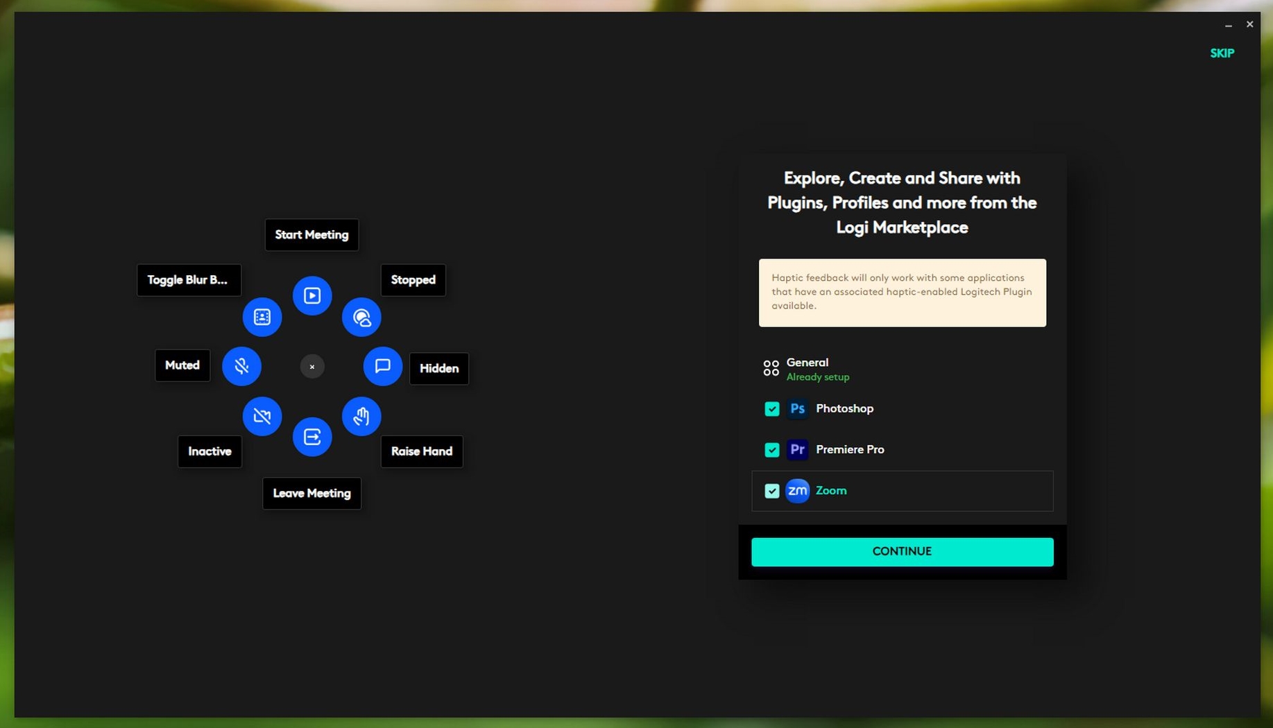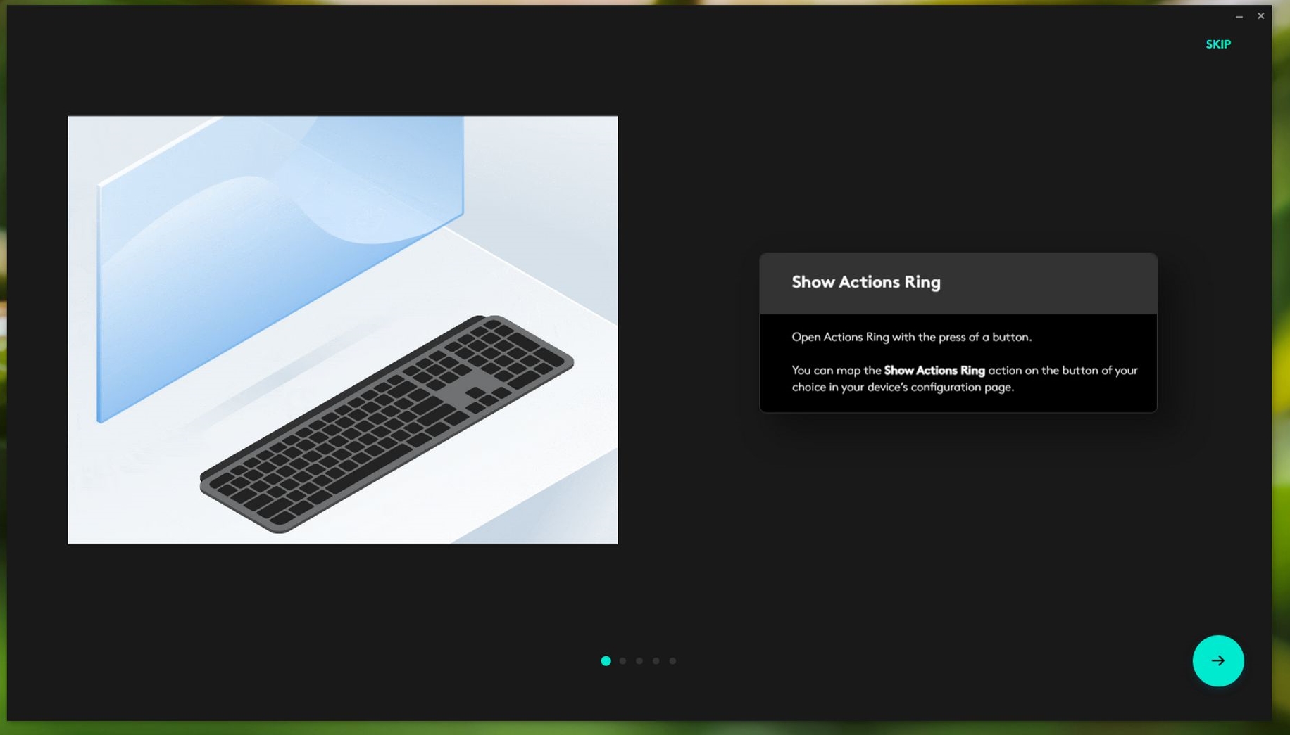 Vibrează și la trecerea printre opțiunile deschise în inel iar pentru aplicații precum Zoom, Photoshop am instalat un pluging care să activeze feedback-ul haptic. Am accesat Actions Ring și mi-am setat din interfața aplicației Logitech ce tool-uri să am la dispoziție de exemplu în Photoshop sau Adobe Premiere, fiind oferite câteva pachete de comenzi rapide plus posibilitatea de a crea un "inel" personalizat.