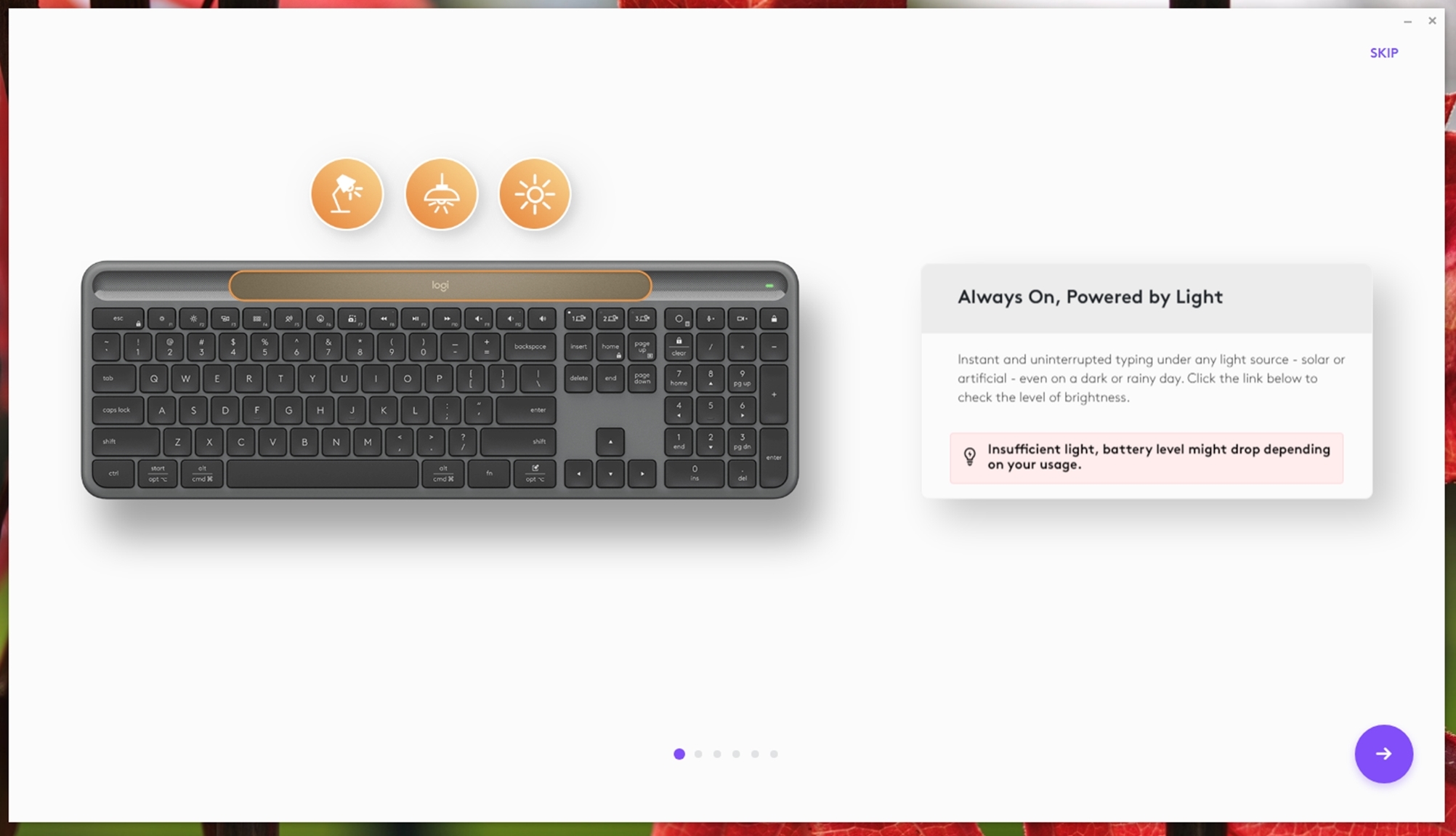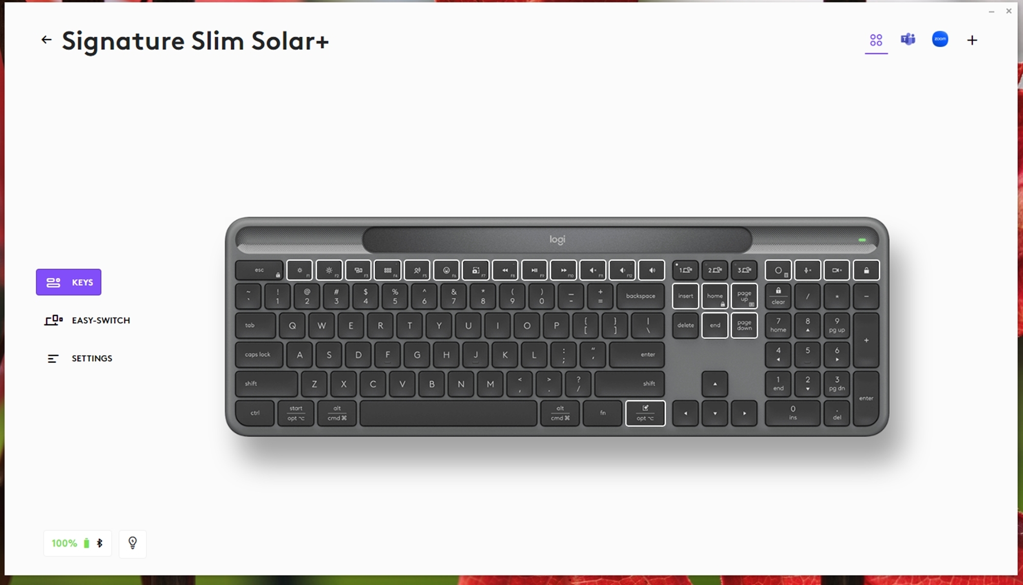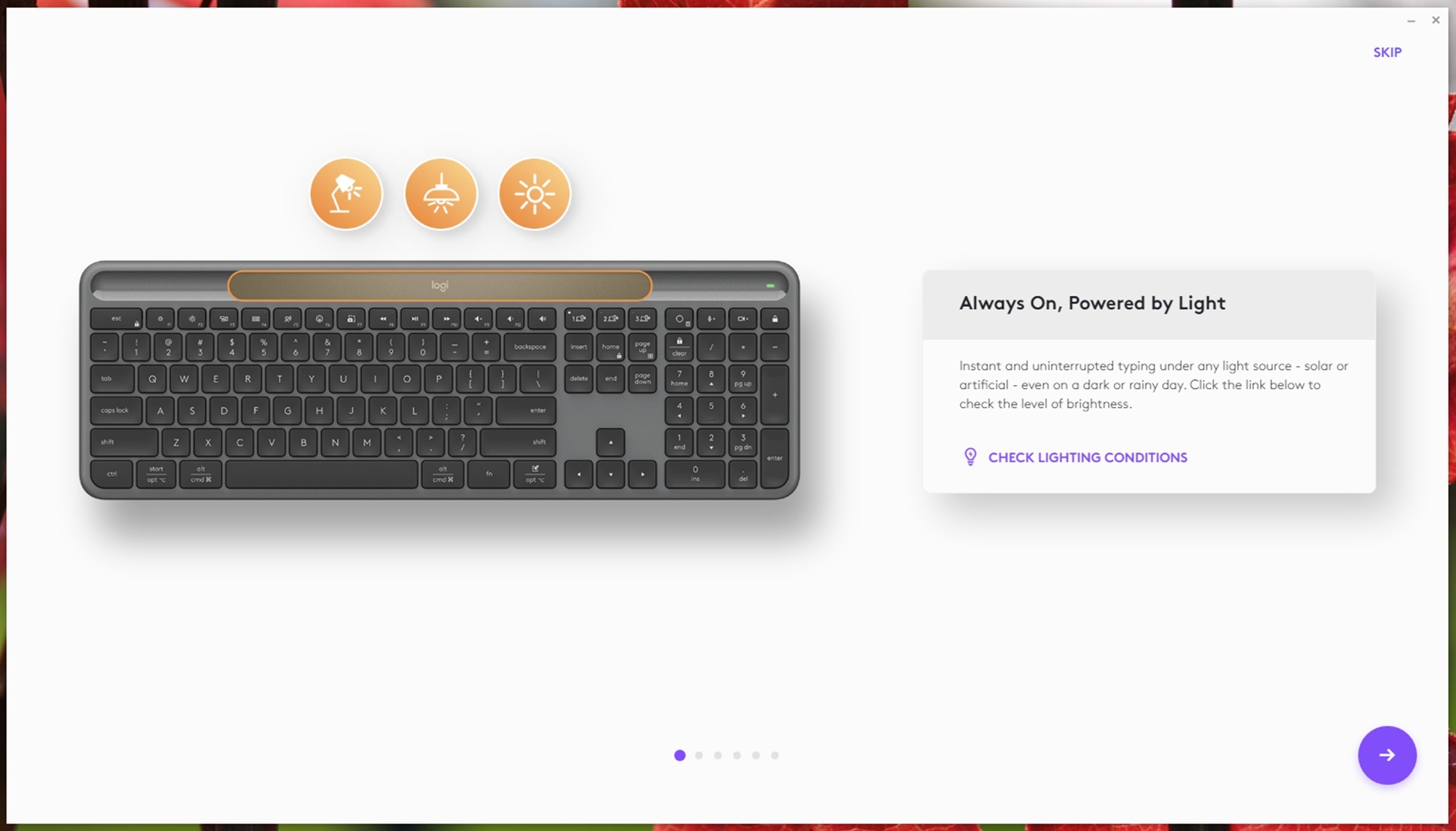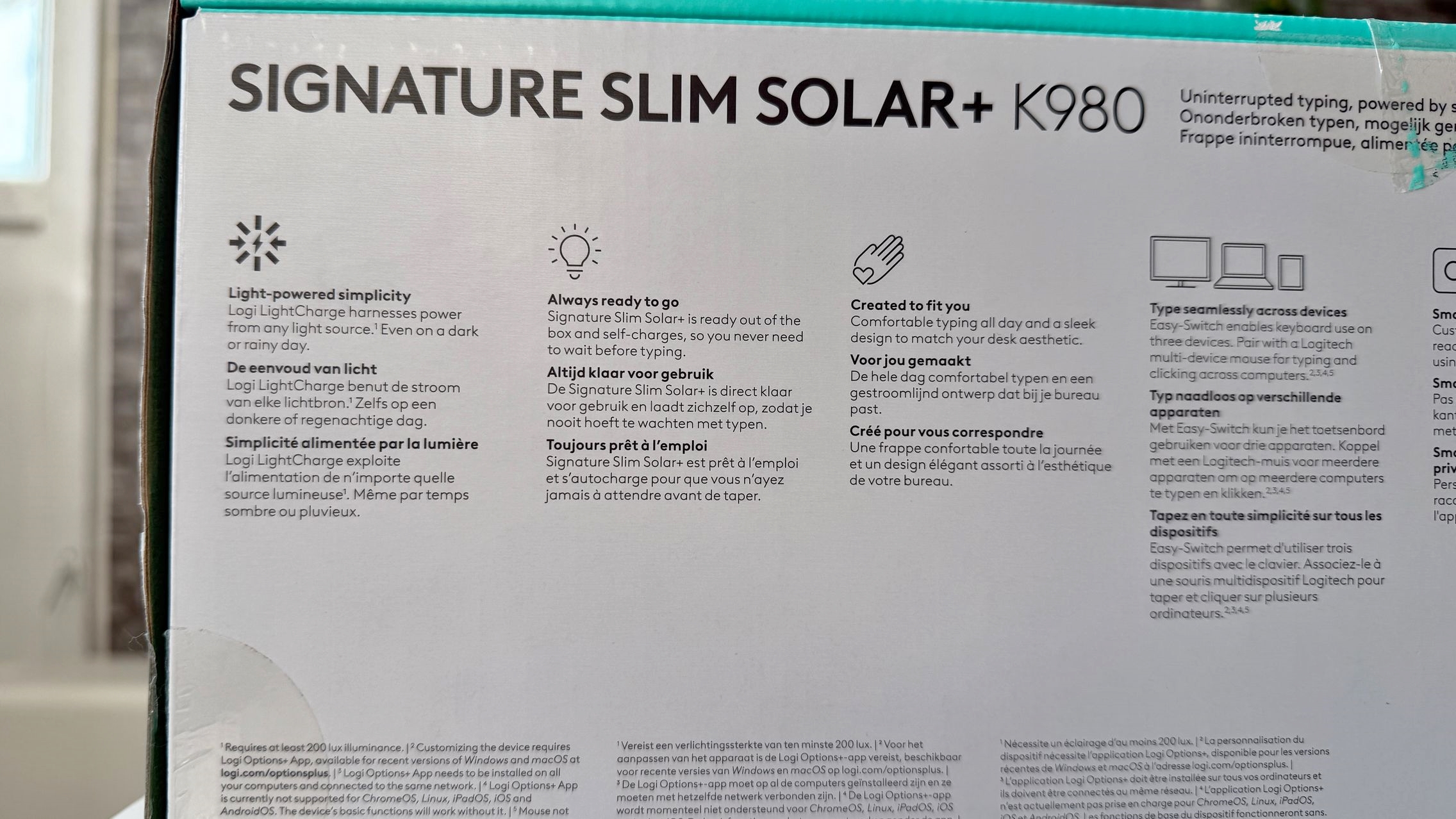 Dacă alte tastaturi se remarcă prin display-uri sau poate cititoare de amprentă, Logitech Signature Slim Solar+ K980 se laudă cu alimentarea solară și alimentare cu energie de la lumina din jur sau chiar a becului. Logitech descrie această tehnologie drept magie și scoate în evidență ușurința de utilizare, fără cabluri, fără schimbat de baterii, doar utilizare.