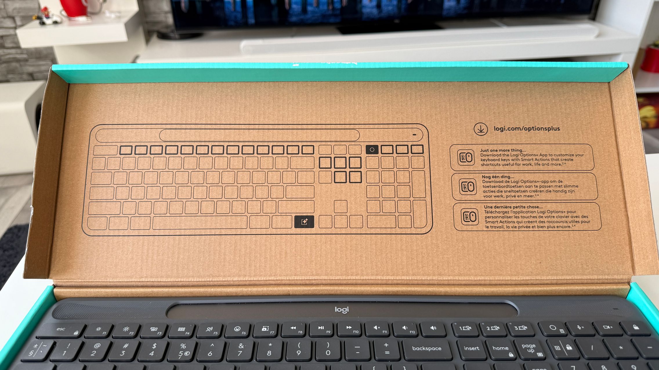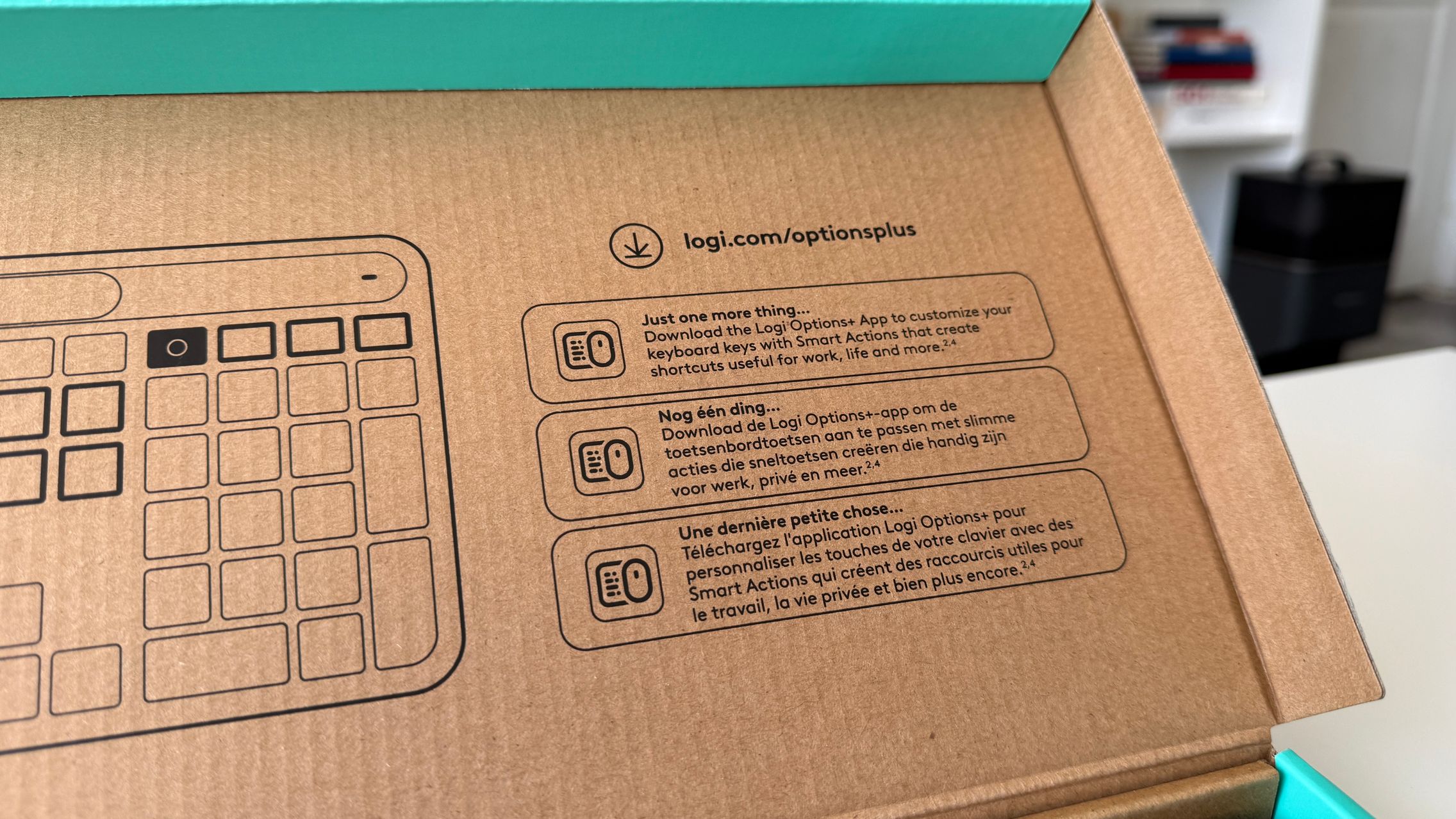 Pe cutie apar tot felul de specificații și un ghid pentru descărcarea aplicației Logi Options+ de unde se pot customiza unele aspecte. Conectarea se face foarte rapid prin Bluetooth și pot fi până la 3 dispozitive înregistrate pentru switch rapid.