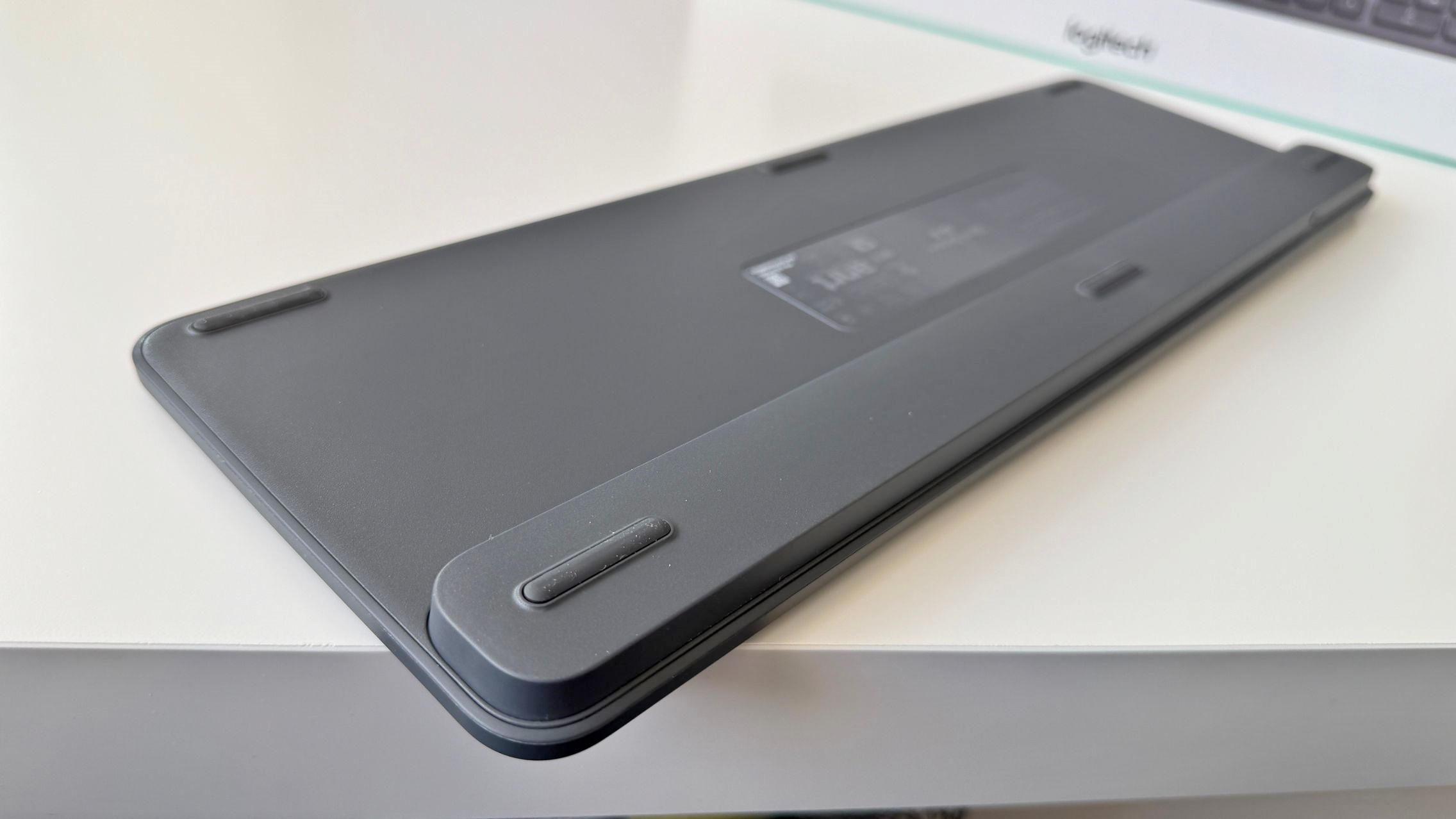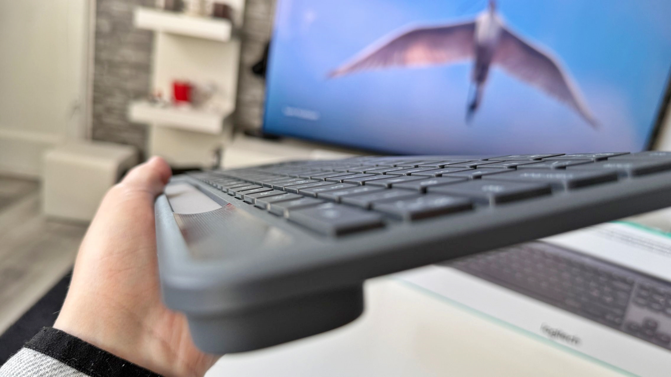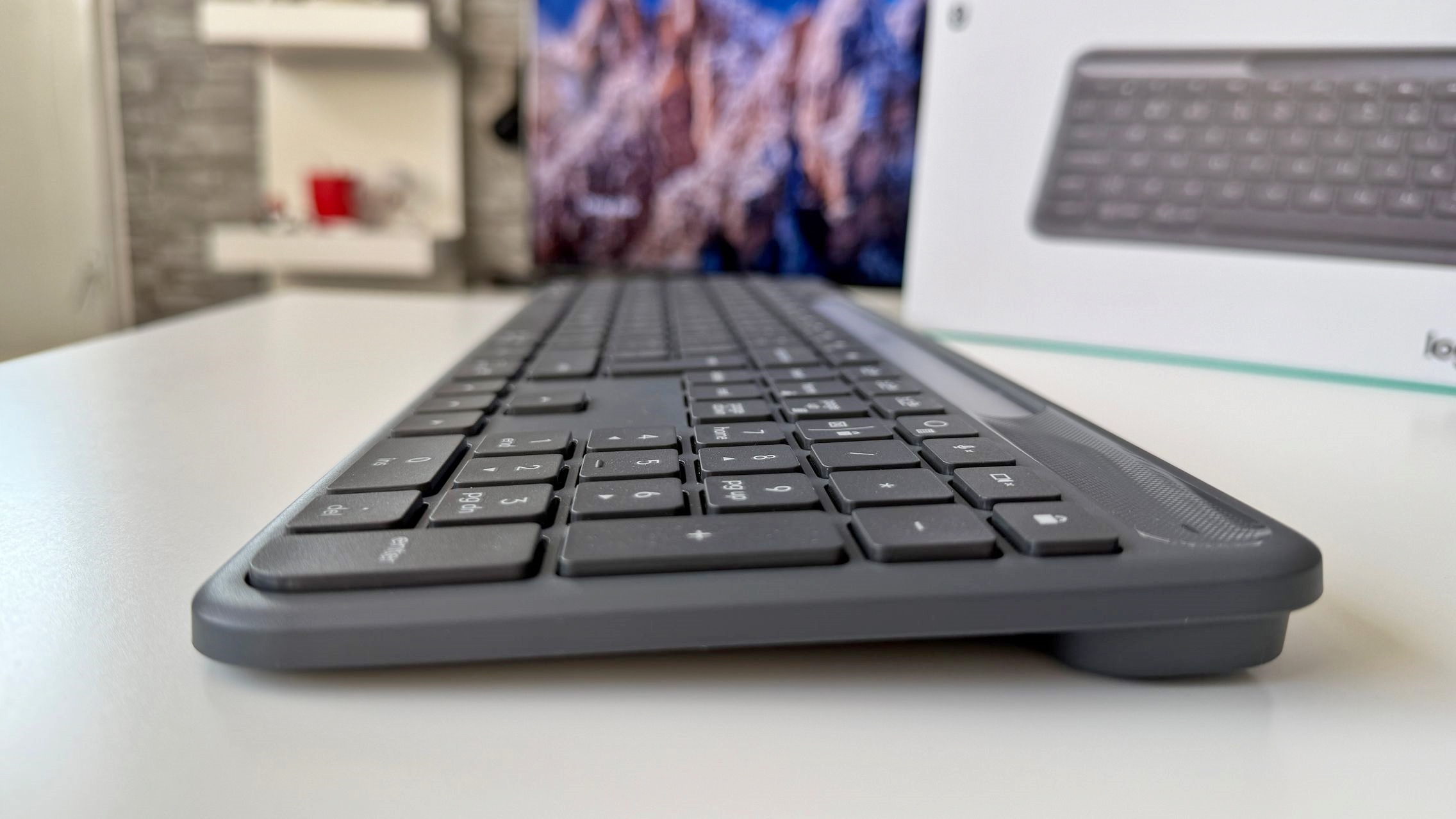 Dacă alegi și un mouse multi-device Logitech, poți cupla și această tastatură pentru multitasking avasant. Revenind la baterie, dacă după 10 ani vei vrea să înlocuiești bateria, poți scoate piciorușele din cauciuc și deșuruba carcasa din spate, după care ai acces la baterie și pui una nouă.