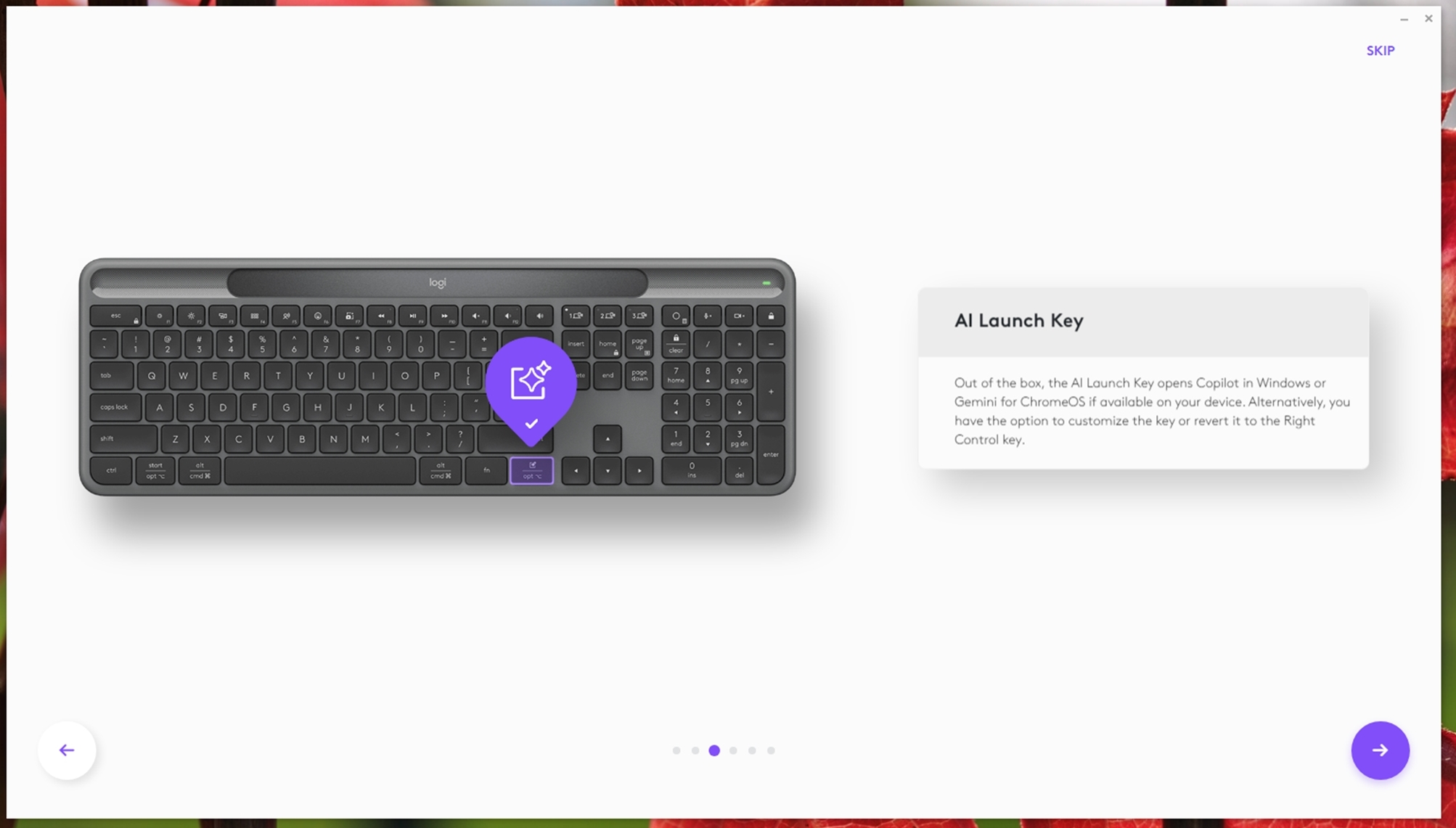 Logitech aduce aici și aplicația Logi Options+ de unde am personalizat tastele Actions Key și AI Key. Poți de exemplu să ai deschise toate aplicațiile de muncă la doar o apăsare de buton distanță sau poți automatiza task-uri repetitive. Tasta AI poate fi utilizată pentru a deschide aplicația AI preferată sau orice altă aplicație.