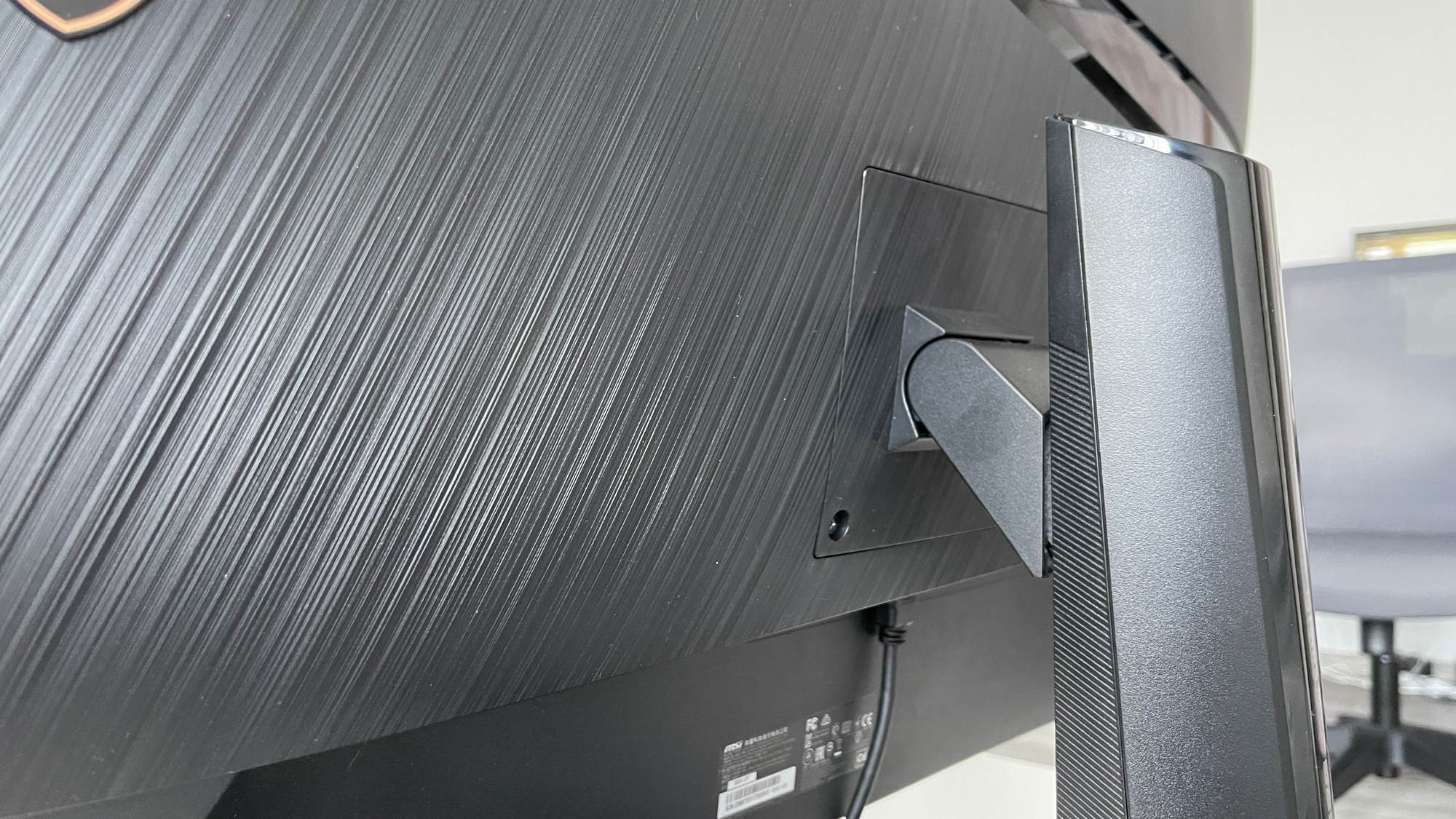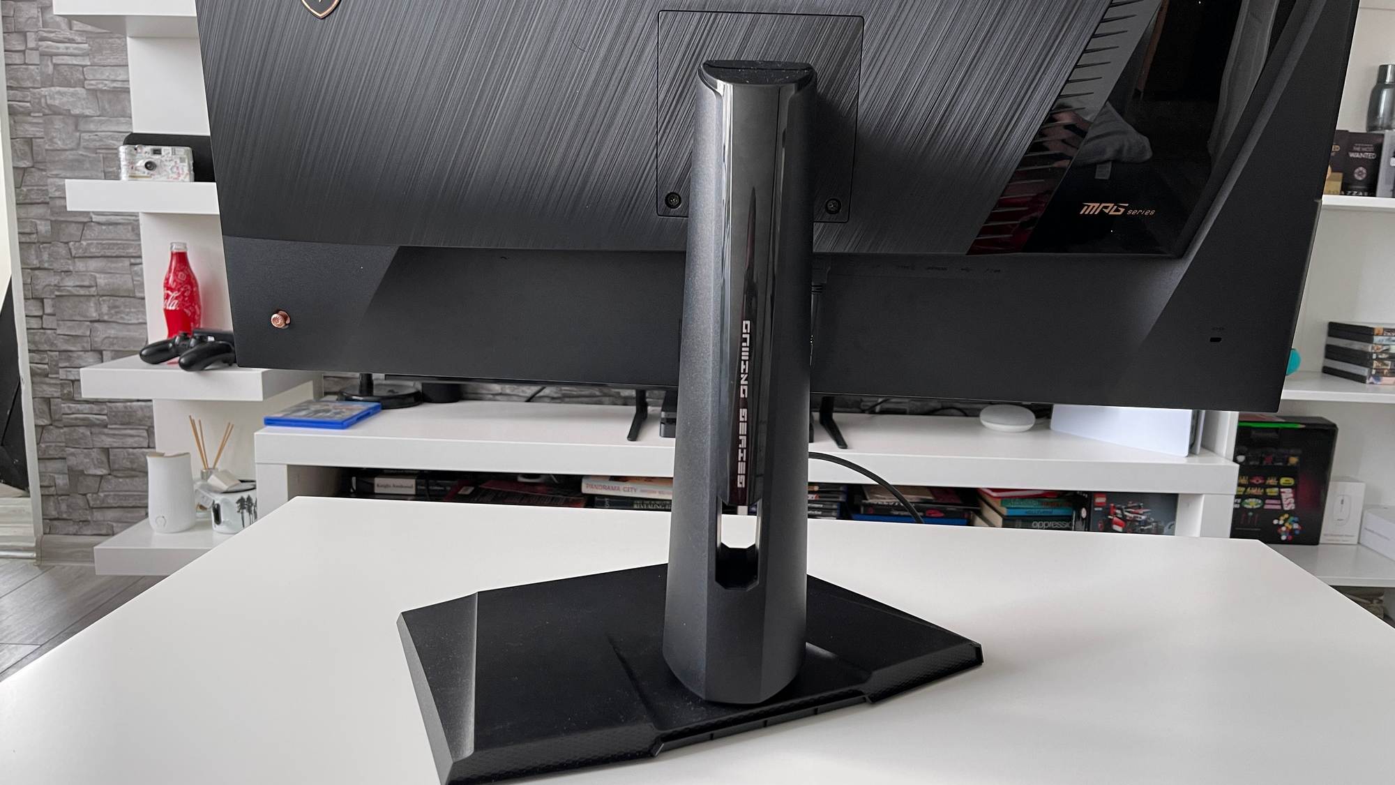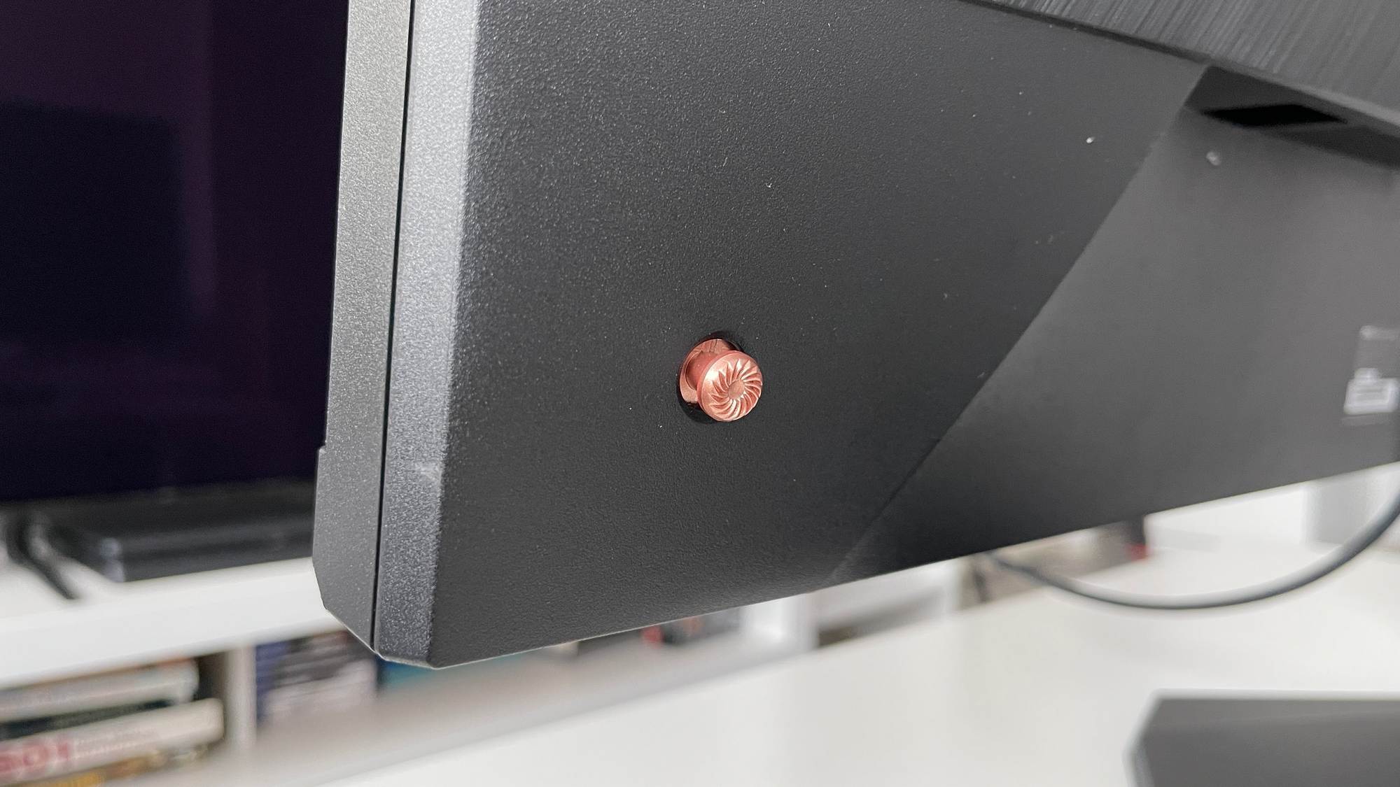 Zona frontală, acea bărbie este pe cât se poate de curată, fără butoane multe înșirate care să îți distragă atenția în timpul sesiunilor de gaming. Apare un singur buton în lateral dreapta jos, cel power, iar în spatele monitorului, tot în dreapta, vei găsi un joystick de navigare OSD în 5 direcții, buton pe care îl vei folosi pentru a ajunge în zona de setări și customiza experiența vizuală după bunul plac.