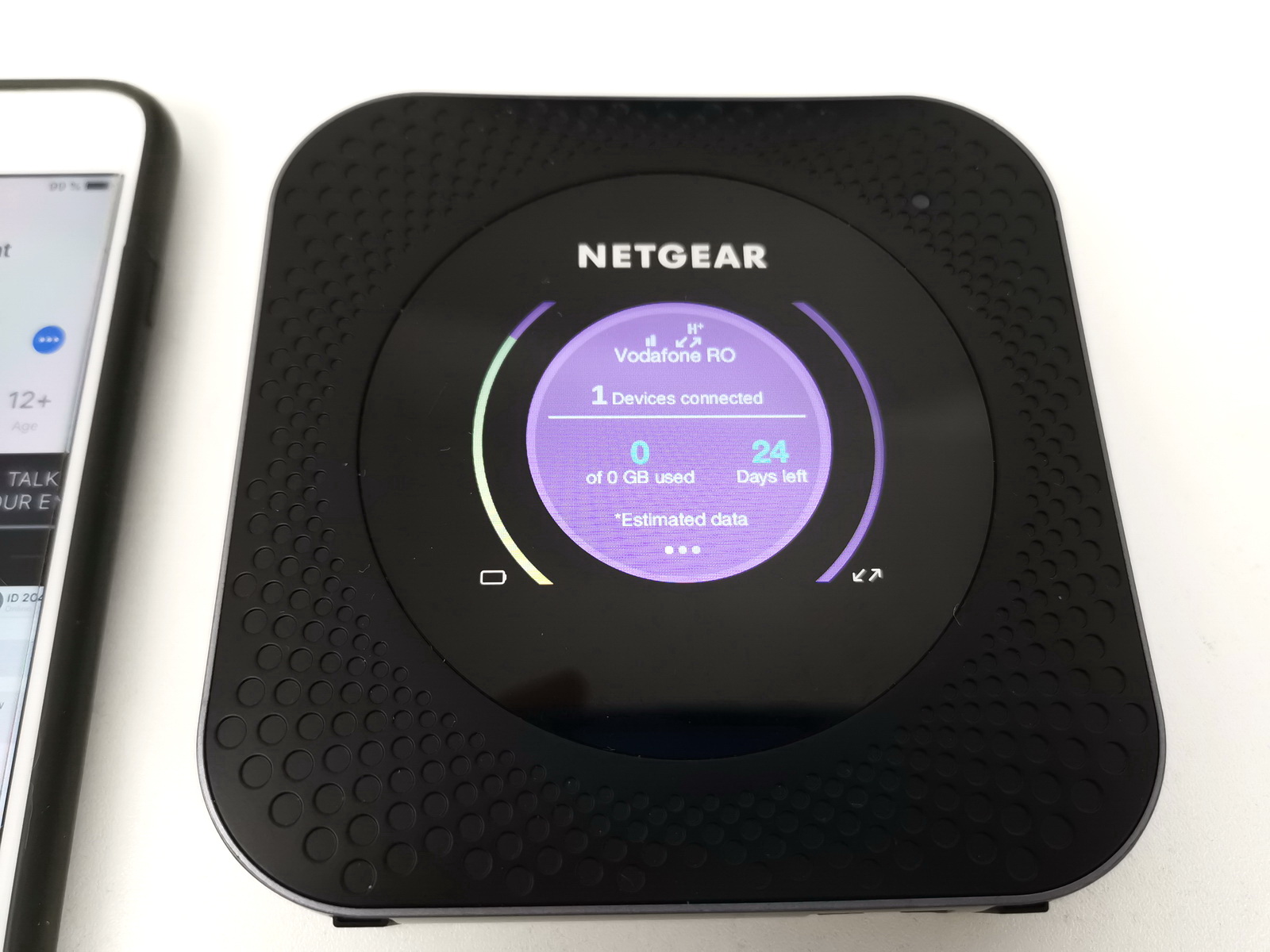 Oferă conexiune dual band şi are un ecran circular pe care afişează traficul de date pe care îl realizaţi, tăria semnalului şi are un indicator elegant pentru nivelul de baterie. Pe acelaşi ecran vedem şi parola reţelei WiFi pe care am realizat-o pe baza cartelei SIM introduse în router. Avem parte de suport pentru LTE Categoria 16 aici, cu 4X4 MIMO şi viteze de download de până la 1 Gbps.