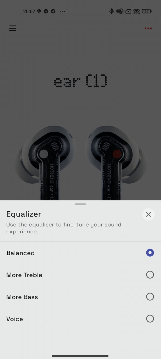 Evident avem și un mod balansat, care practic e cel optim, recomandat de Nothing (e și presetat din fabrică pe acest mod). Aș menționa că în cazul în care treceți pe bass boost, e bine să dați căștile la nivel de 80% privind volumul, deoarece poate interveni distorsiunea sunetului. Nu e cazul în celalte moduri de sunet.