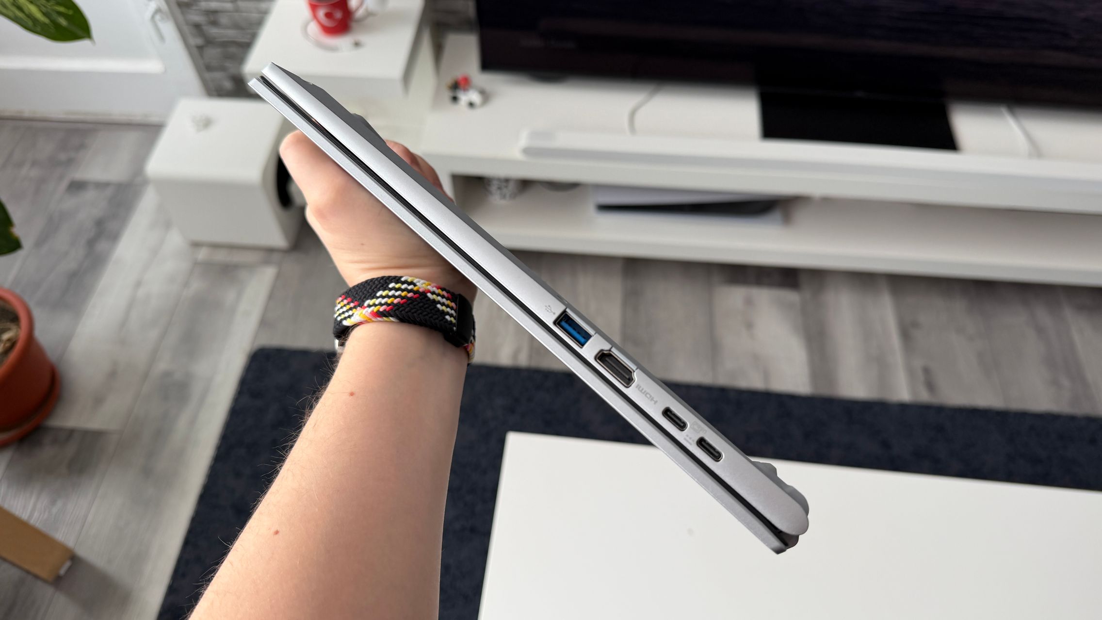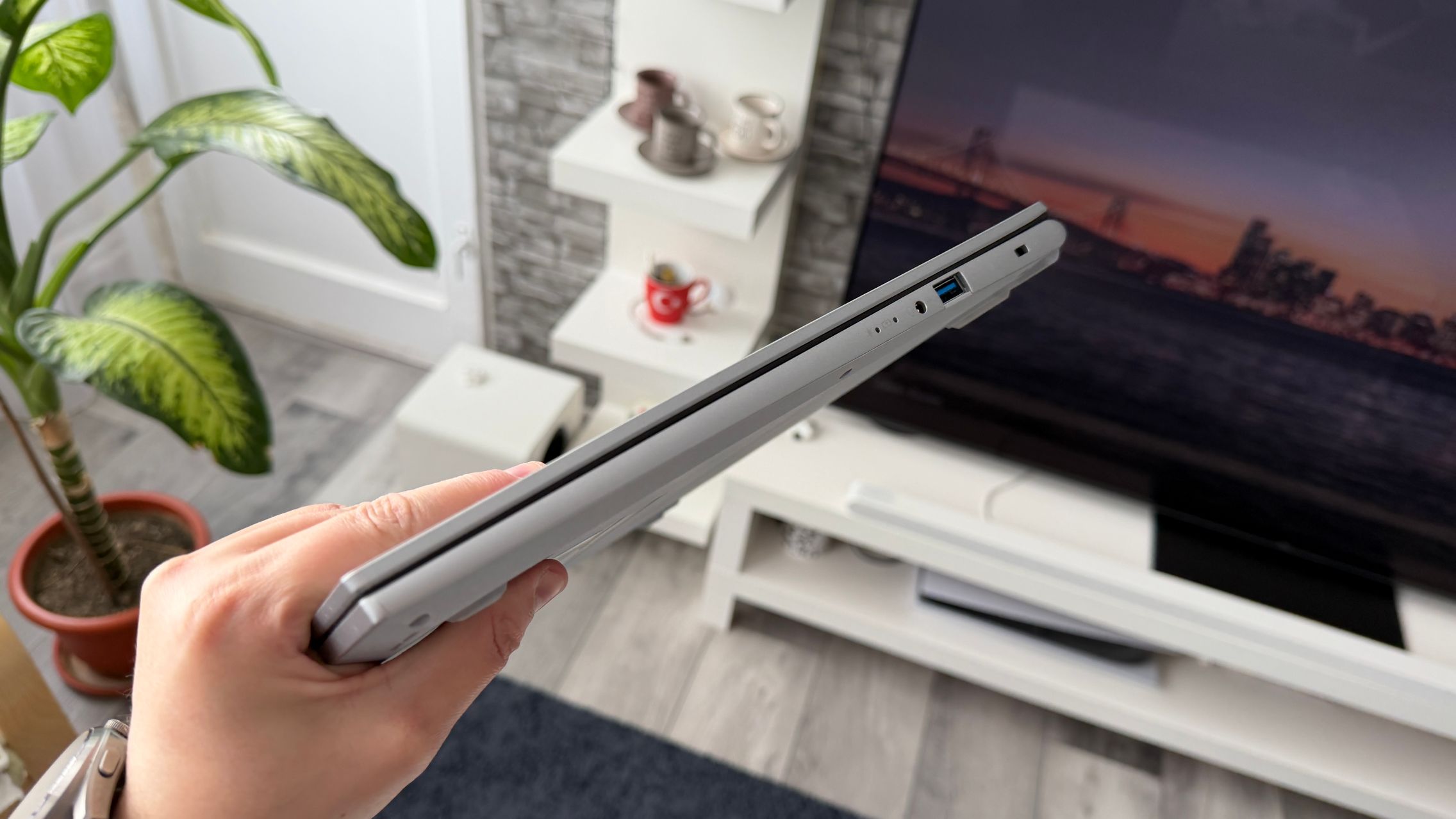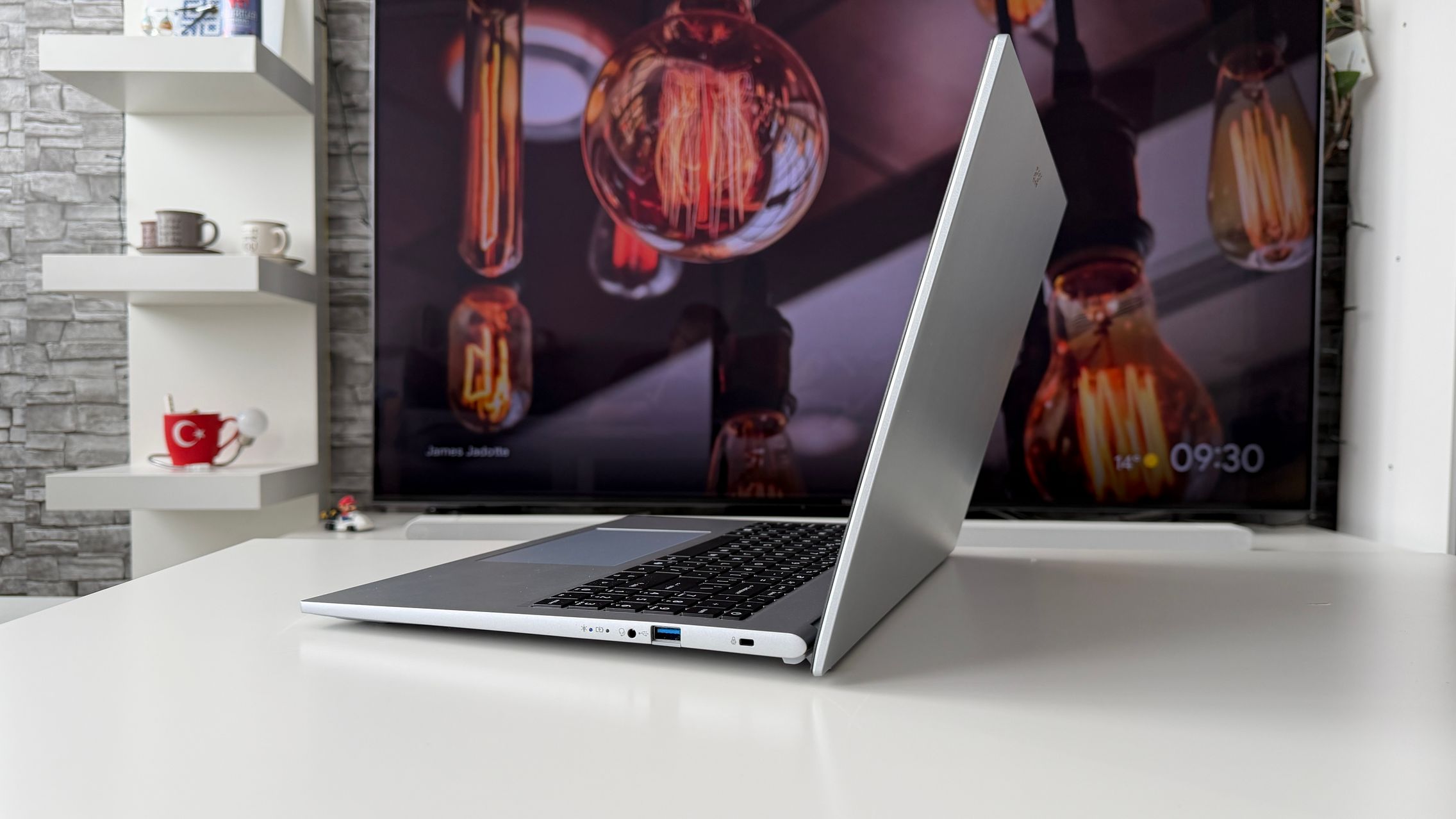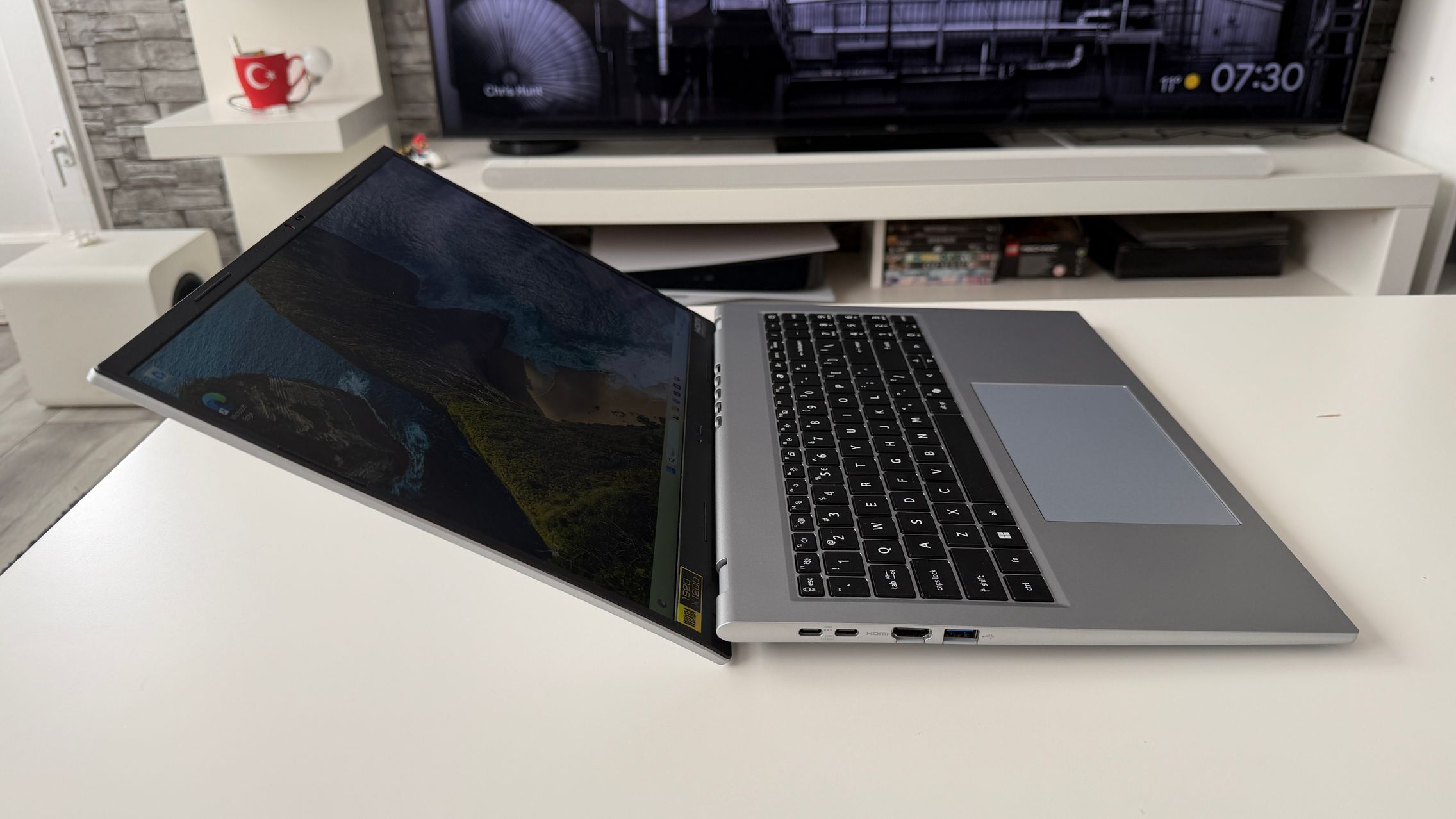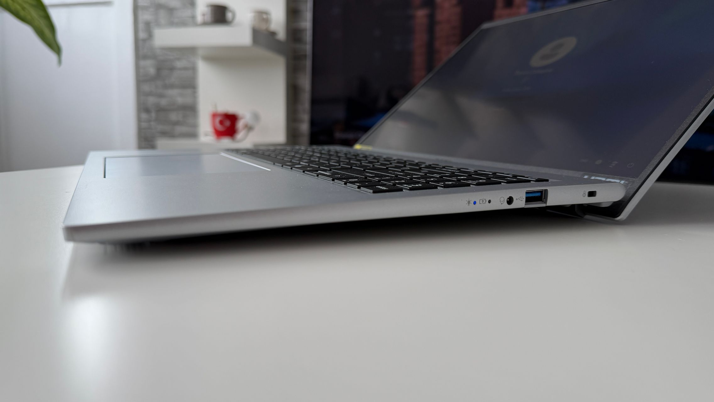 Nu obișnuiesc să exagerez cu luminozitatea la interior și l-am avut setat pe la 20% să zic, cu WiFi activ și cu lucru mai degrabă în browser, la typing, ceva editare foto light și optimizare de galerii. M-a ținut bine și nu am simțit panica de a-l băga în priză pentru că se termină bateria rapid.