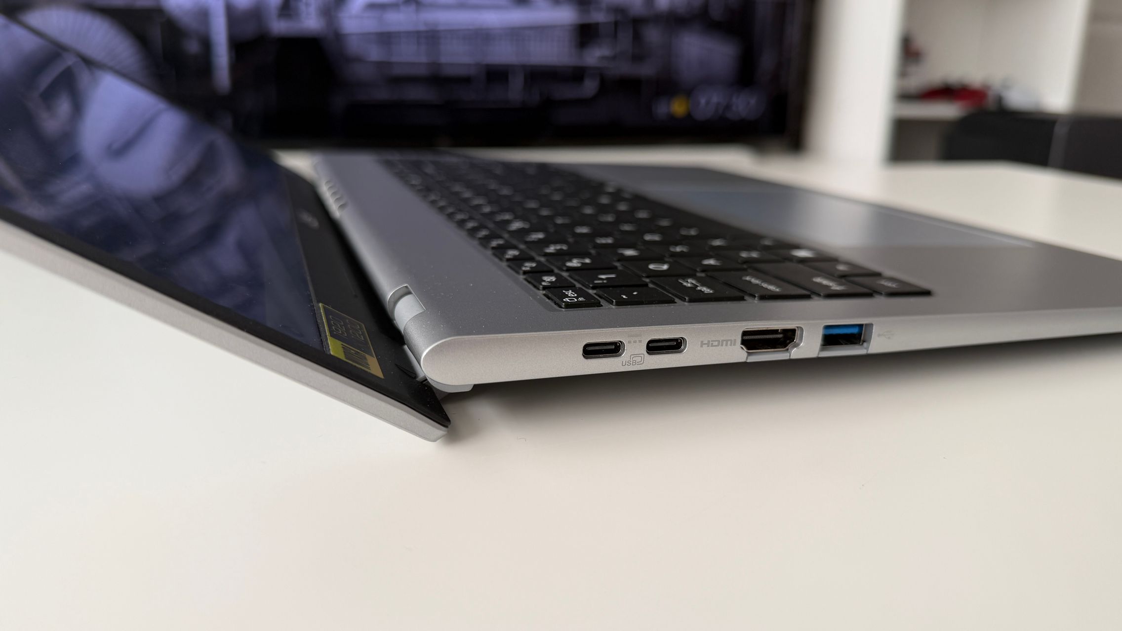 ACER a decis să aducă pe acest model un panou generos de 16 inch, o dimensiune pe care o apreciez pentru productivitate. Îmi amintesc de vremurile în care laptop-ul era unealta mea principală de muncă, pe la 14 inch și acum cu un monitor de 27 inch în față, mă întreb cum puteam lucra fără un spațiu mai generos.