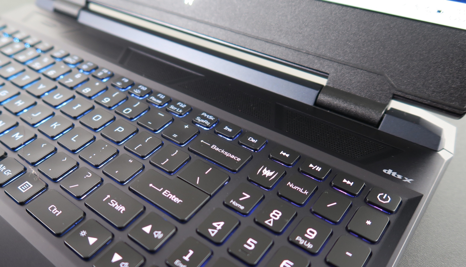 Mărturisesc că folosesc un laptop Acer Predator mai vechi și cumva eram obișnuit cu layout-ul tastaturii, care a rămas la fel. Ea e bine spațiată, aduce și numpad în partea dreaptă, iar tastele au parte de o cursă generoasă. Este iluminată Mini-LED RGB per-key, iar software-ul Predator Sense ne oferă nenumărate modalități de customizare. În partea stângă există și un buton „Turbo” care odată apăsat, va maximiza performanțele, crescând viteza de rotație a tuturor ventilatoarelor pentru o răcire eficientă.