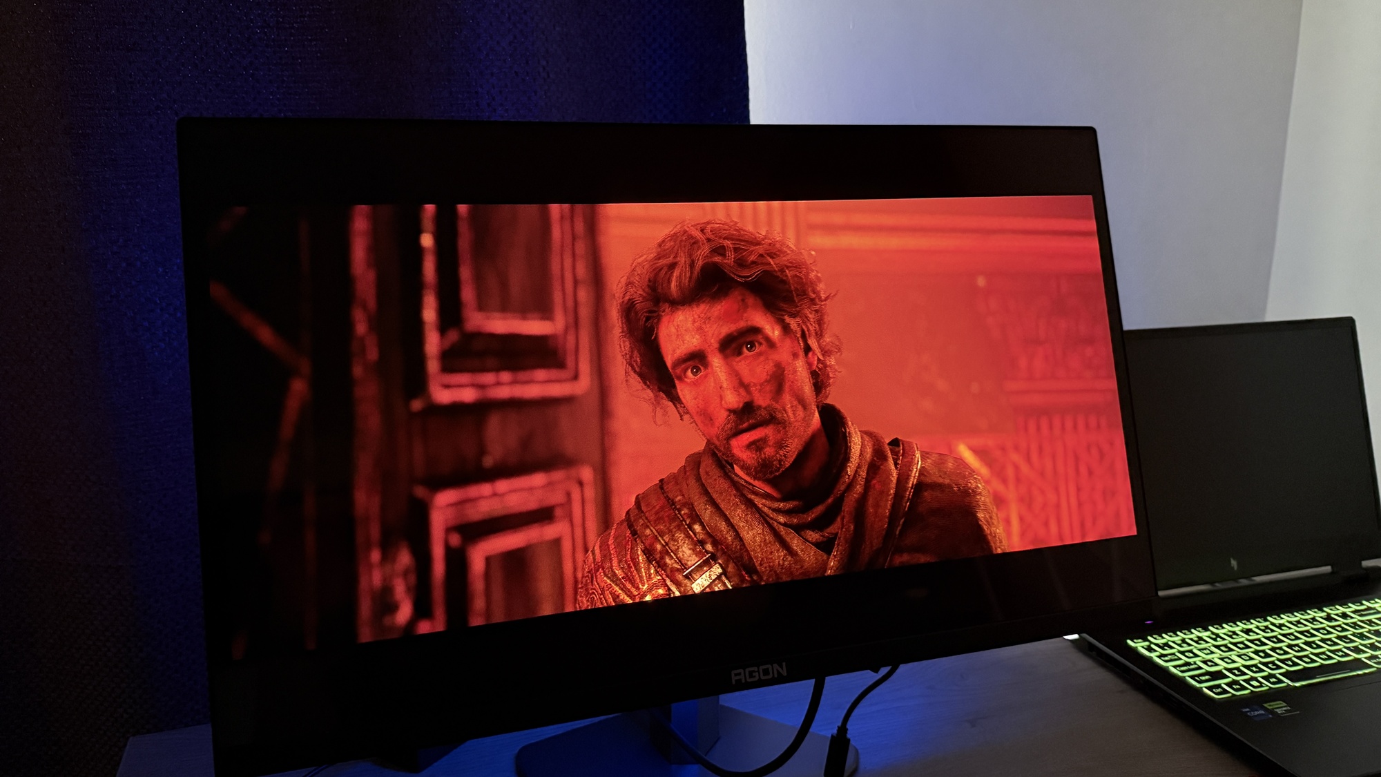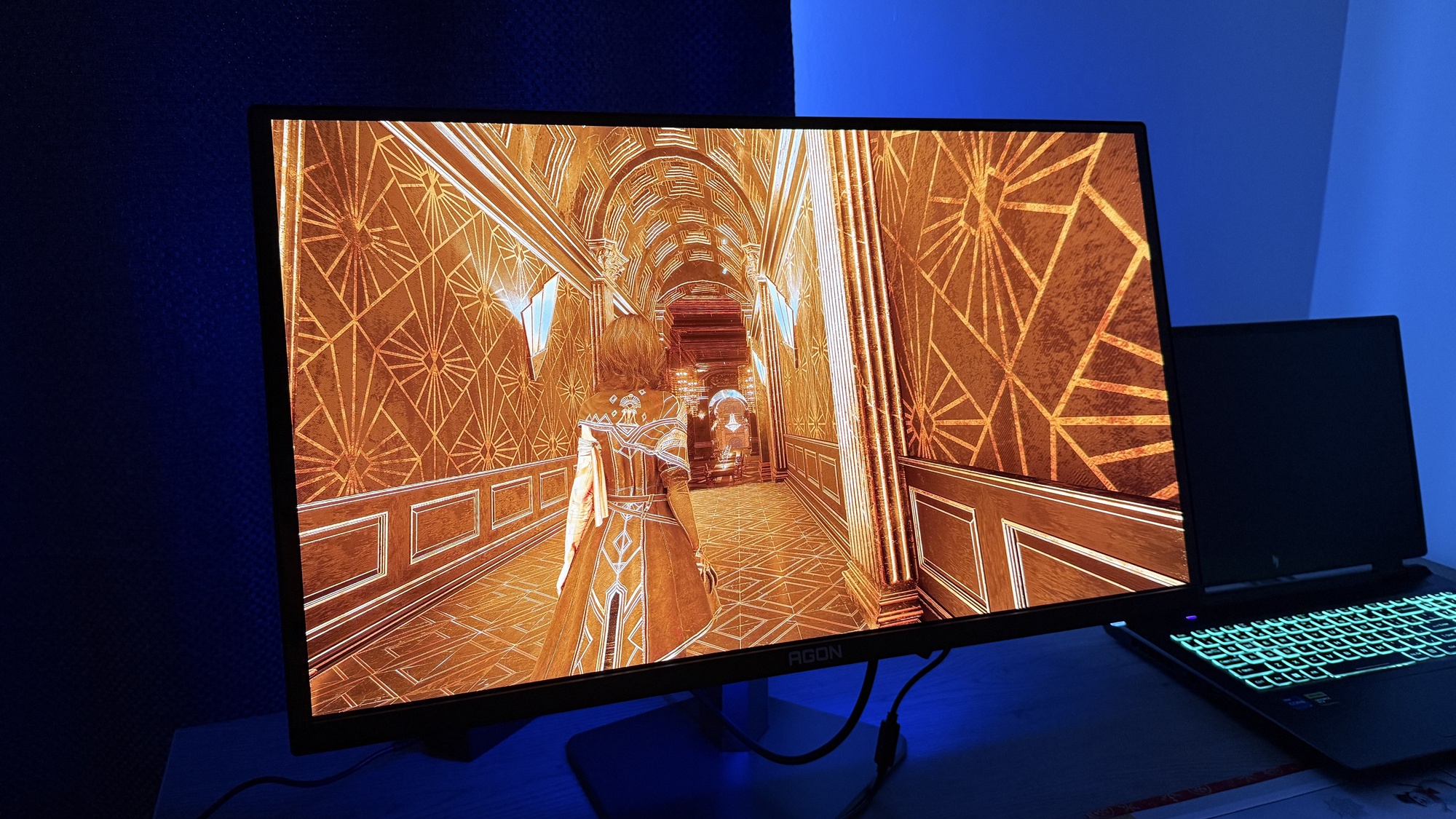 Aici începe magia adevărată. AOC Agon Pro AG276QZD2 folosește un panou QD-OLED produs de Samsung (a 3-a generație, dacă bine am înțeles). Oferă culori vibrante specifice Quantom Dot și contrastul absolut al OLED-ului. Panoul se „simte” și se comportă ca cel al unui smartphone, poate chiar o tabletă de ultimă generație cu panou OLED. Combinarea celor două tehnologii oferă o imagine pe care e greu să o mai uiți după ce te-ai obișnuit cu ea.