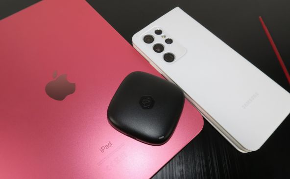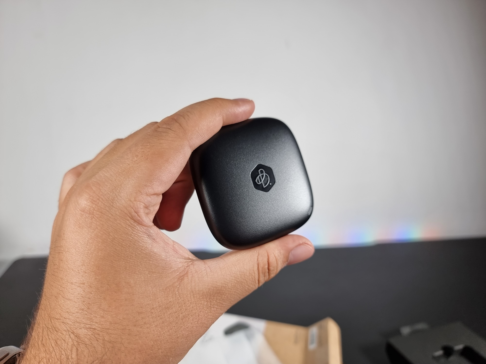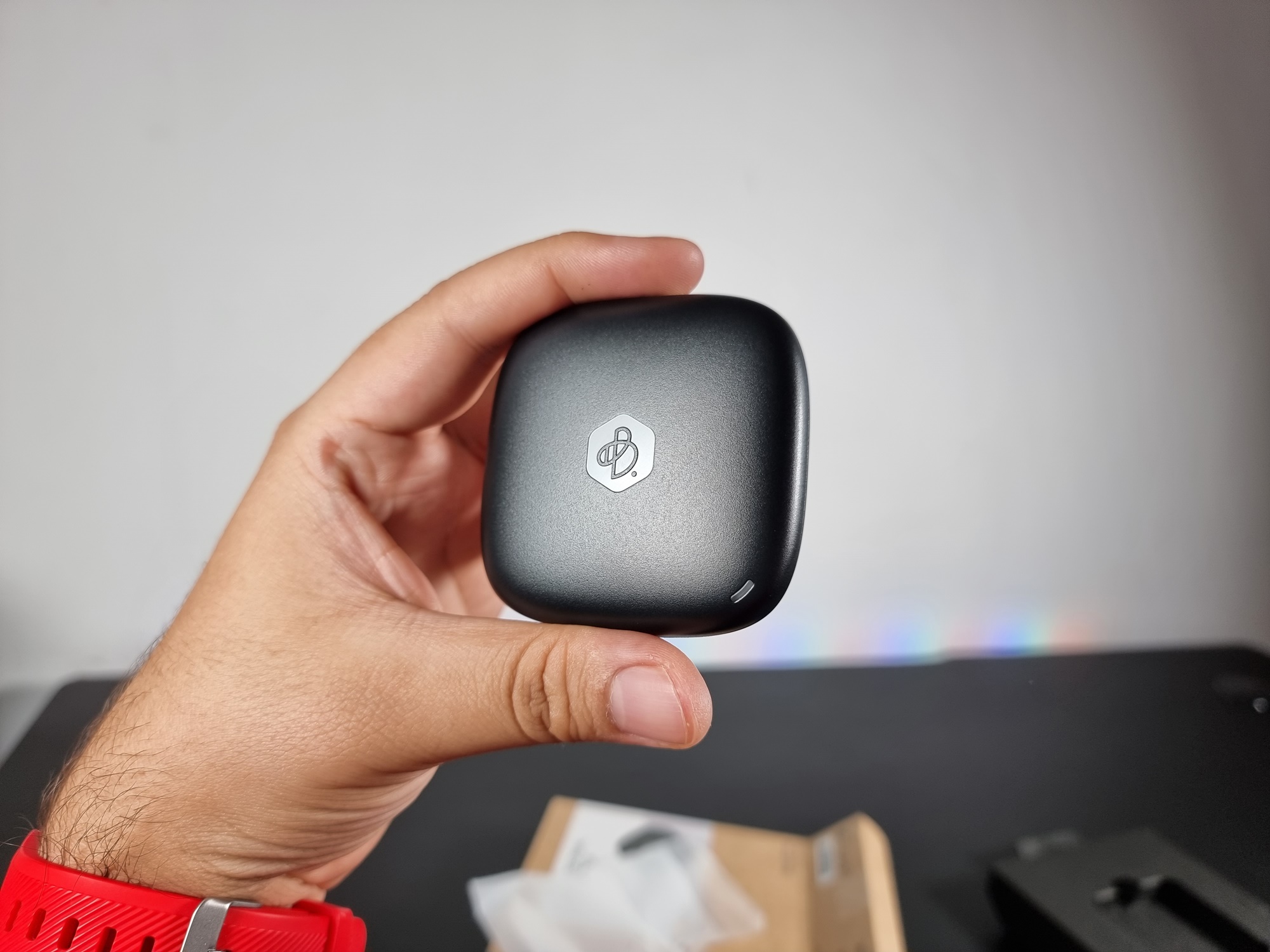 Despre device vă pot spune că măsoară 65 x 65 mm și are o talie de doar 15 mm. E fabricat din plastic, are colțuri rotunjite iar undeva îl lateral există un LED de stare. Tot lateral se află și portul USB-C folosit pentru conectarea la PC / laptop. Cântărește în jur de 40 de grame, deci e mic și compact, astfel că poate fi transportat oriunde cu ușurință.