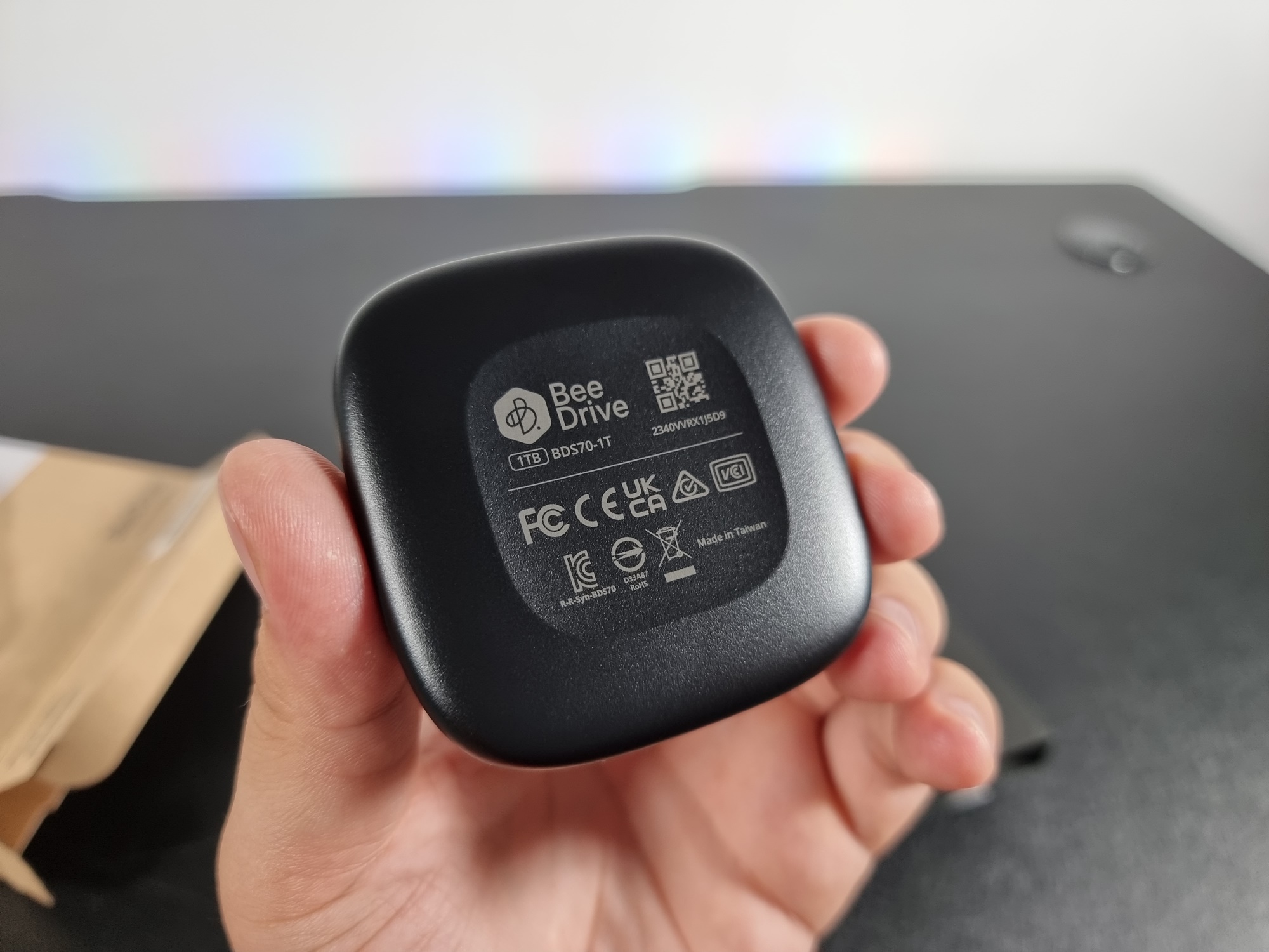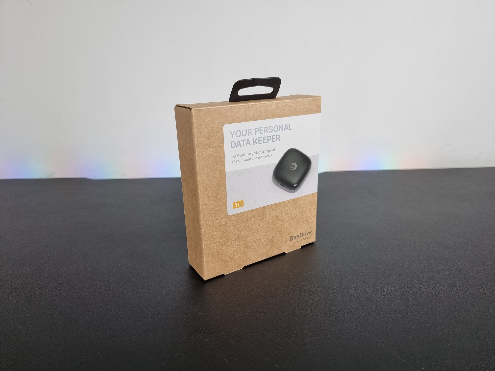 Evident, începem cu experiența de unboxing. Avem de-a face cu o cutie de dimensiuni mici ce conține doar câteva etichete pentru prezentarea produsului. Pare o cutie prietenoasă cu mediul, după cum ne-au obișnuit companiile în ultimii ani. Odată desfăcută găsim micul gadget BeeDrive, cablu USB-C la USB-C de dimensiuni mici, dar și un adaptor USB-A la USB-C + ghid de pornire rapid.