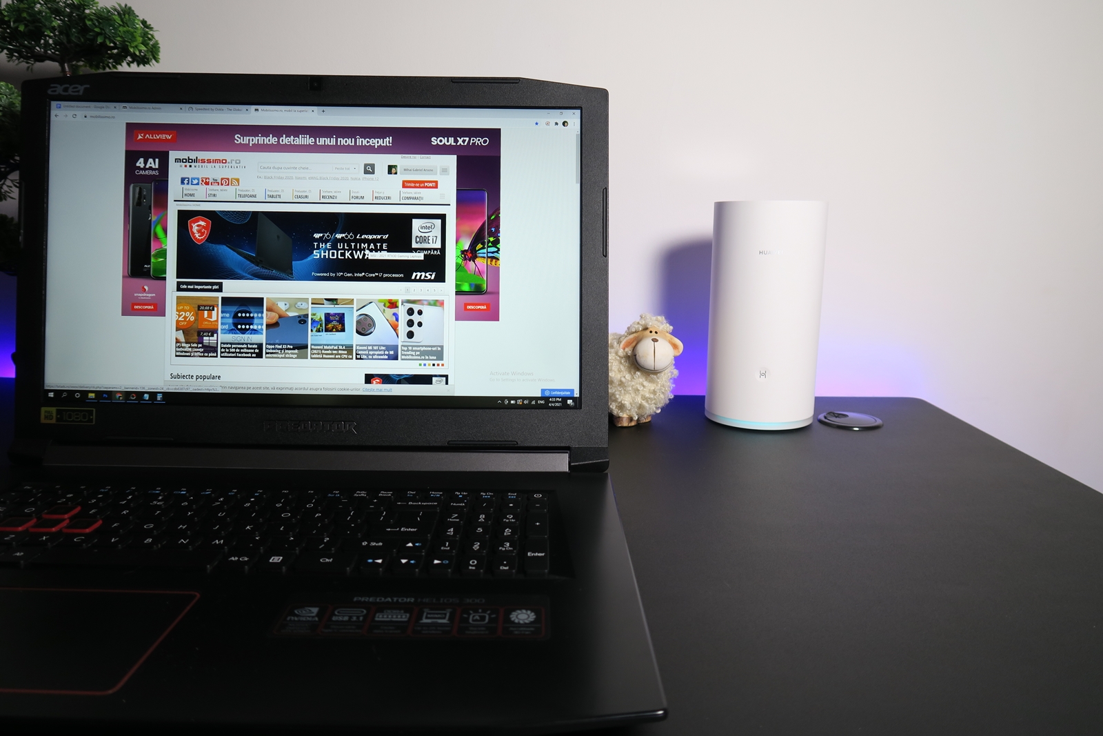 Acoperirea este întradevăr foarte mare, chiar dacă viteza scade considerabil la 80-90 de metri distanță de casă. Am testat câteva routere de-a lungul timpului și pot spune că sistemul Huawei Mesh WS5800 a reușit să mă impresioneze. Practic, sunt cele mai bune viteze obținute de mine până acum.