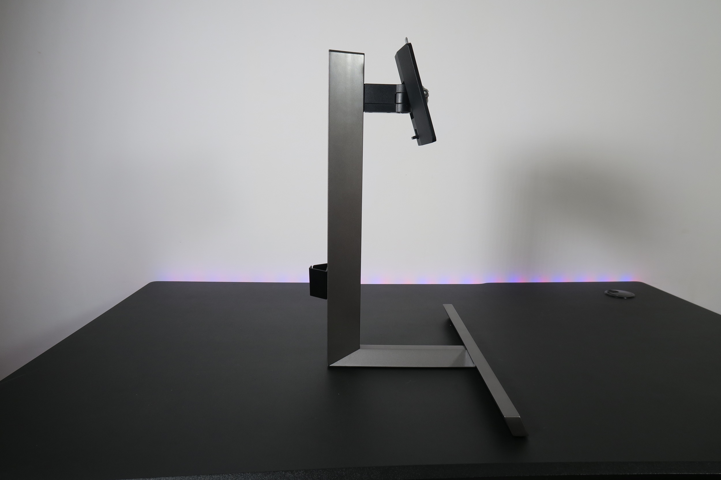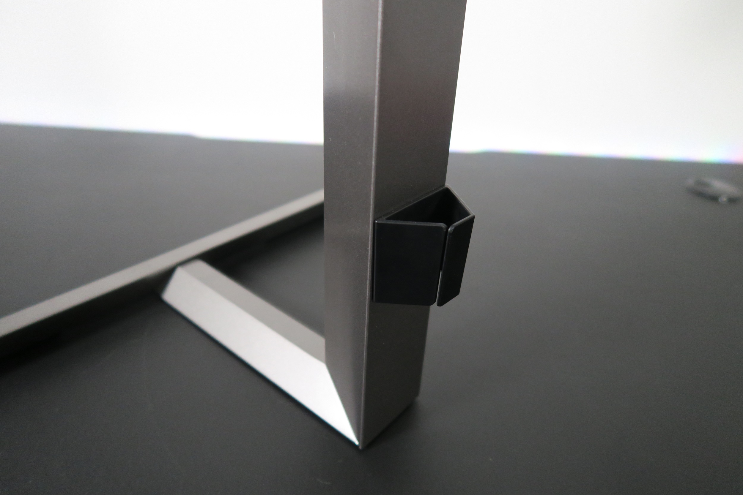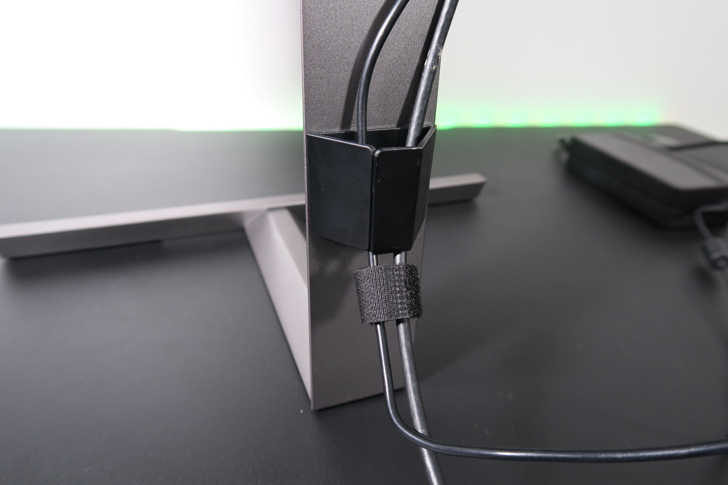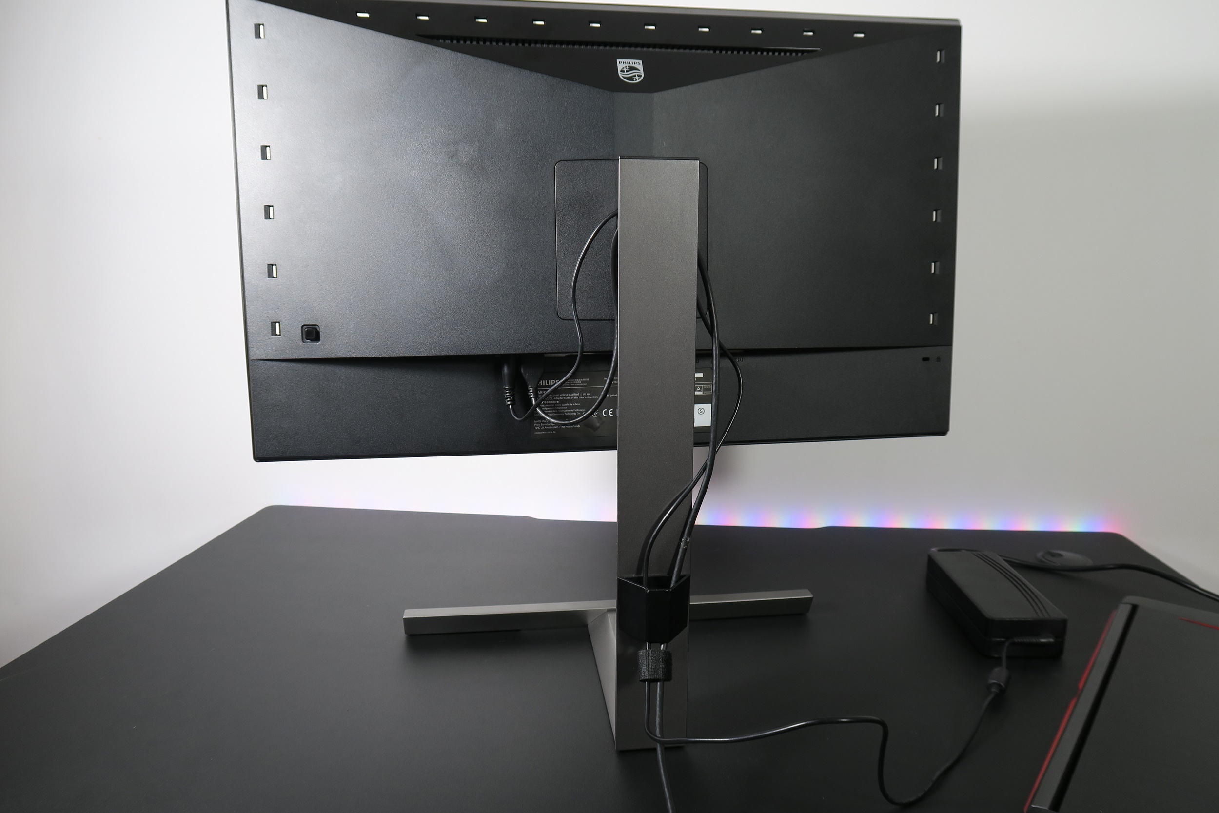 Design-ul monitorului este minimalist, are parte de margini subțiri pe 3 laturi (sus, dreapta și stânga), iar exteriorul este fabricat din plastic mat care nu permite urmelor de amprente să se vadă. Stand-ul monitorului este fabricat din metal bine finisat, iar în spate regăsim și un organizator de cabluri, foarte util pentru un setup “clean”. Ambiglow-ul este prezent pe spatele monitorului, existând 6 porțiuni RGB în partea stângă și dreaptă și câte 10 porțiuni RGB sus și jos. Suportul ne permite să înclinăm monitorul în 4 direcții (sus-jos, stânga-dreapta) și să îi reglăm înălțimea.