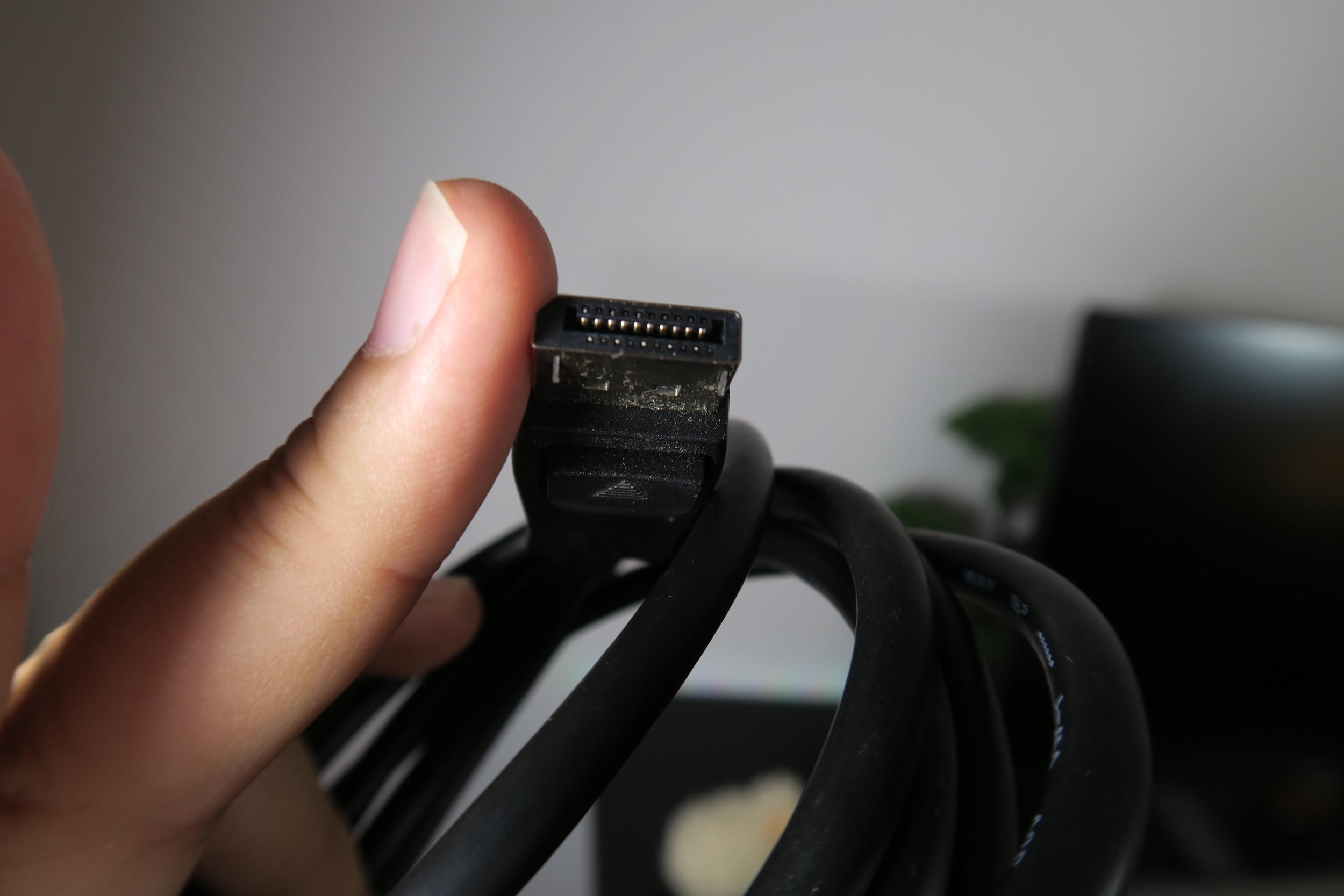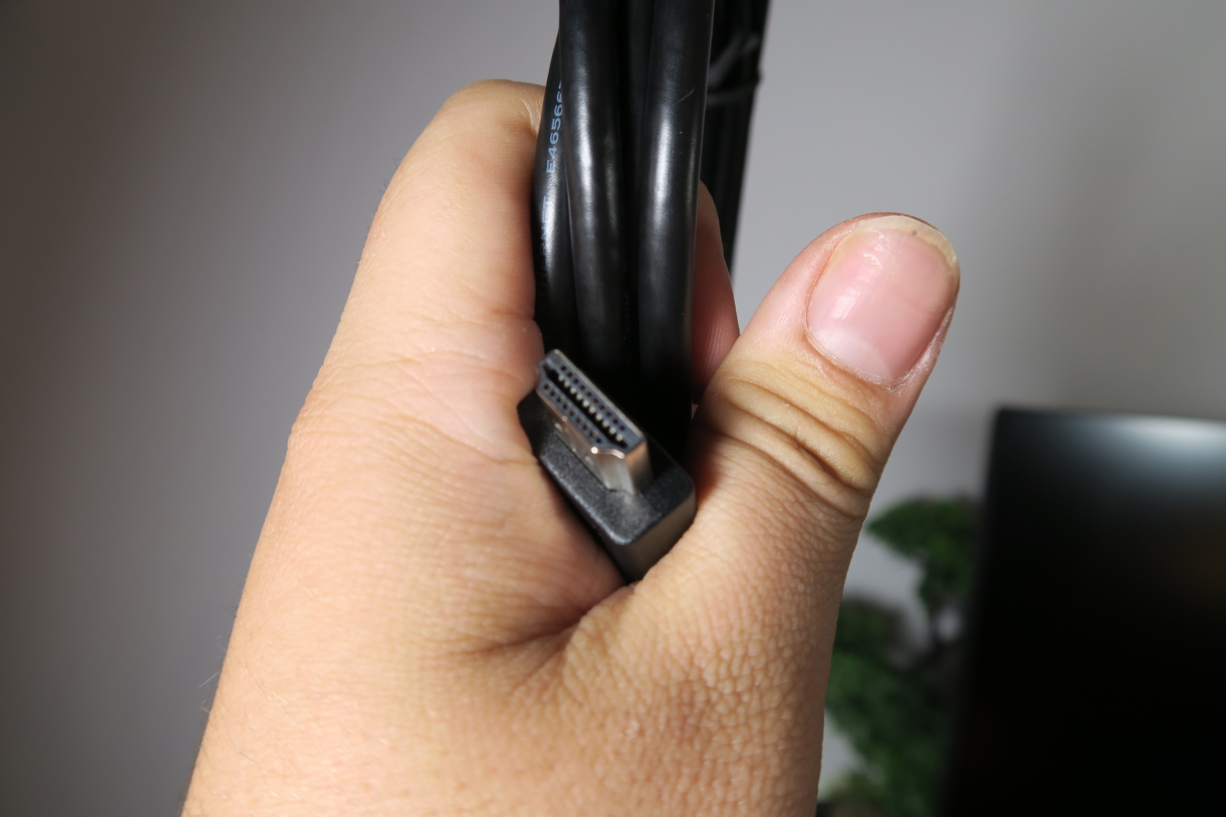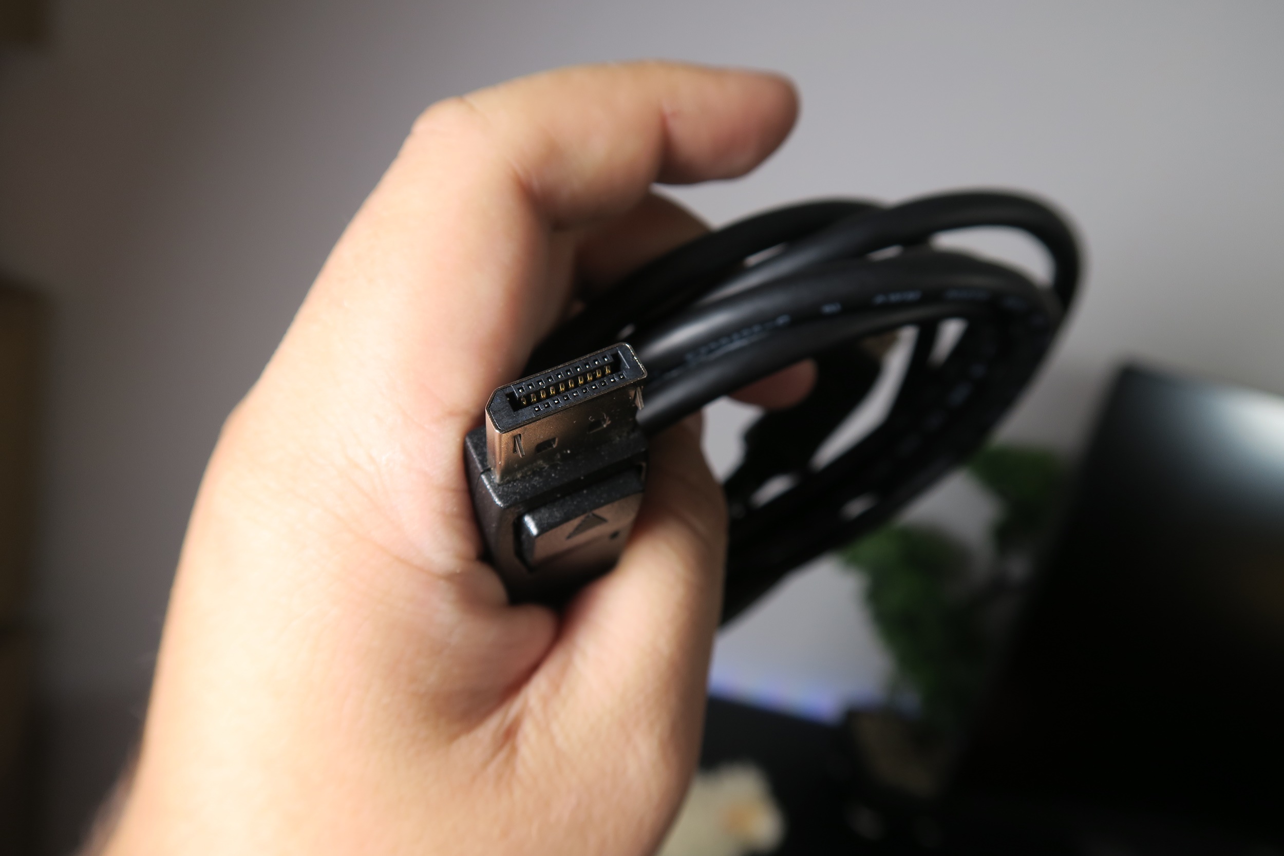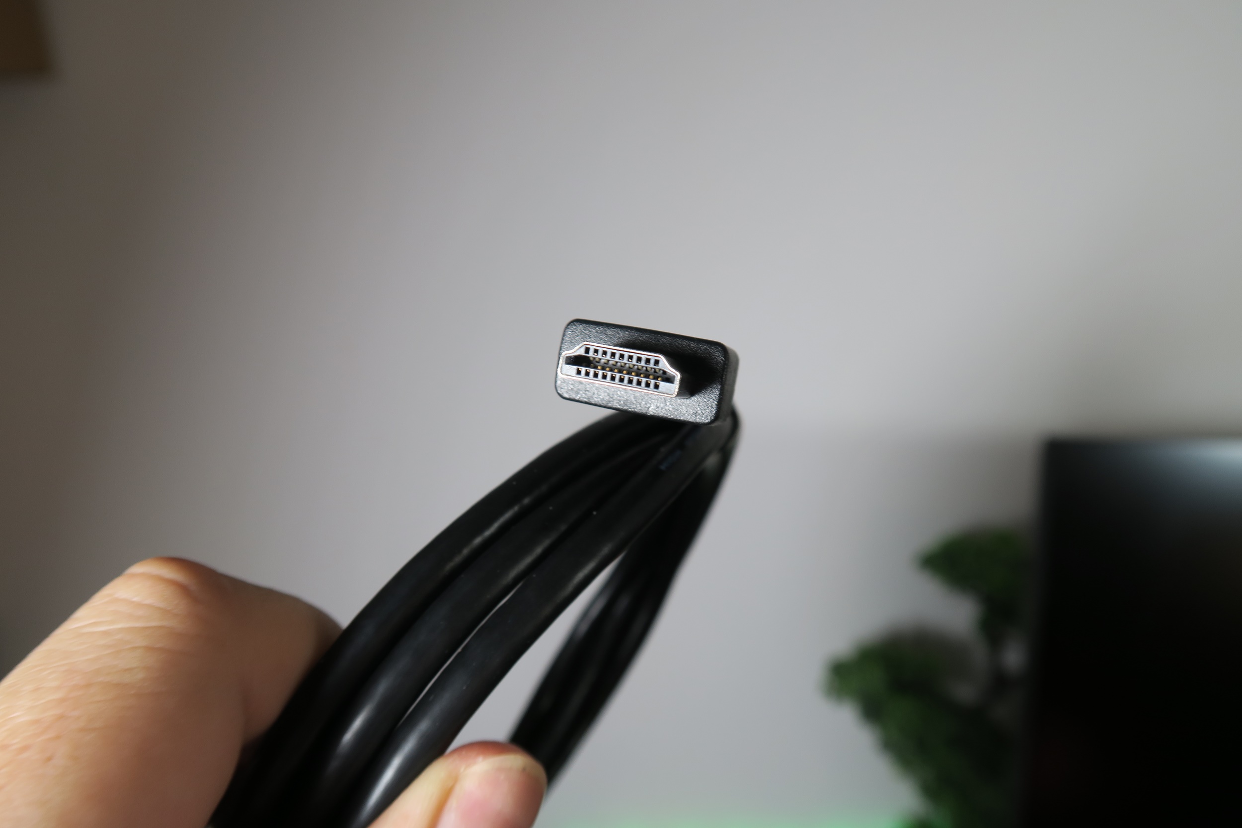 Monitorul prezintă în partea din față un LED de stare, iar în spate, în partea dreaptă, regăsim un joystick prin care putem modifica setările. Seamănă cu un thumbstick de controller și este ușor de utilizat, dar ușor imprecis în primă fază. În rest, porturile sunt tot în spate, ascunse în partea de jos. Pentru alimentare regăsim în cutie un fel de încărcător de laptop, de dimensiuni generoase, dar și un cablu HDMI și unul DisplayPort.