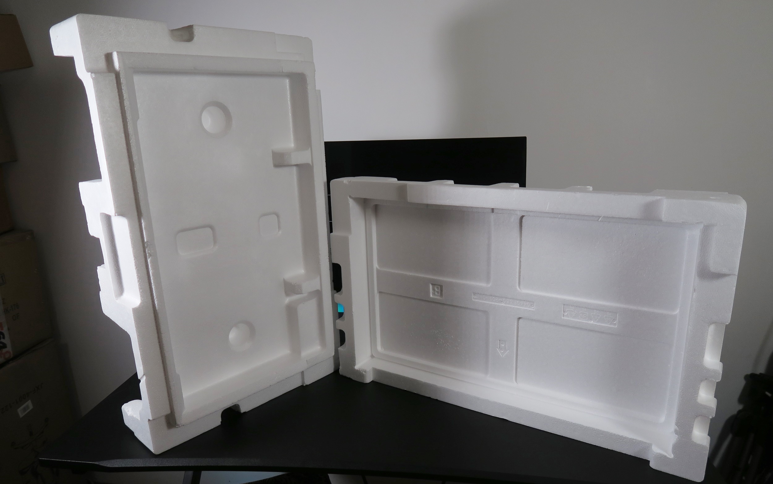 Înainte să detaliez aspectul monitorului, vreau să precizez că acesta vine într-o cutie mare, după cum era de așteptat. Atât display-ul, cât și spatele sunt bine protejate în timpul transportului, fiind împachetat între două plăci de polistiren groase. În cutie regăsim monitorul, stand-ul acestuia (modular), câteva șuruburi, cablul de alimentare, cablu HDMI și Display Port. În primă fază am apreciat dimensiunea ecranului, de 27 de inch (68,6 cm) și stand-ul foarte solid.