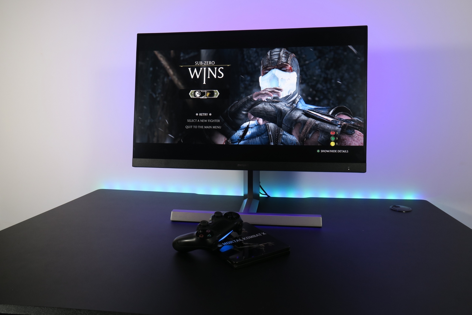 Pe PlayStation 4 totuși, Philips Momentum 278M1 face upscaling, funcționând doar în rezoluție Full HD. Am avut parte de o experiență plăcută de gaming, totuși. De această dată m-am putut depărta mai mult decât în cazul utilizării mouse-ului și a tastaturii. Am jucat Mortal Kombat 10 și noul God of War. Din păcate, nu am reușit să modific aspectul nicicum în cazul ultimului titlu menționat.