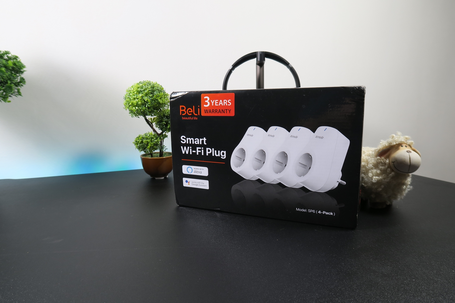 După cum am spus, eu am primit un pachet de patru prize smart Tenda Beli SP6 (4-pack). Totuși, există și posibilitatea de a achiziționa una singură sau un pachet de două (2-pack), în caz că veți avea nevoie de mai multe prize pe parcurs. Sosesc într-o cutie minimalistă, colorată în stilul caracteristic Tenda. În partea din față observăm o fotografie cu prizele și suntem anunțați că avem trei ani garanție oferită de către producător. Totodată, aflăm că le putem sincroniza cu Google Assistant și Amazon Alexa, dar discutăm despre această opțiune în rândurile de mai jos.
