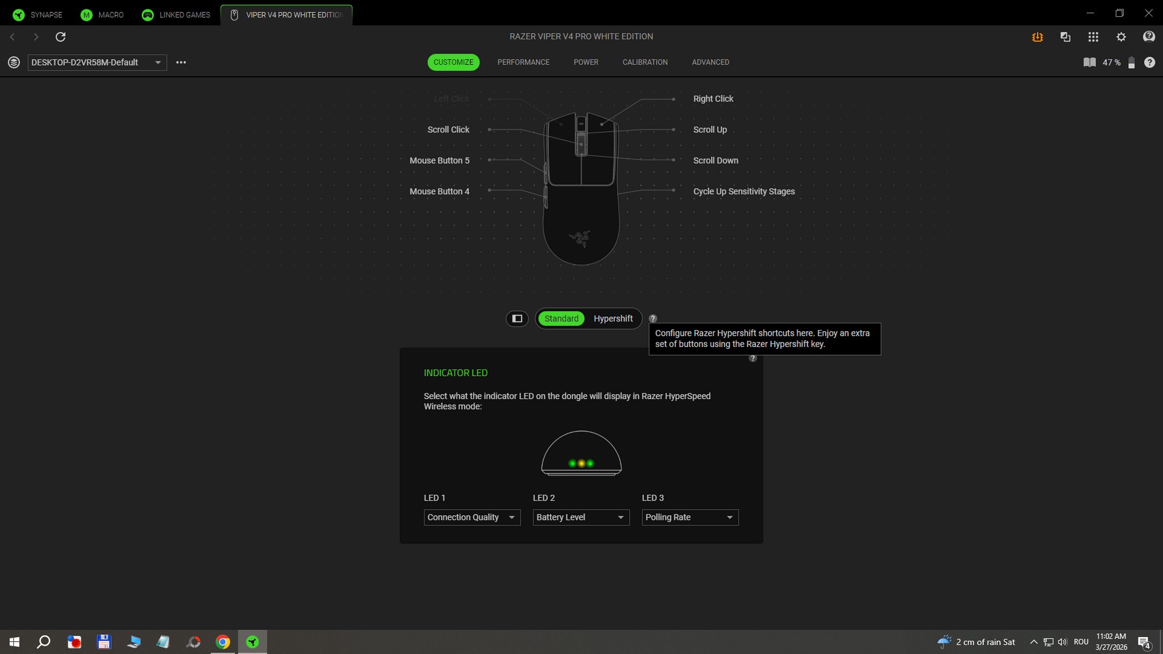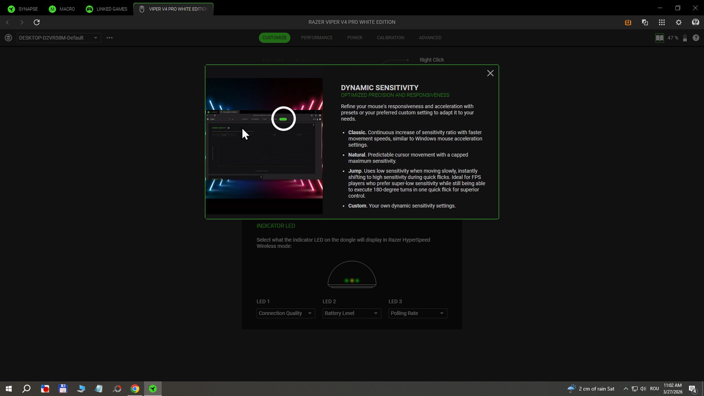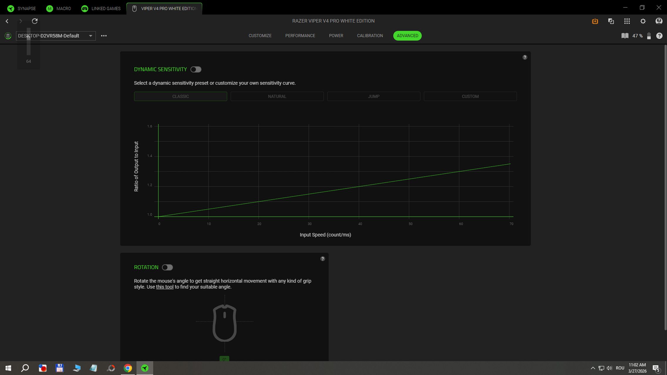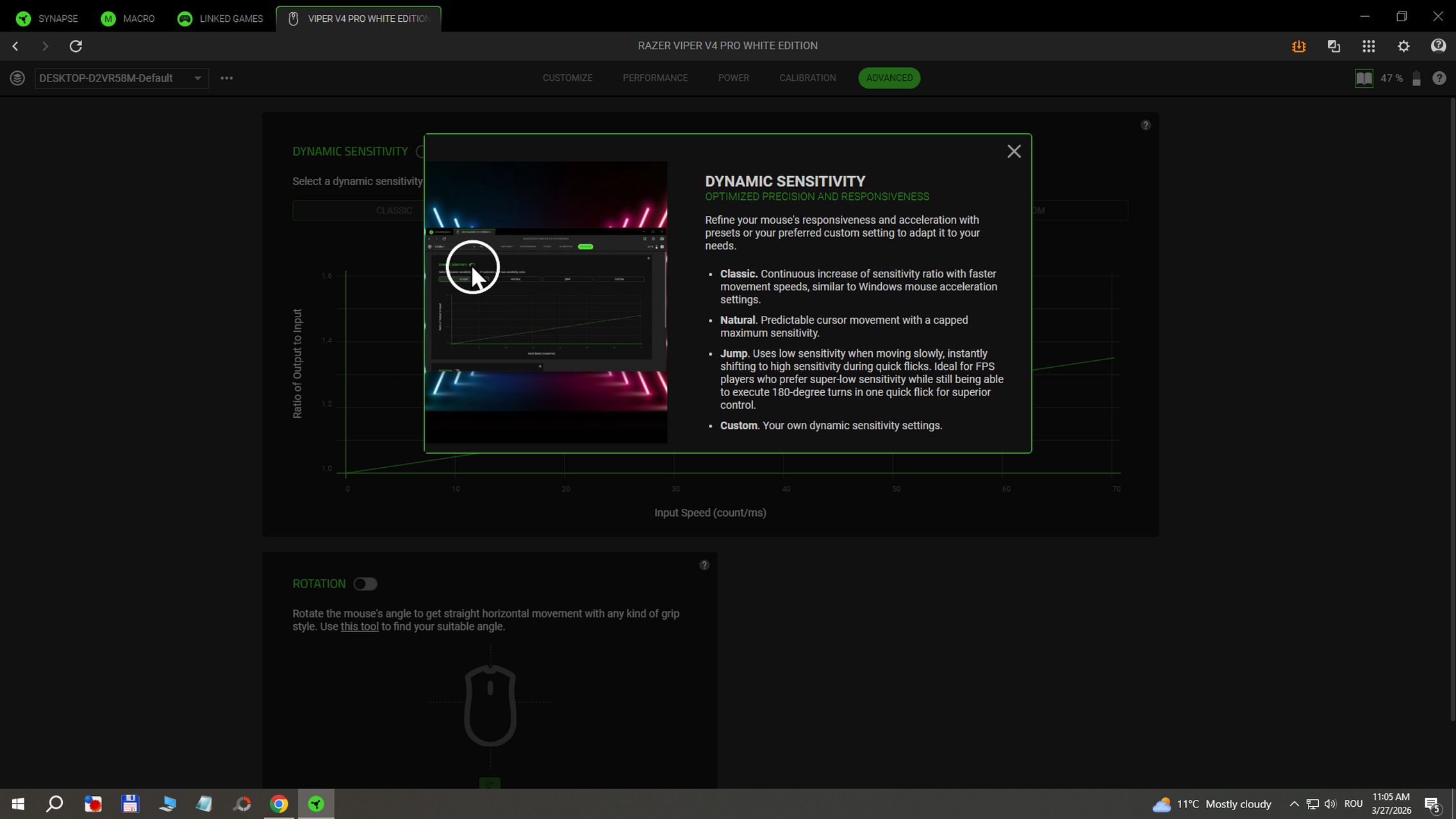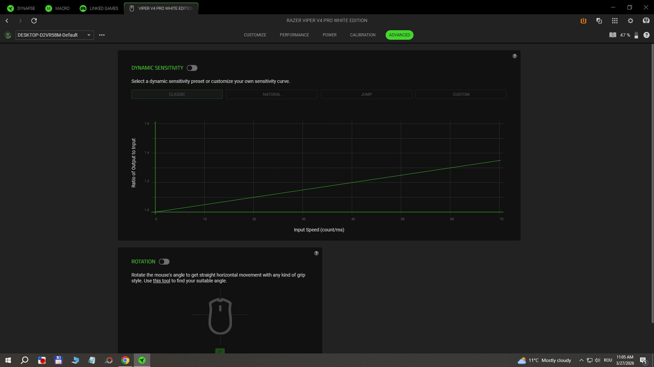 În aplicația RAZER Synapse instalată pe Windows am găsit și funcții avansate după cum urmează: