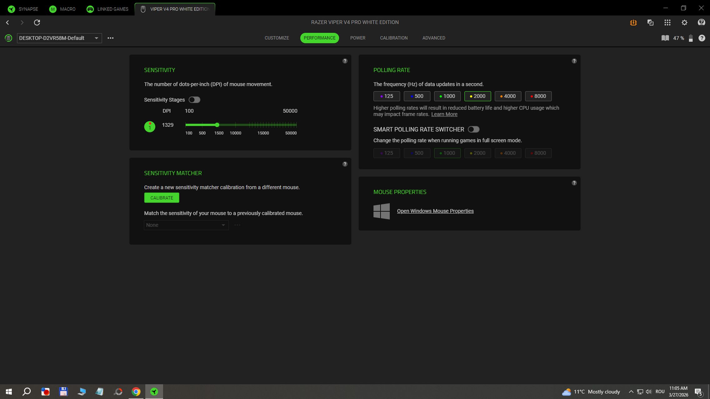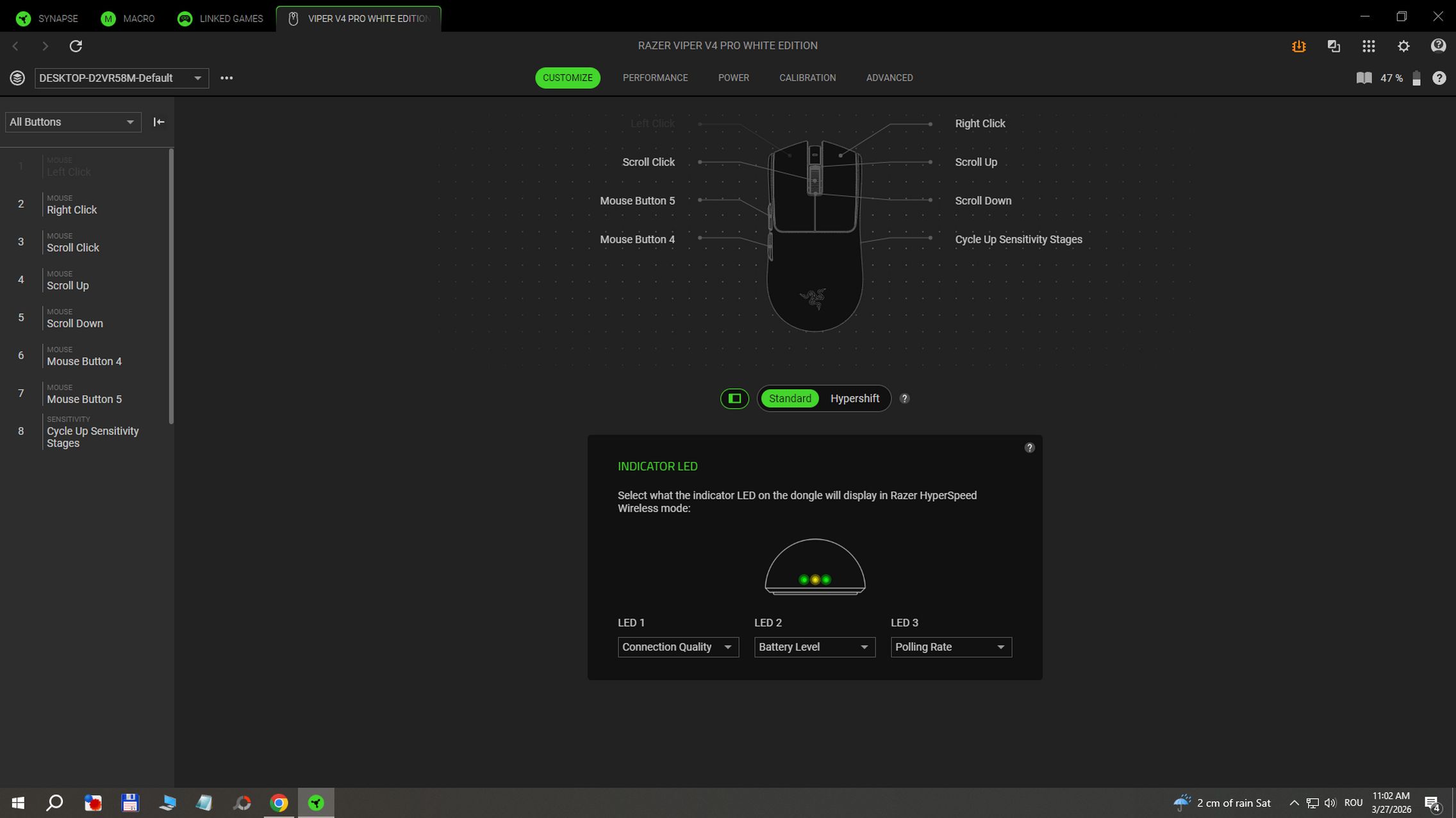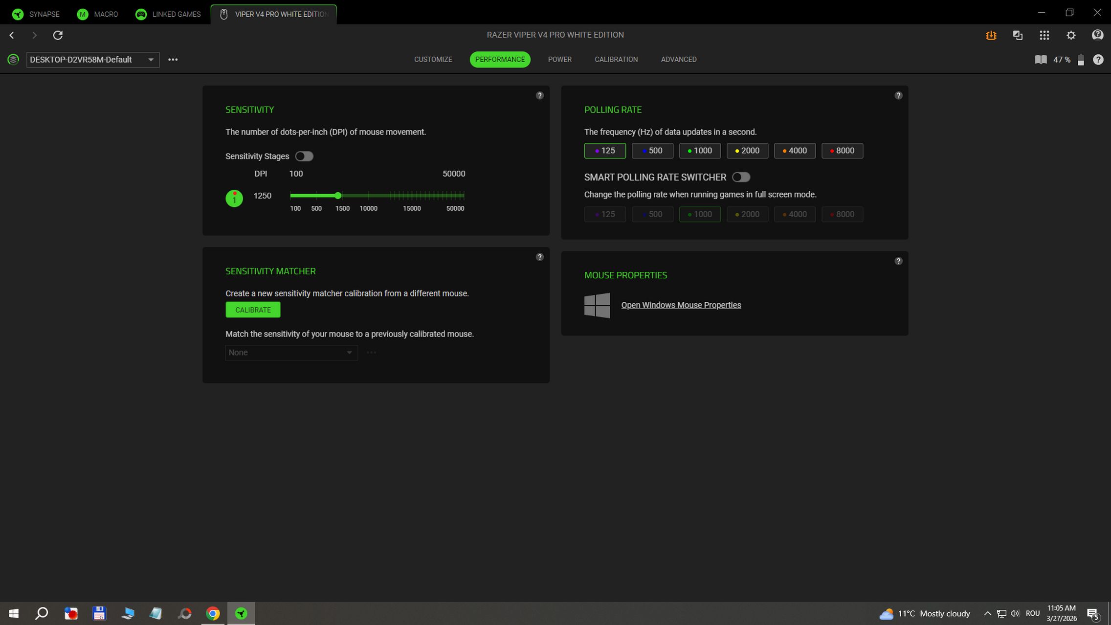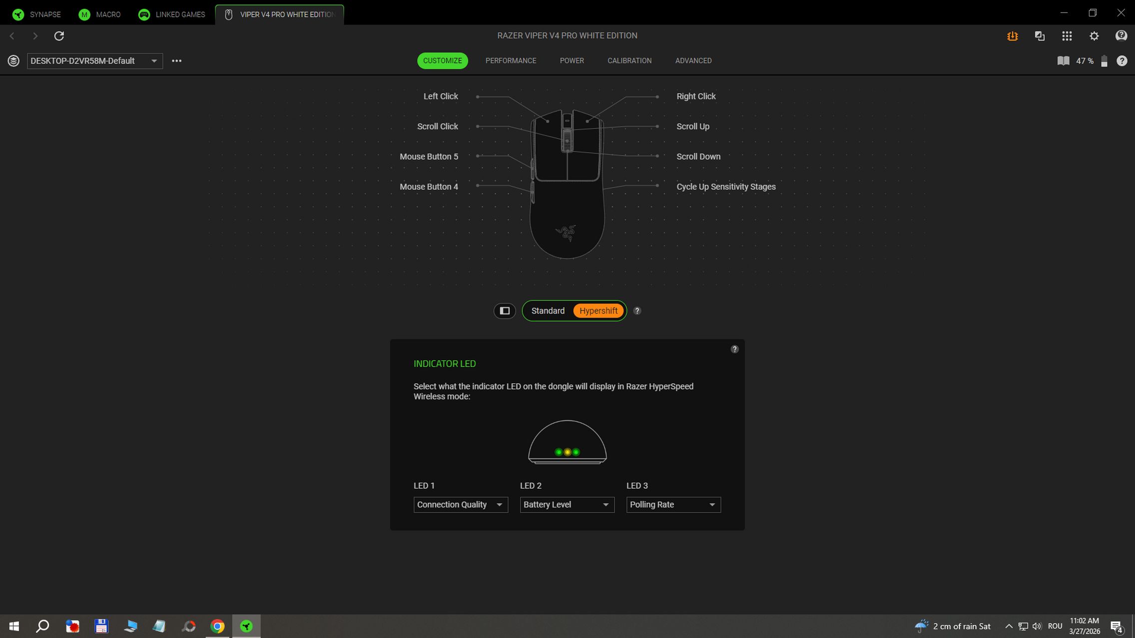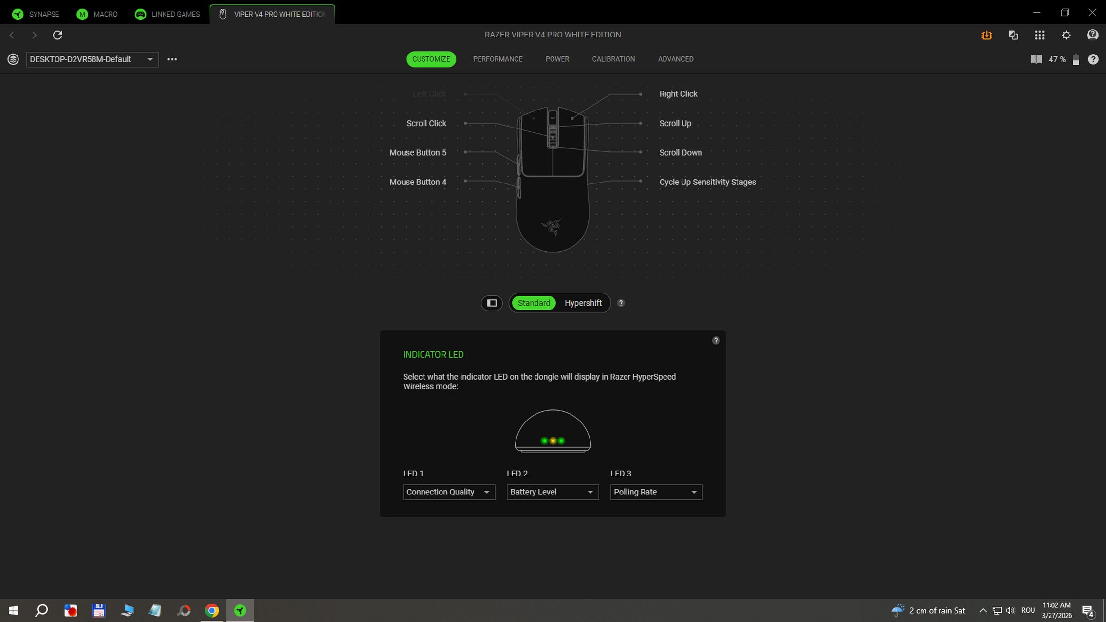 În aplicația RAZER Synapse instalată pe Windows am găsit și funcții avansate după cum urmează: