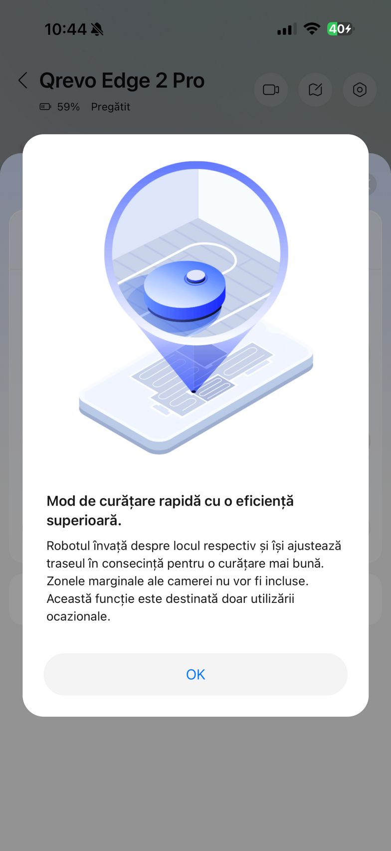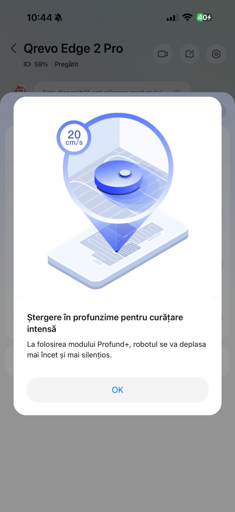 Din start mi-a făcut cu ochiul boost-ul de putere pe care îl livrează mai ales pe covoare, doar nu degeaba se numește "The Carpet Expert". De la 18500 Pa cât avea EdgeT urcă la 25000 Pa și asta s-a tradus la mine prin covoare curățate excelent, chiar și în scenariul în care cel puțin covorul din living are fibre atât de groase și dense încât imediat atrage praful. Qrevo Edge 2 Pro i-a venit de hac și a ajutat și tehnologia AdaptiLift care a ajustat șasiul în funcție de covor. În practică robotul își ajustează inteligent înălțimea corpului său pentru a menține contactul optim de aspirare pe covoare de până la 3 cm. Covoarele au rămas ca gazonul proaspăt tuns pe stadion, cu acele dungi specifice, semn că aspirarea este foarte puternică.