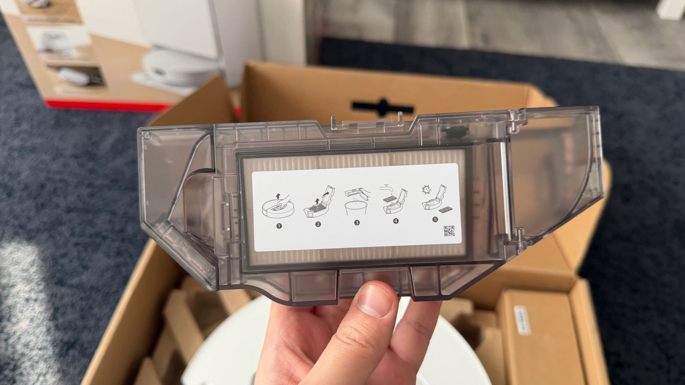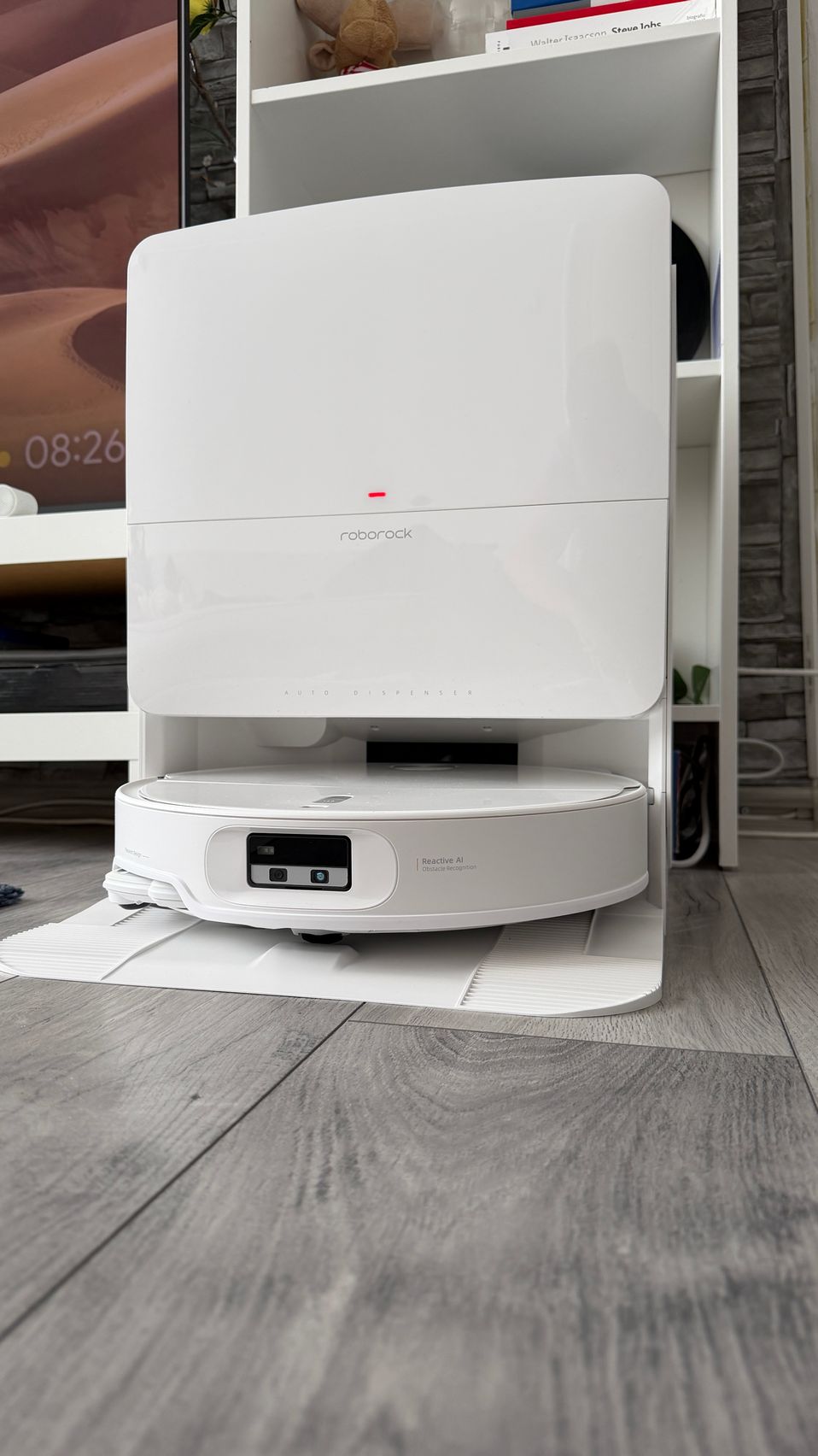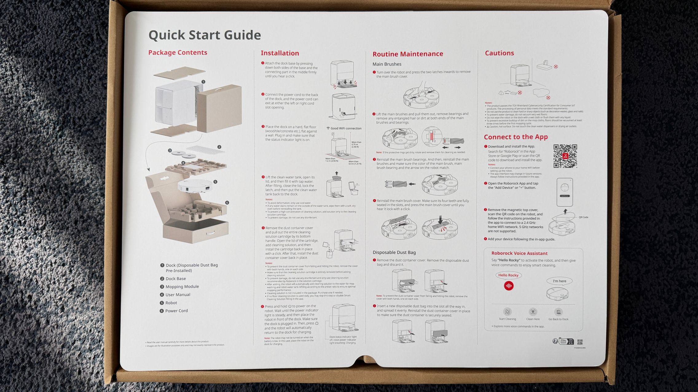 Nu greșesc când spun că aspiratoarele Roborock sunt cele mai ușor de instalat și configurat. Am scos toate cele necesare din cutie, am plasat dock-ul în locul dorit, conectat cablul de alimentare și plasat și aspiratorul la garajul său. A pornit imediat după care eu am fost nevoit să iau telefonul, să accesez aplicația Roborock și să scanez cod-ul QR de sub capacul aspiratorului pentru a-l configura. Tot procesul a durat doar câteva minute și a fost doar despre setarea rețelei WiFi.