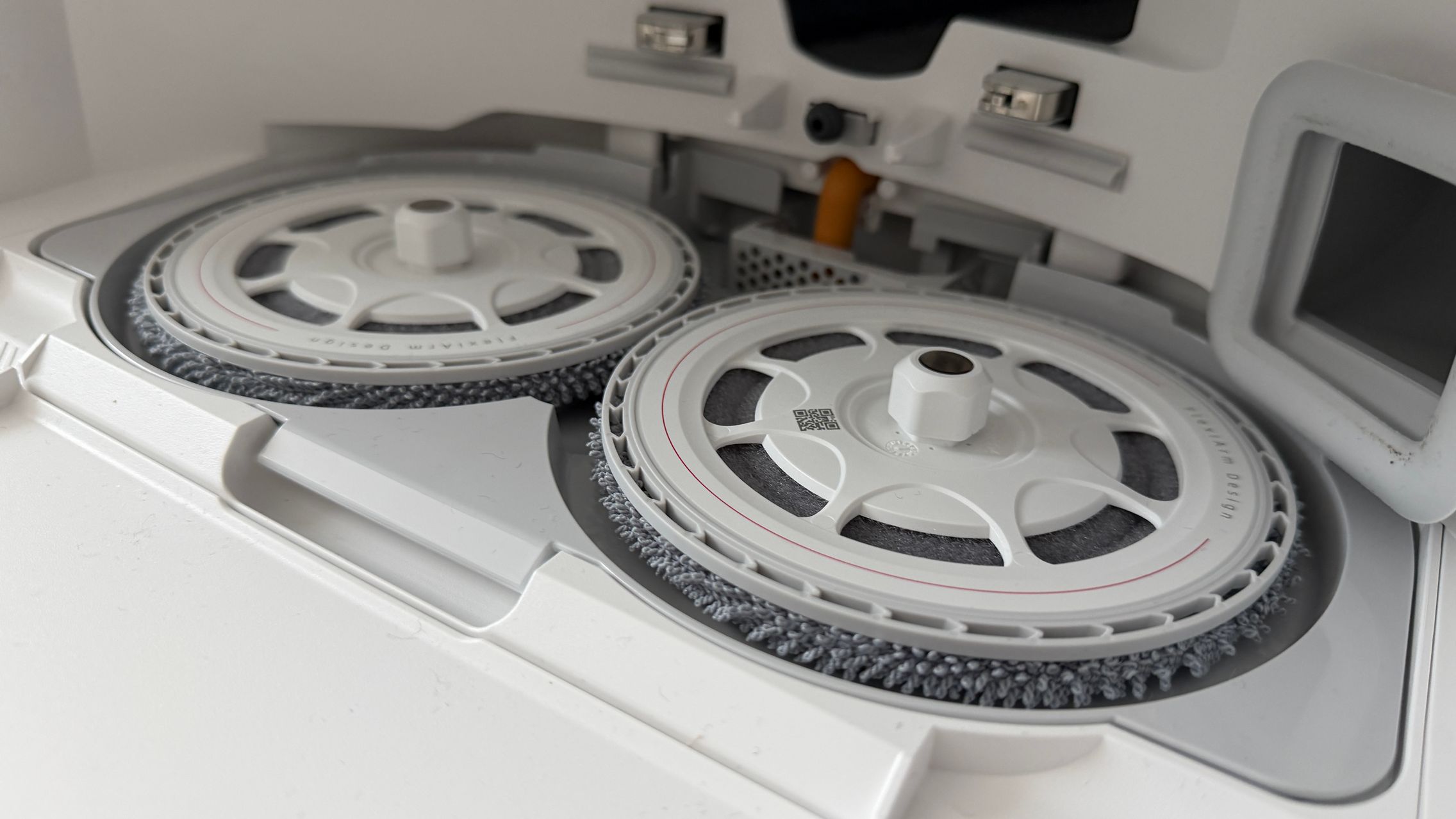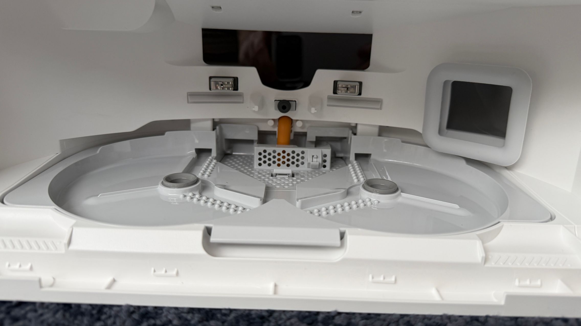 După spălarea lavetelor se începe și procesul de uscare la 55 grade Celsius. Se usucă și sacul de praf folosindu-se fluxul de aer ambiental și mai avem și distribuitor de detergent automat pentru a spăla lavetele. Dock-ul permite și ajustarea unor aspecte precum: