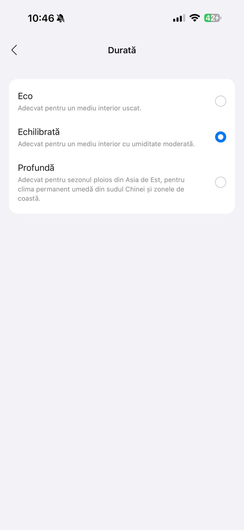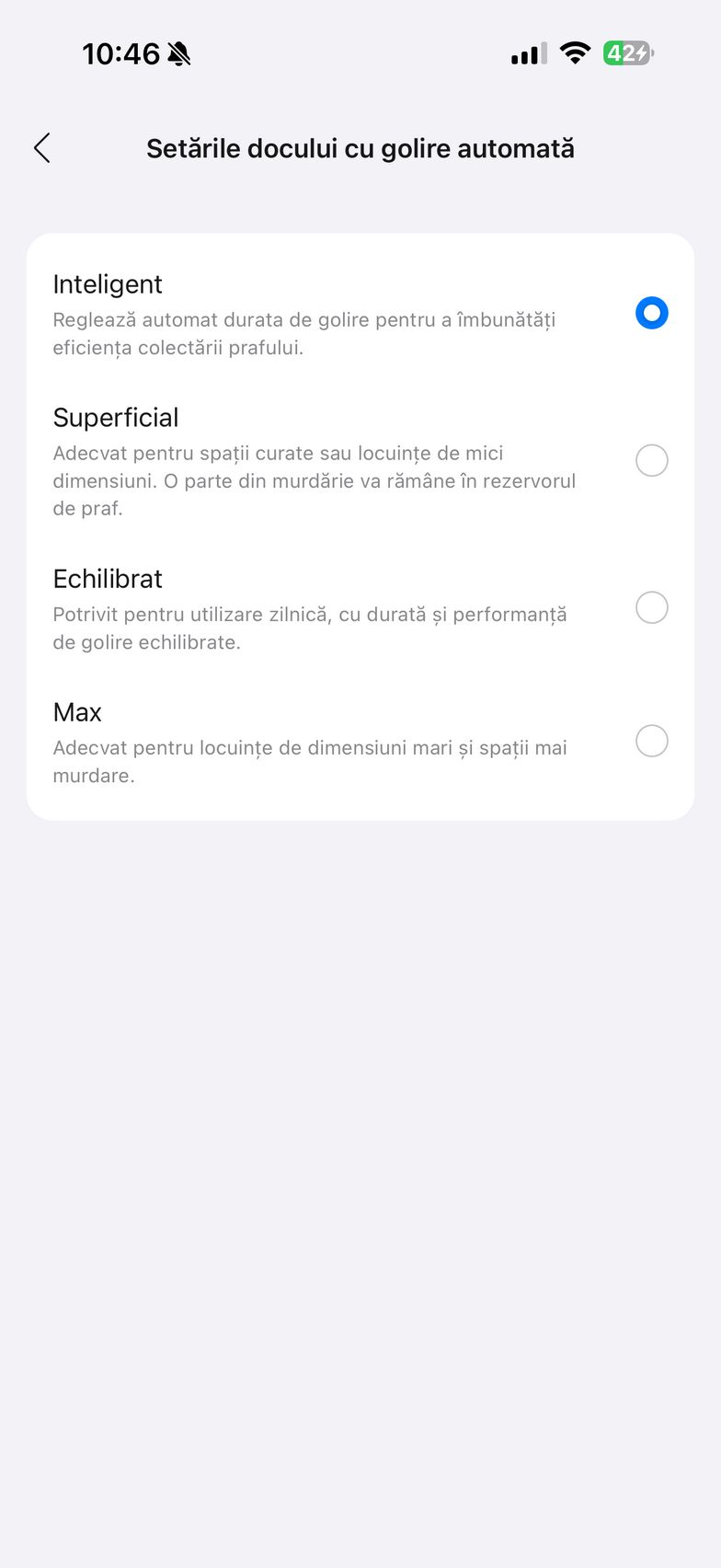 - Mod golire rezervor praf - inteligent, superficial, echilibrat, max