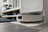 Dimensiunile? Aspiratorul măsoară 350 mm x 352 mm și are o înălțime/grosime de 79.8 mm cu turela jos și astfel se poate strecura ușor sub obiecte de mobilier. Dock-ul este alb și el, măsoară 381 mm frontal, 475 mm lateral (cu tot cu baza de extindere a dock-ului), iar înălțimea ajunge la 488mm. Un design modern care se îmbină bine în casă, chiar și în living dacă nu ai un garaj al său undeva printr-un hol.