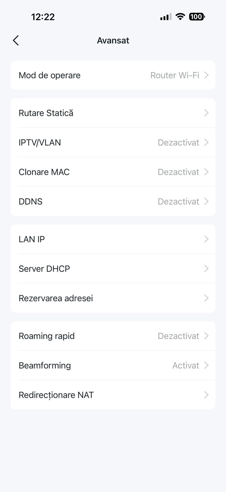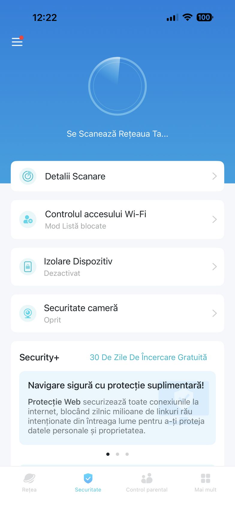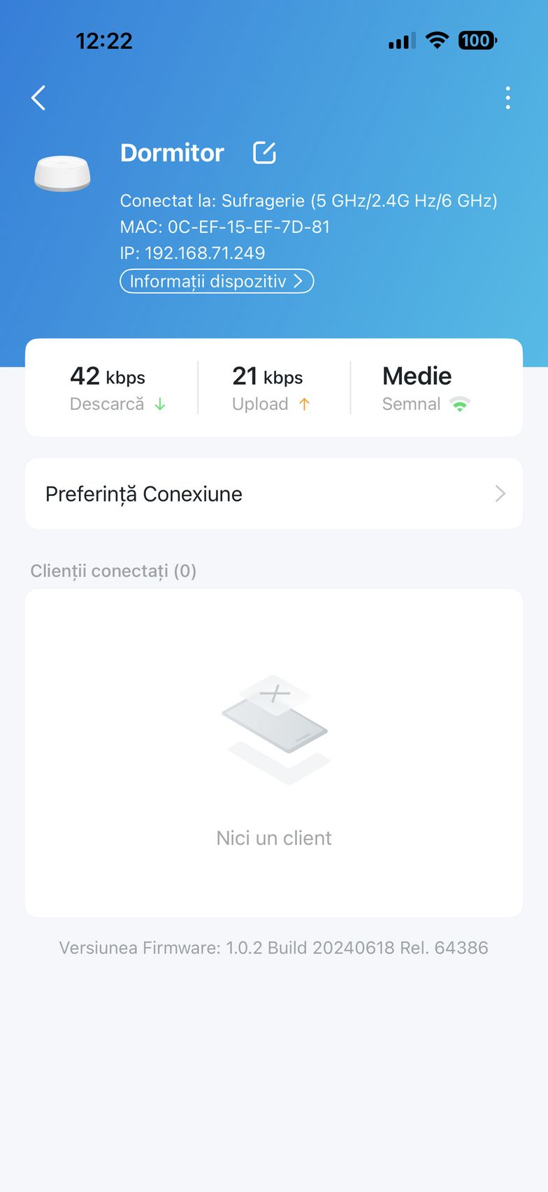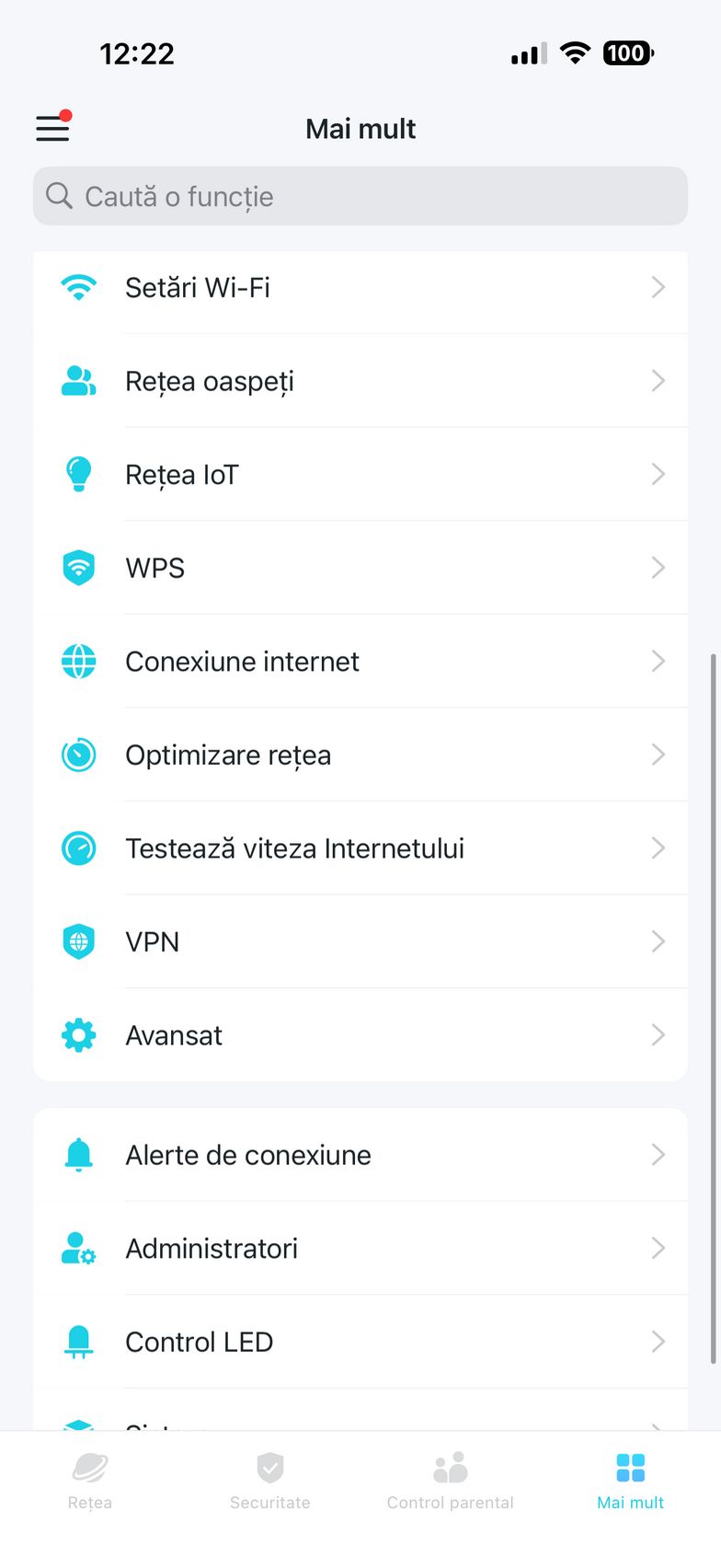- Funcții avansate: programare restart, izolare rețea IoT și device