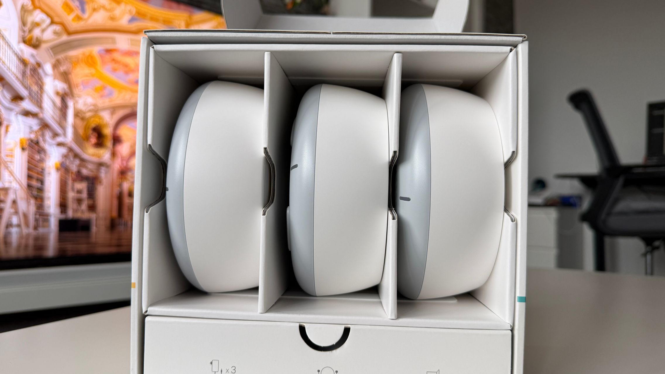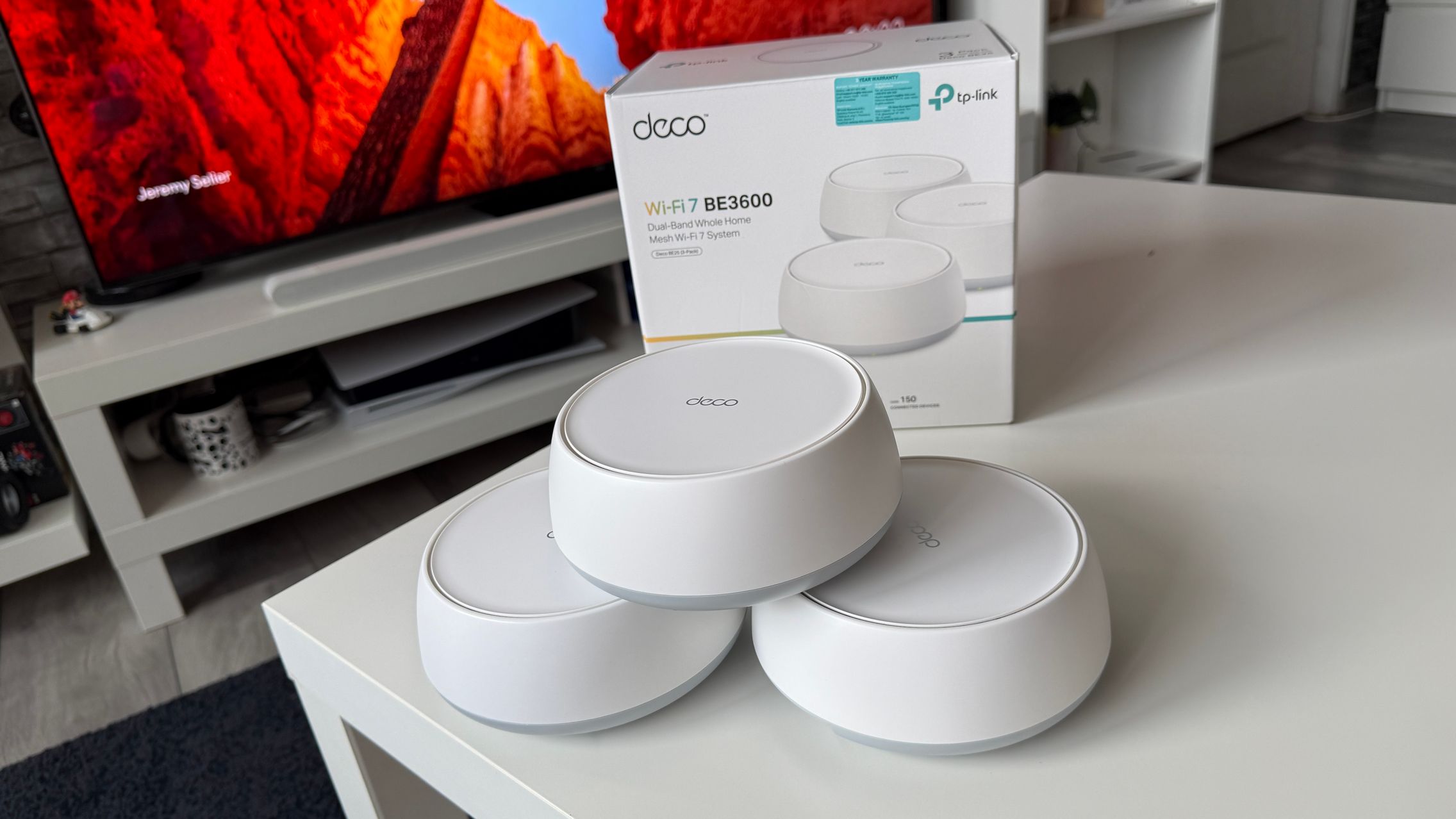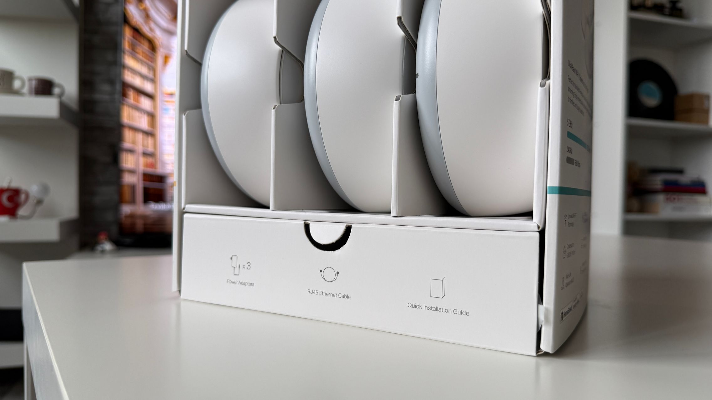 Aș începe cu TP-Link Deco BE25 BE3600, un sistem mesh WiFi 7 sosit la mine în varianta 3-pack. Este un sistem ideal pentru afaceri, case generoase ca și întindere, iar promisiunile sunt mari aici. Există și pachete cu 2 unități mesh, iar prețurile încep de pe la 989 lei (2-pack), respectiv 1399 lei (3-pack). Să vedem ce știe!