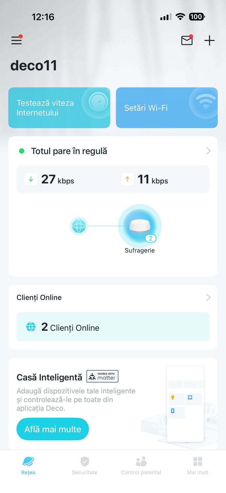 La final de zi acest kit mesh de la TP-Link și-a dovedit abilitățile în apartamentul meu, dar simt că este doar o fărâmă din ce poate face, fiind creat pentru case cu etaj. Ai internet WiFi rapid și stabilitate, acoperire a semnalului în puncte cheie. Mi-a plăcut cât de ușor se instalează sistemul în casă și faptul că oferă suport pentru până la 150 de dispozitive trebuie să îți dea de gândit că acest kit nu se joacă la capitolul acoperire.