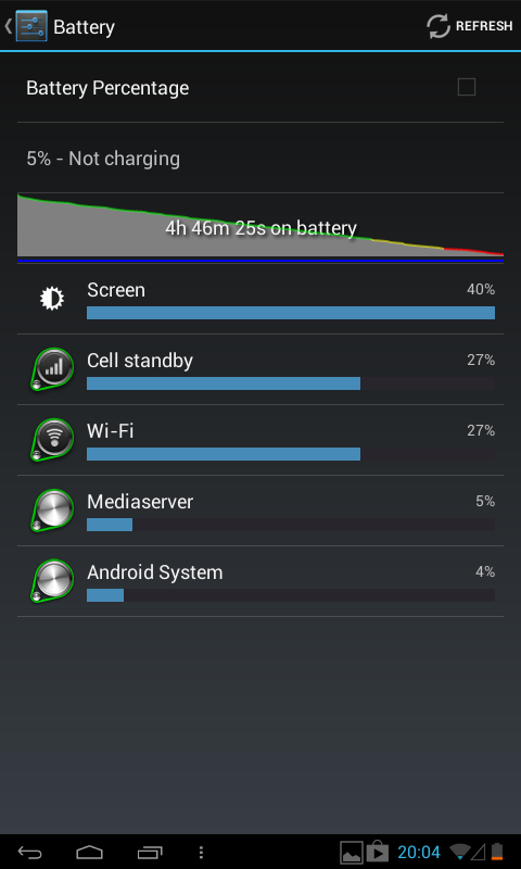 Avem parte și de slot microSD (până la 32 GB), radio FM, conectivitate HSPA+, GPS, apelare video 3G și camera de 3 MP în spate. în plus primim și o cameră frontală de 1 MP, Bluetooth 4.0, G Sensor, WiFi și o baterie de 2500 mAh și 3.7 V. Pe hârtie bateria asigura 4 ore de utilizare, iar în standby atinge cam 250 de ore. La testul nostru de playback HD cu luminozitate la 50% și WiFi pornit am atins 4 ore și 46 de minute, cea ce nu e rău pentru acest segment de preț.
