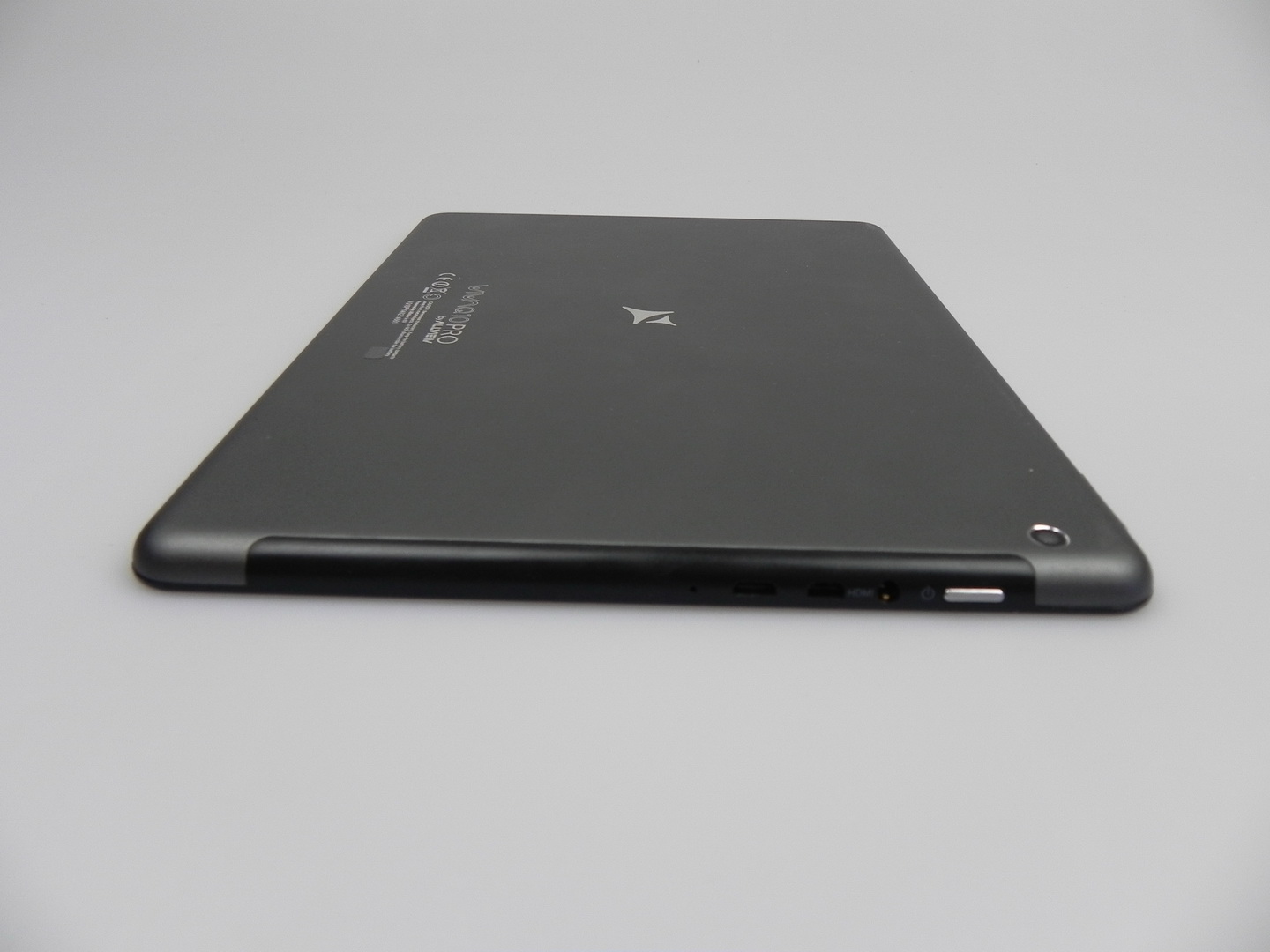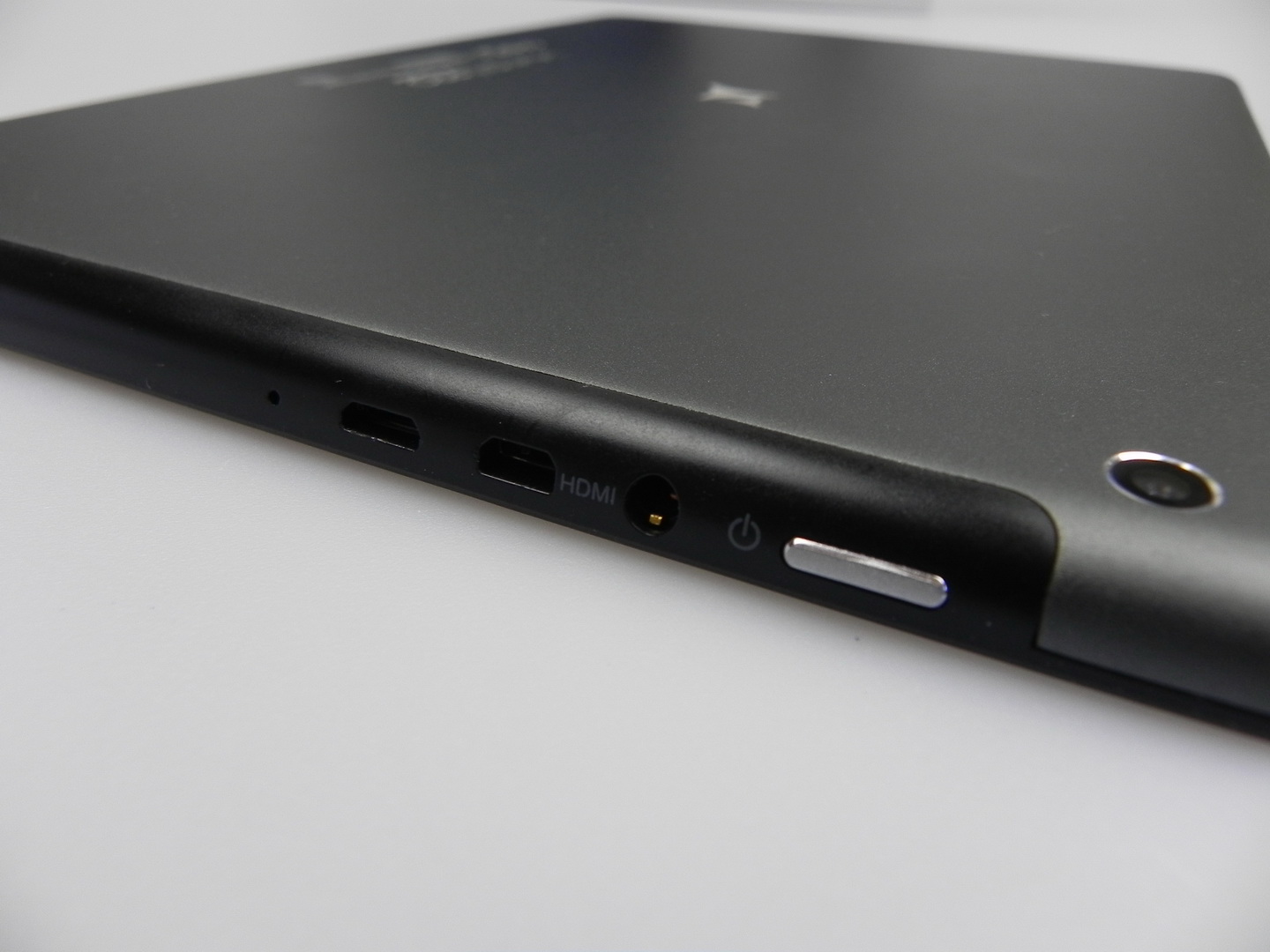 Ca design primim un device, cu grosime de 8.9 mm şi greutate de 576 grame. Tableta are o carcasă din metal mat şi vine cu un design solid, dar şi margini cam groase ale ecranului. Zona frontală include camera şi ecranul, în vreme ce în spate se află camera principală, iar în zona superioară găsim butonul On/Off, jackul audio, portul micro HDMI, cel micro USB şi microfonul.