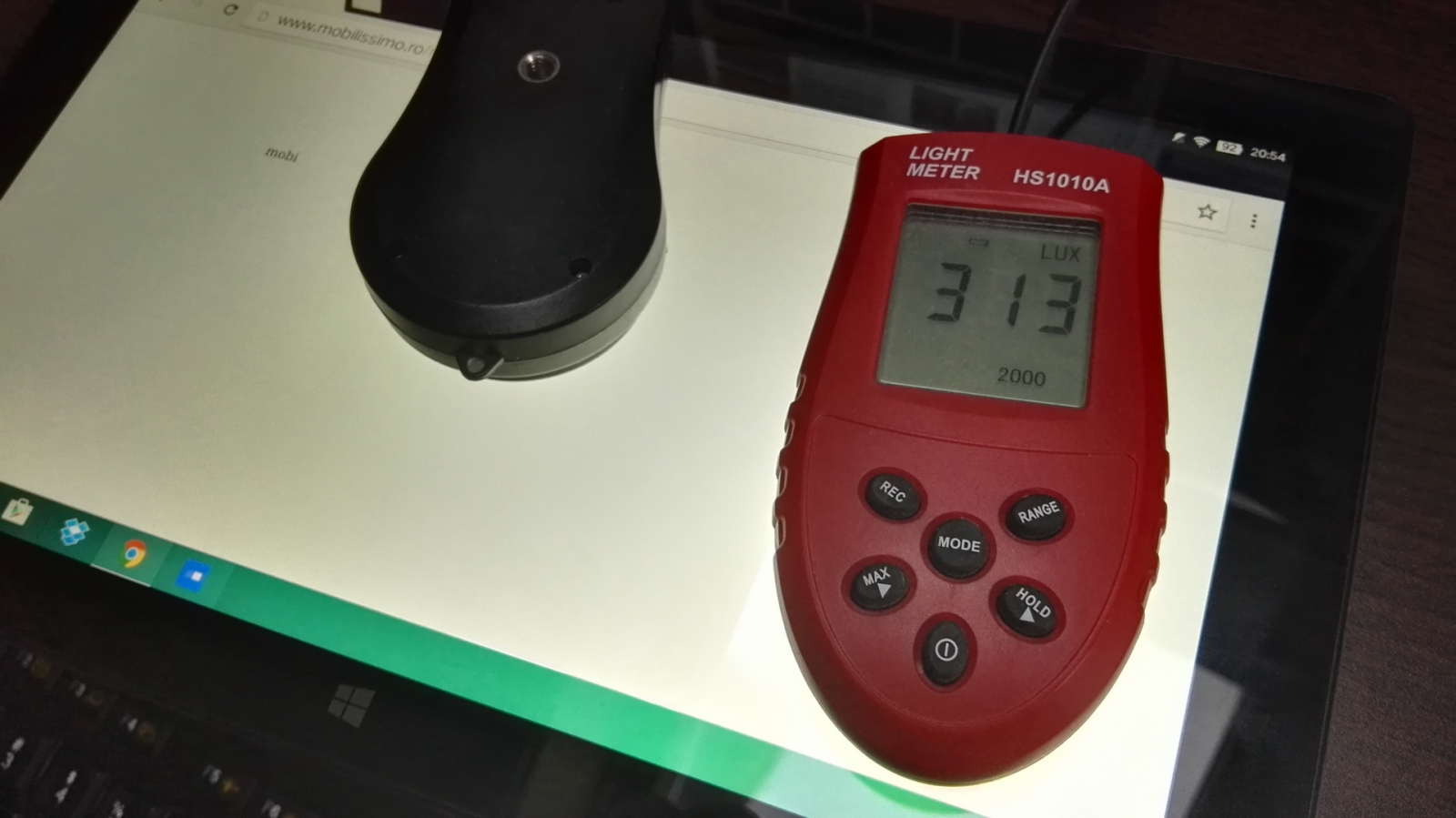 Am depăşit totuşi Xiaomi Mi Pad (310 LUX), ASUS Transformer Book T100 Chi (281 LUX) şi ASUS ZenPad 7.0 (274 LUX). Suntem sub Nexus 7 2013 (500 LUX), Samsung Galaxy Tab S2 9.7 (460 LUX) şi Samsung Galaxy Tab A 9.7 (402 LUX). Setările pentru display includ luminozitate, timeout şi font, iar o menţiune specială trebuie făcută aici cu privire la utilizarea tabletei că ecran secundar.
