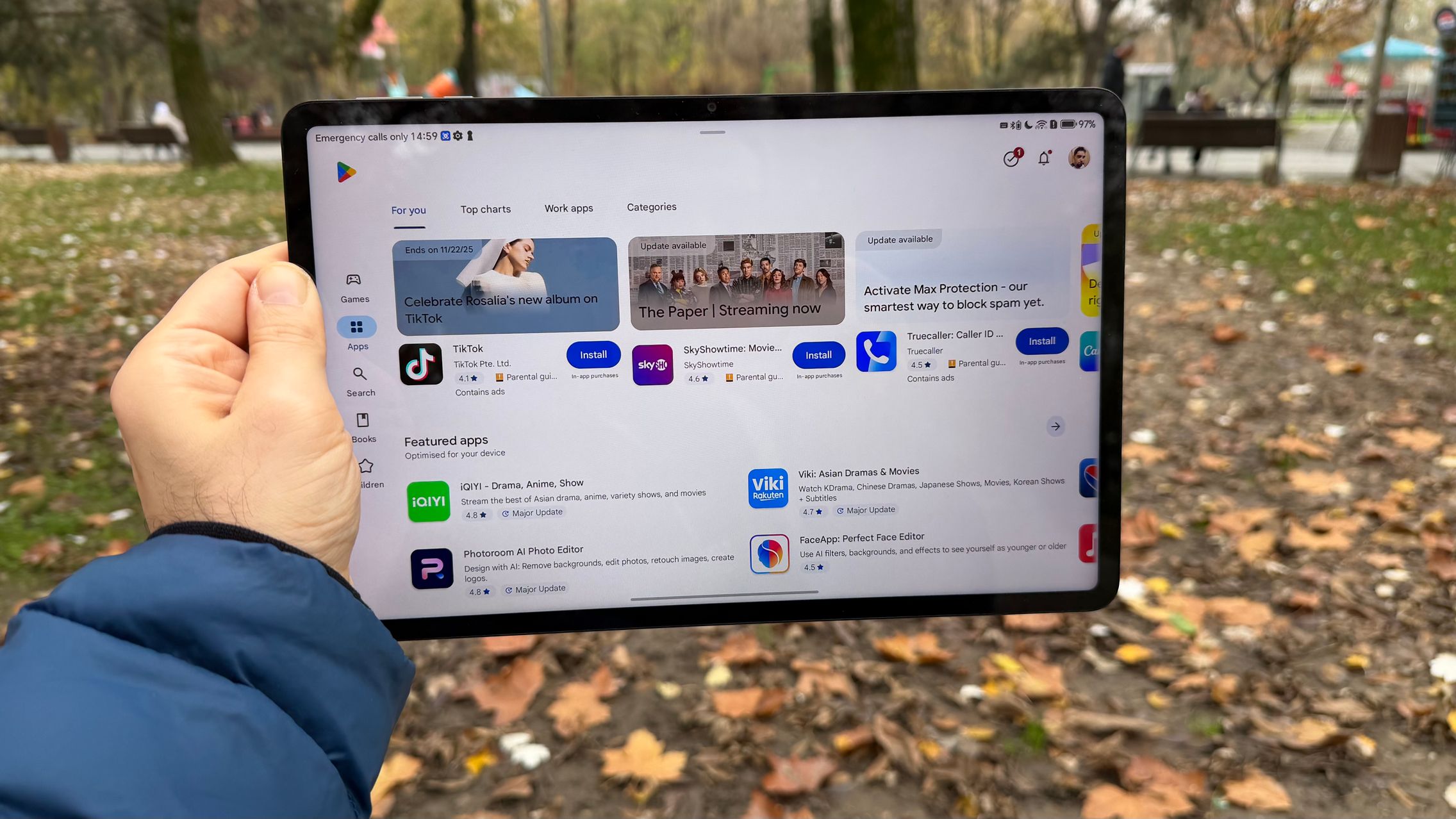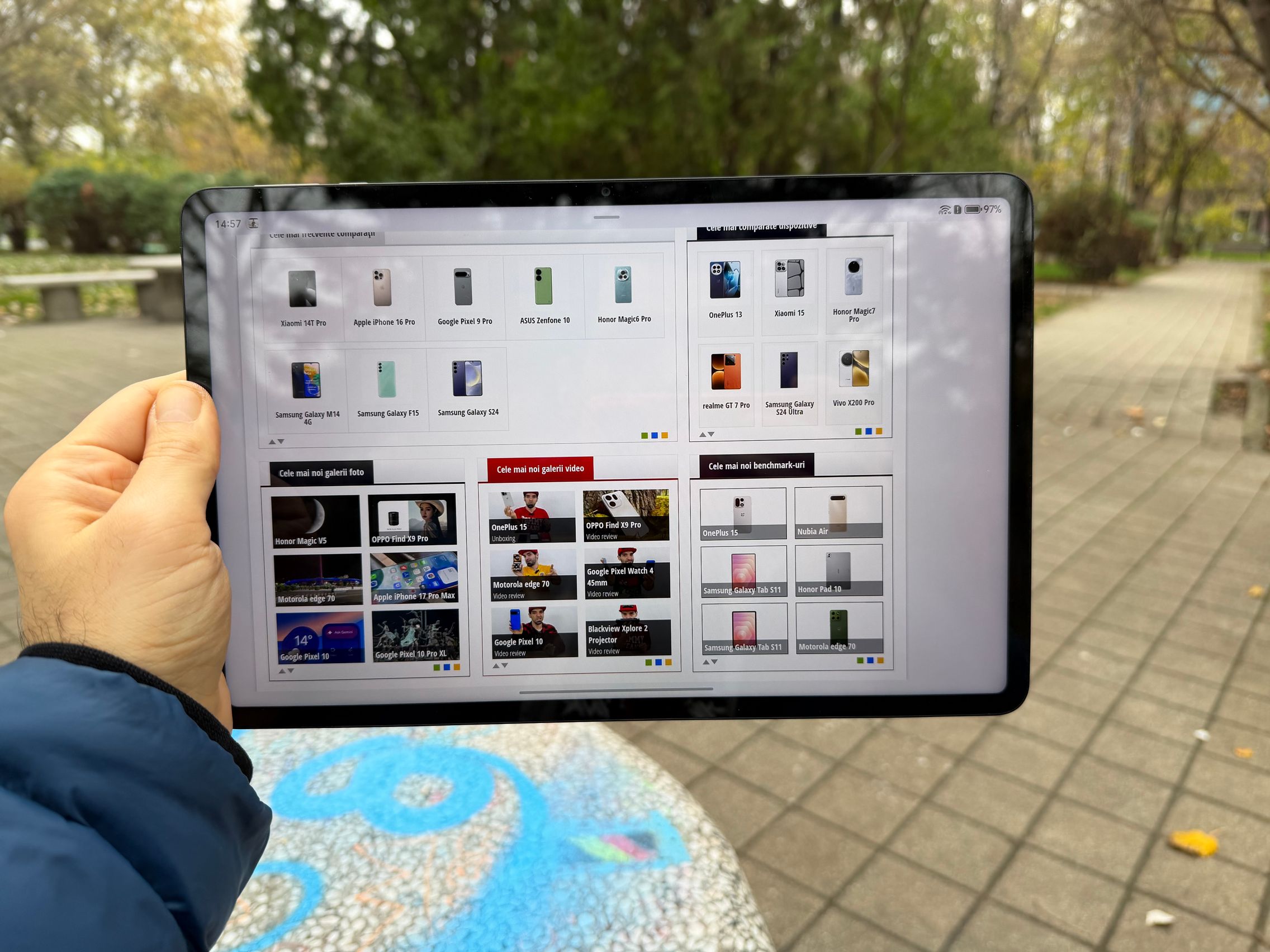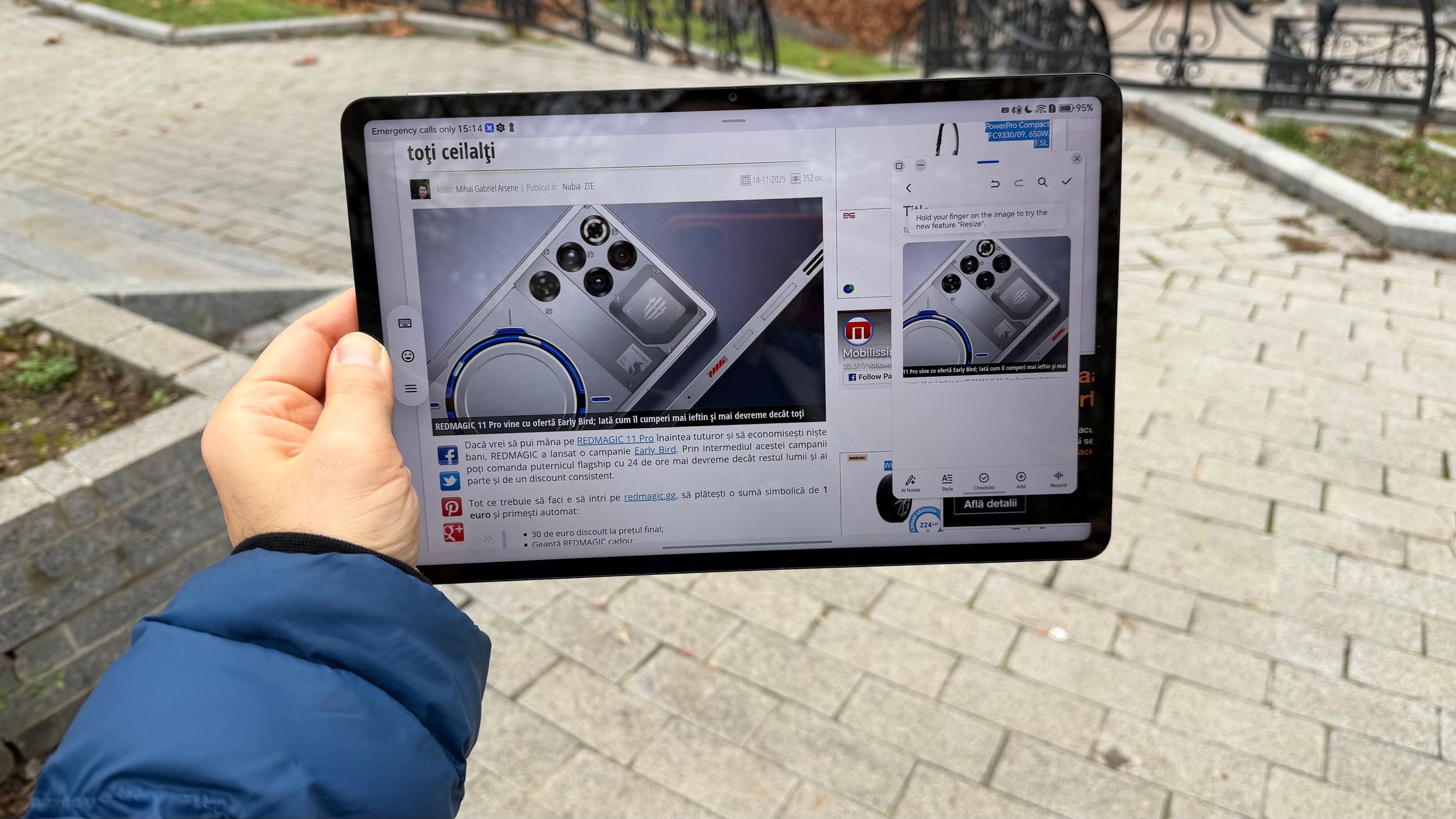 Tableta cântărește 525 de grame și măsoară doar 6.3 mm în talie. E destul de ușor de manevrat, iar panoul oferă chiar suport pentru stylus. Panoul integrat aici oferă HDR, refresh rate de 120Hz și afișează 1 miliard de culori. Sub capotă apar 8 GB de memorie RAM și 256 GB de stocare, alături de un procesor Snapdragon 7 Gen3 de la Qualcomm ce promite eficiență și putere, fiind fabricat pe un proces de litografiere de 4nm.